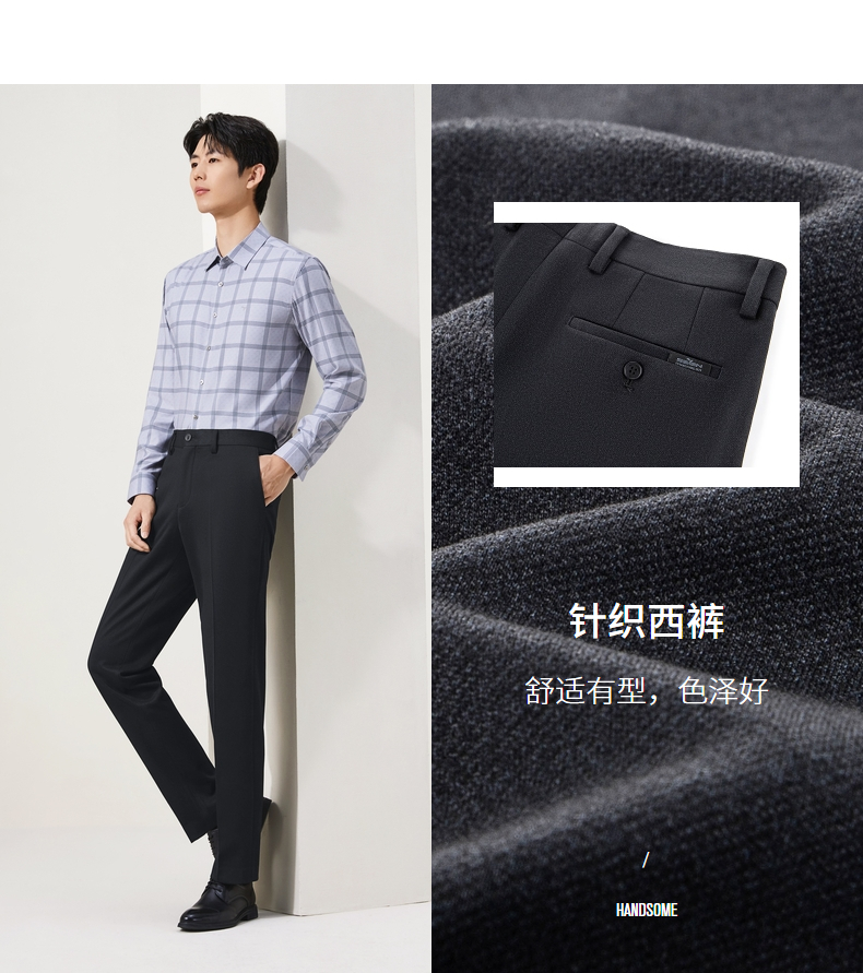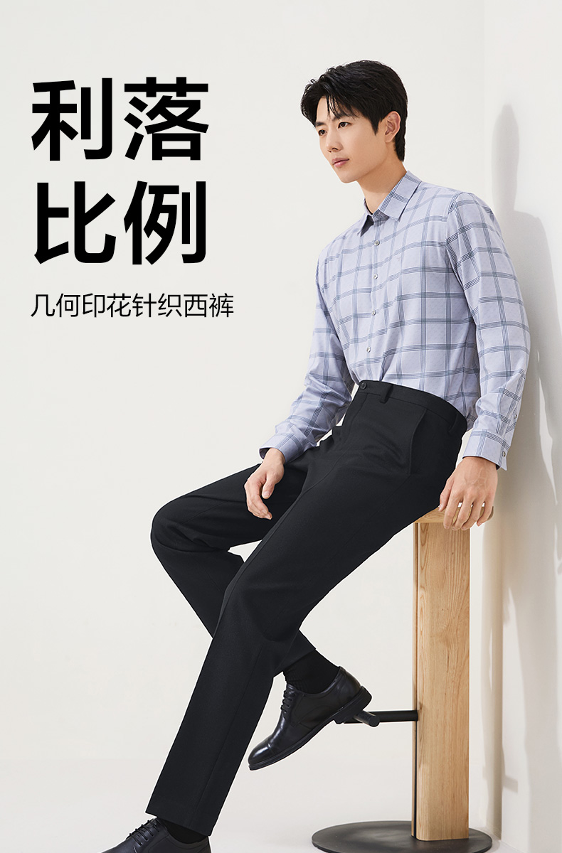 【针织弹力】柒牌西裤男士秋季新款长裤中年商务直筒裤子西装裤129H71770