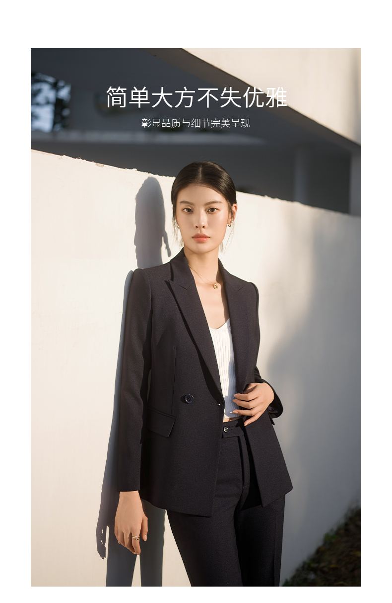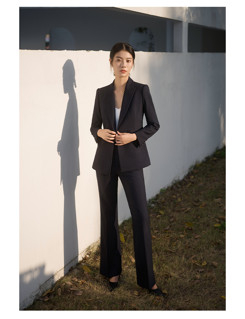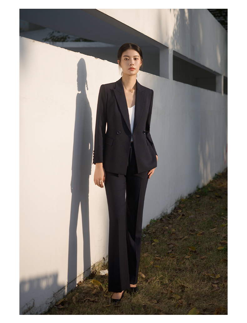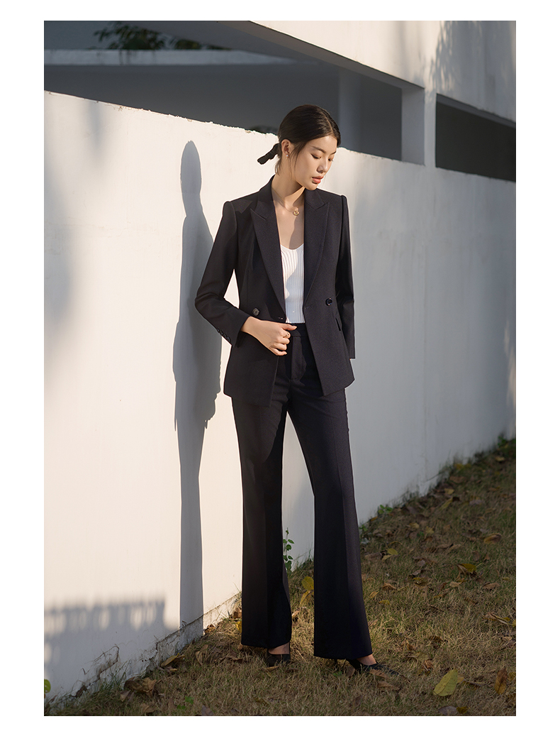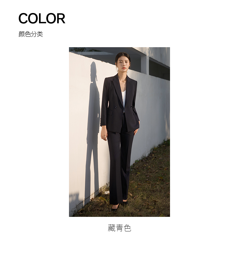 IWY/春季ol藏青色西装套装长袖高级感西服宽松两件套微喇裤装C14210+P34210