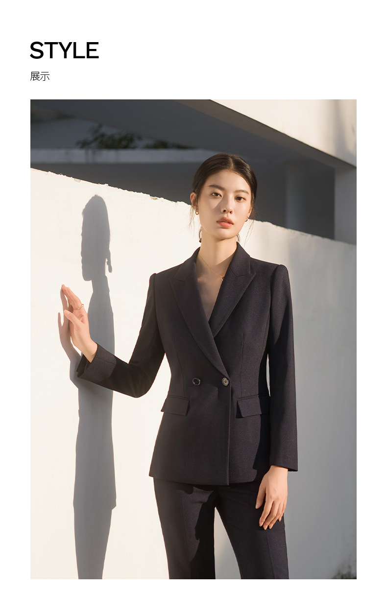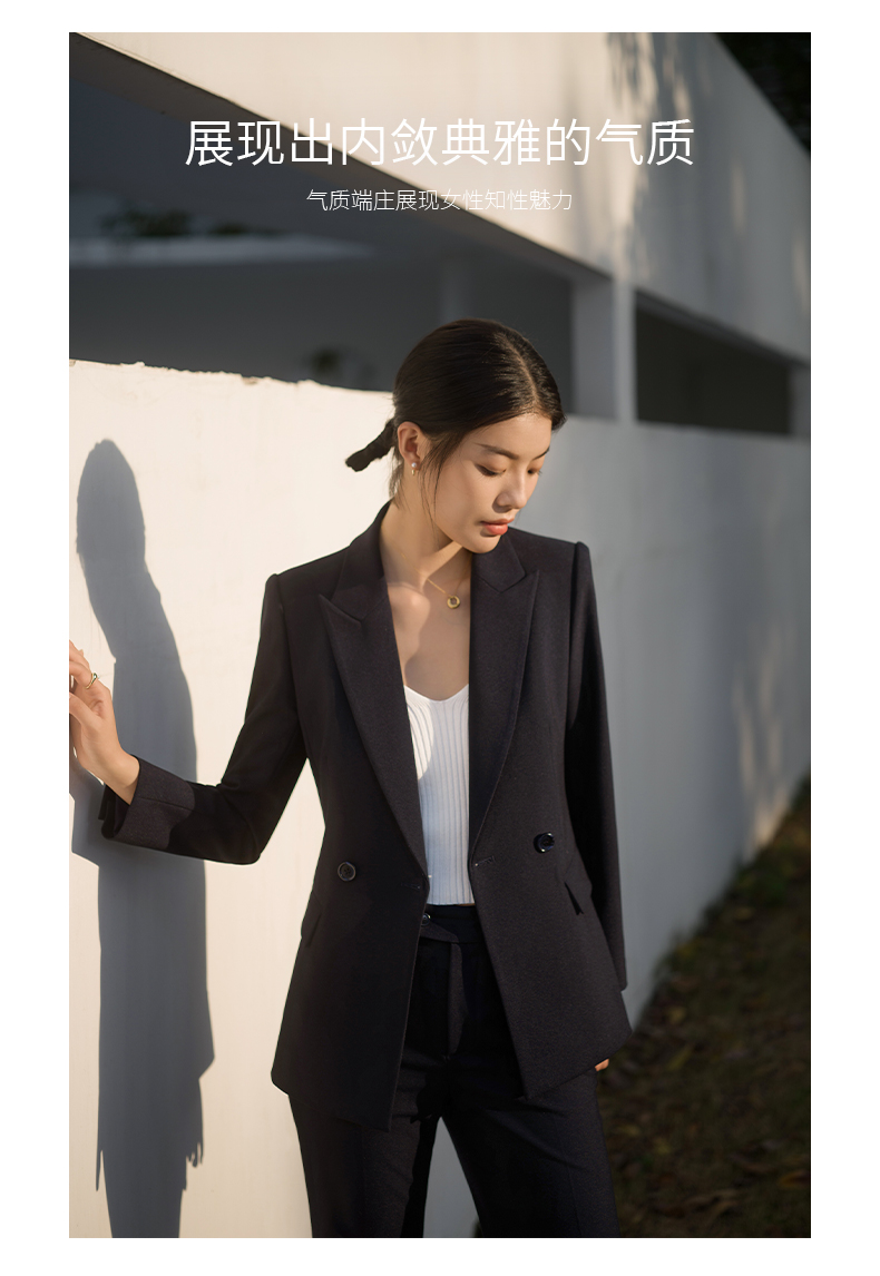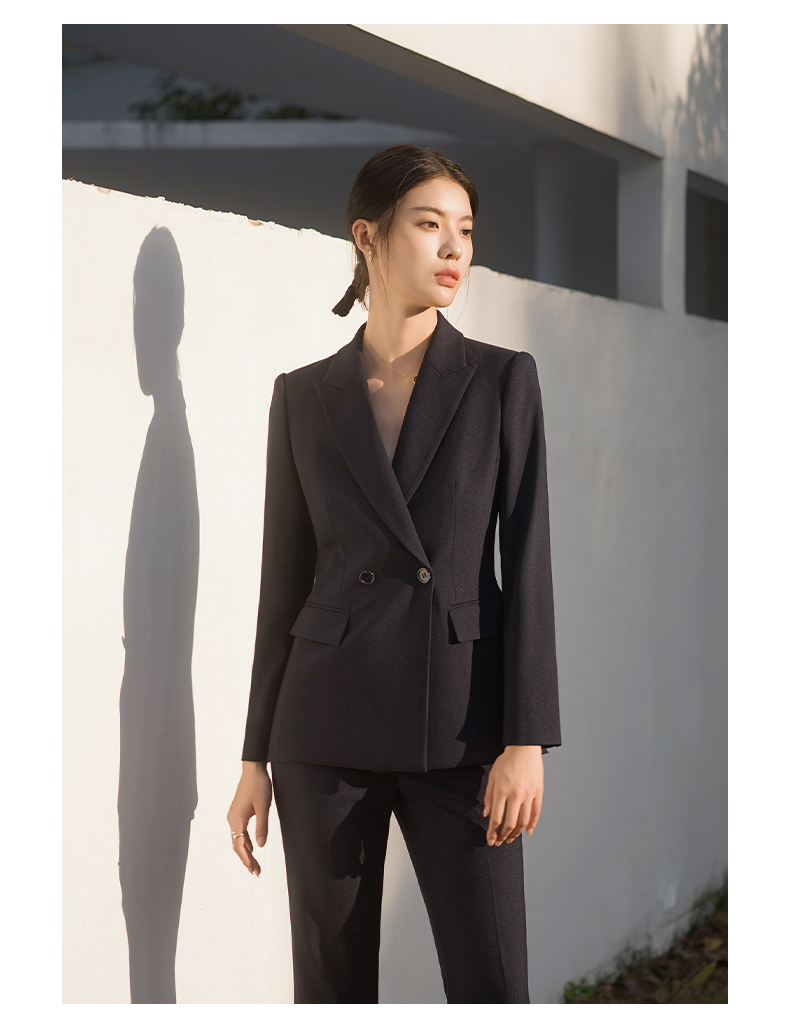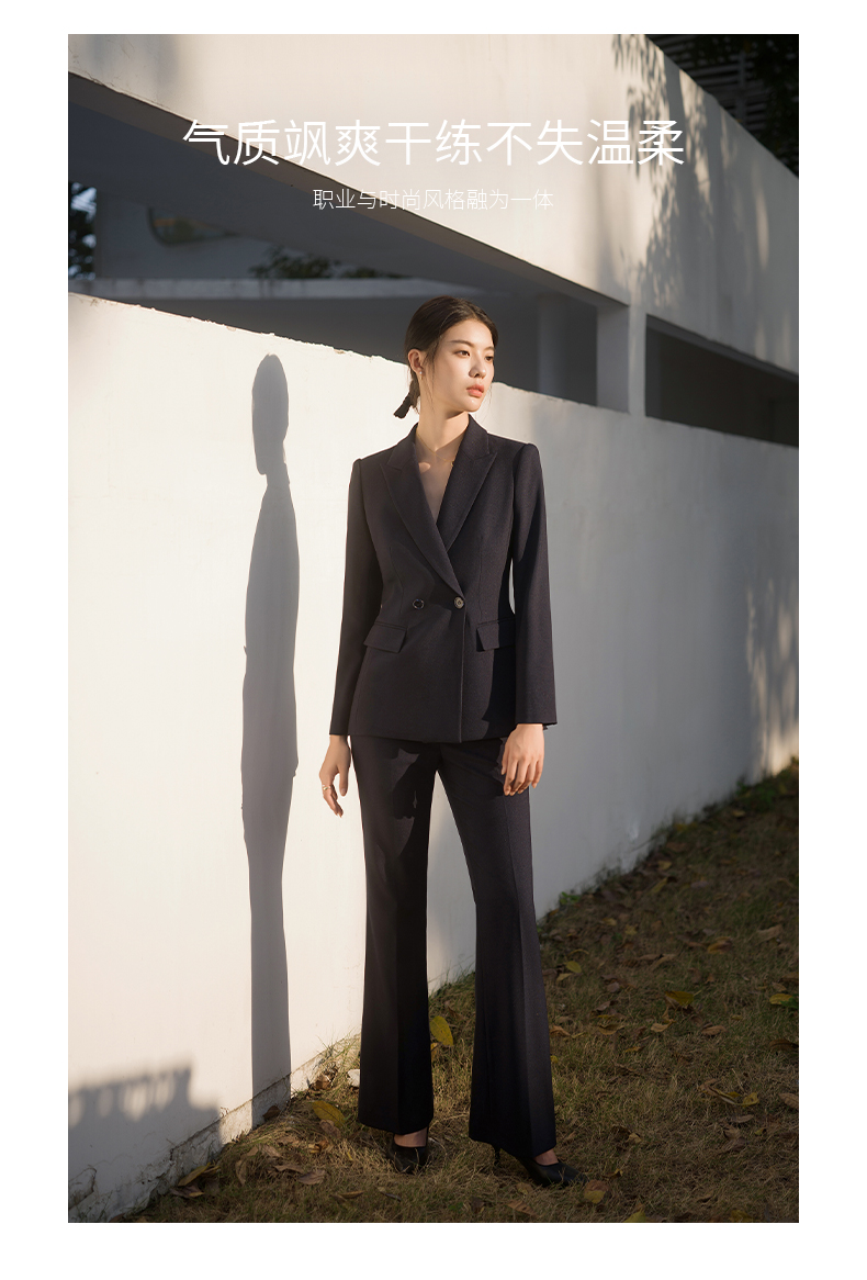IWY/春季ol藏青色西装套装长袖高级感西服宽松两件套微喇裤装C14210+P34210