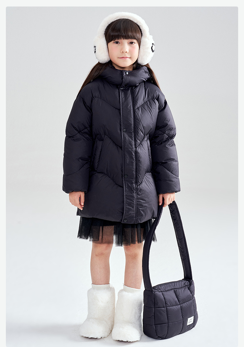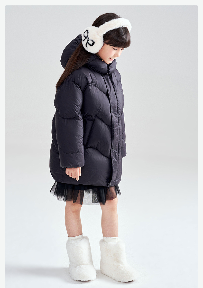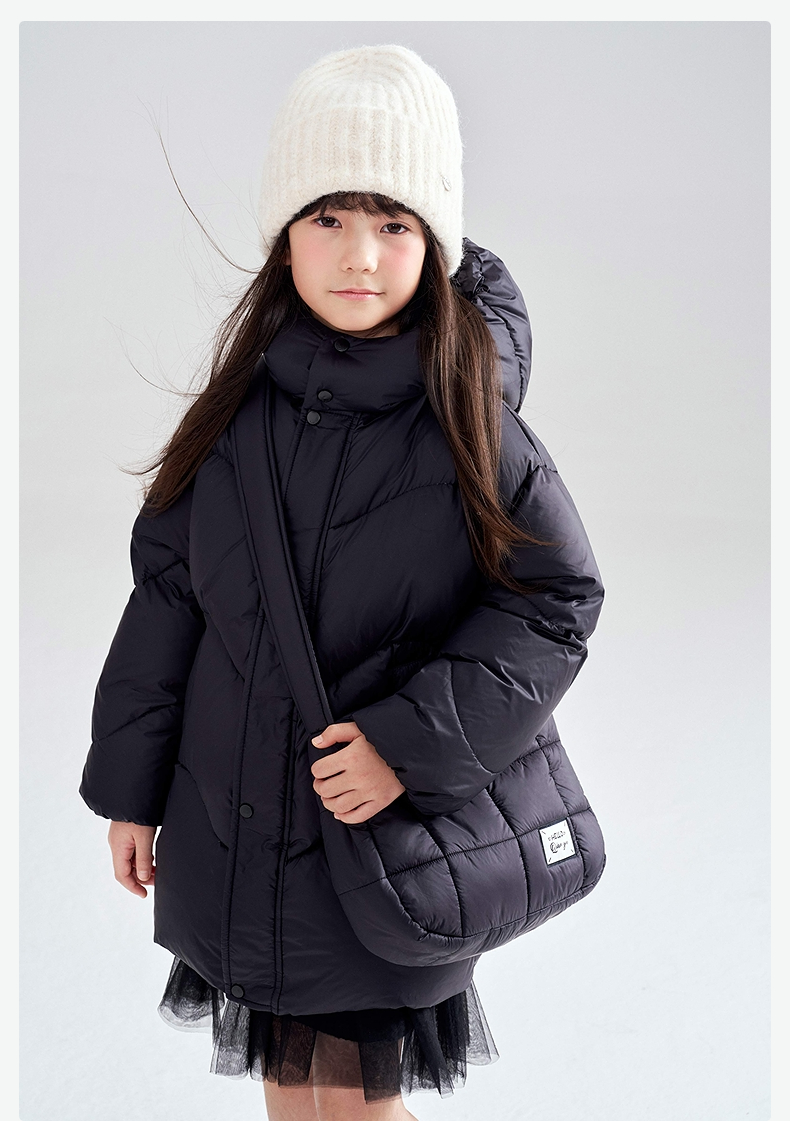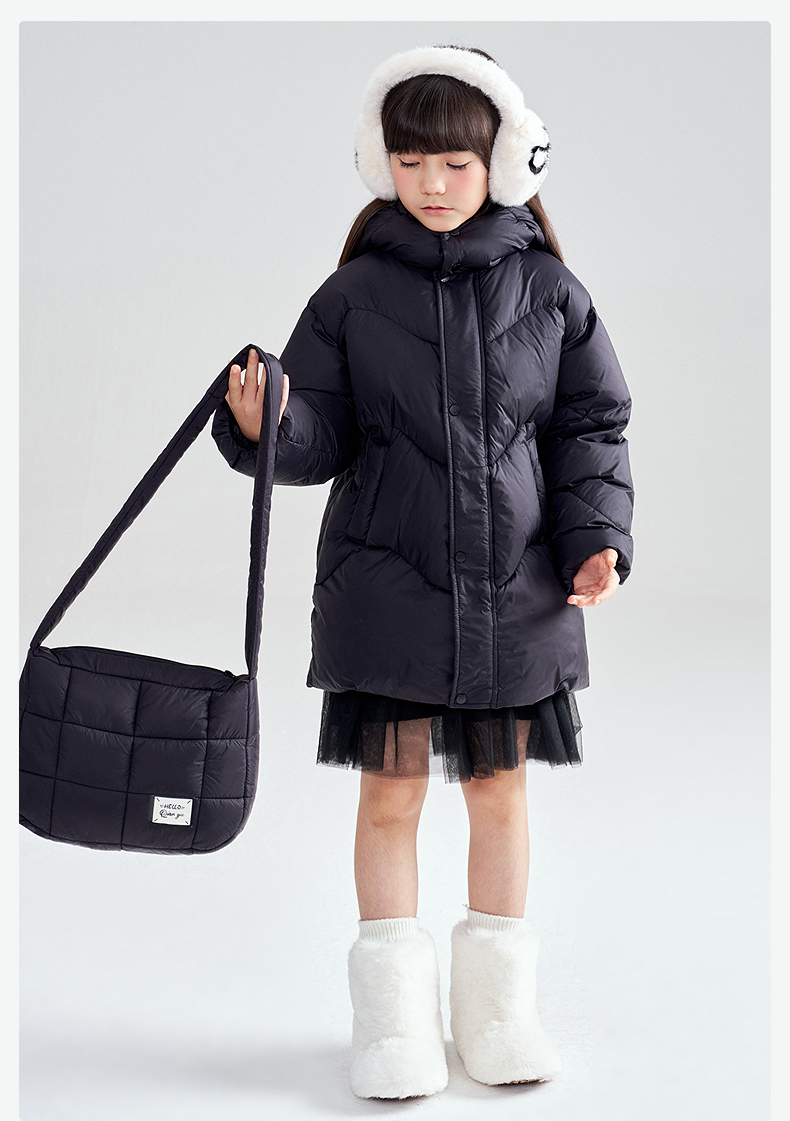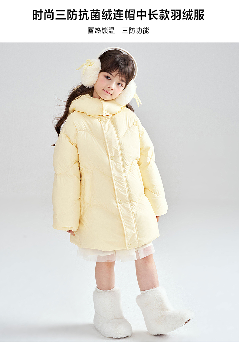 笛莎Deesha 2025冬季女童时尚三防抗菌绒连帽中长款羽绒服