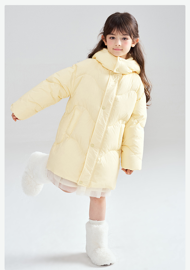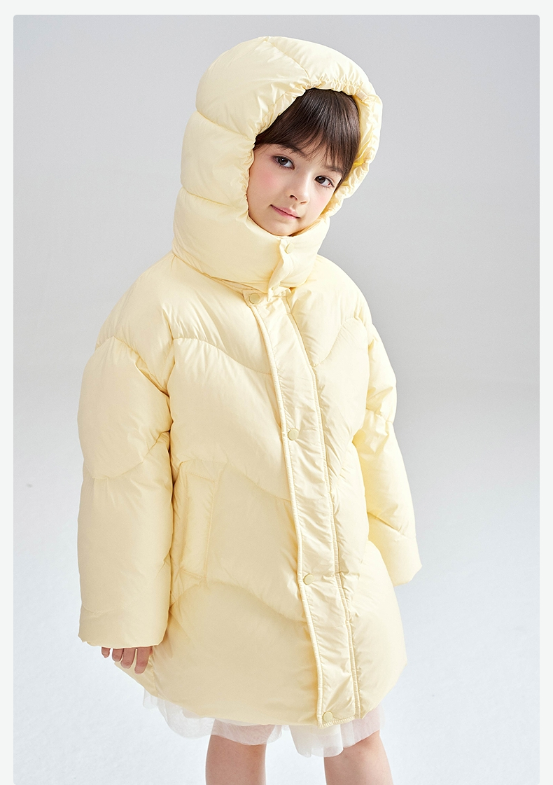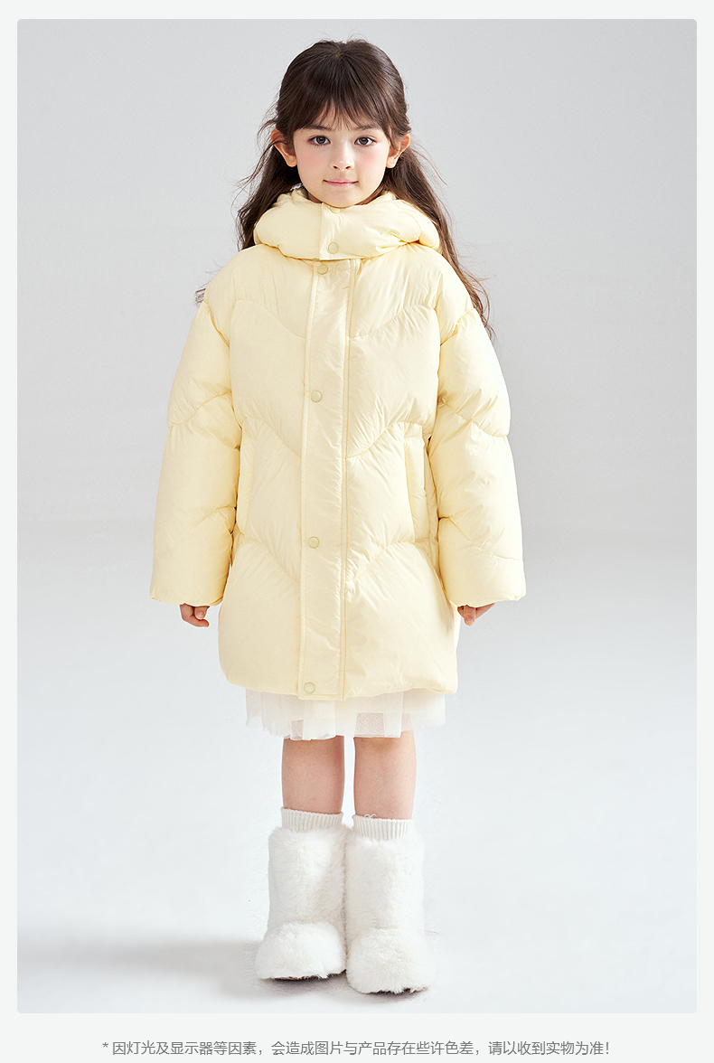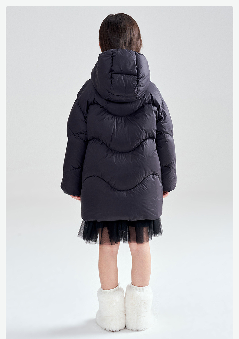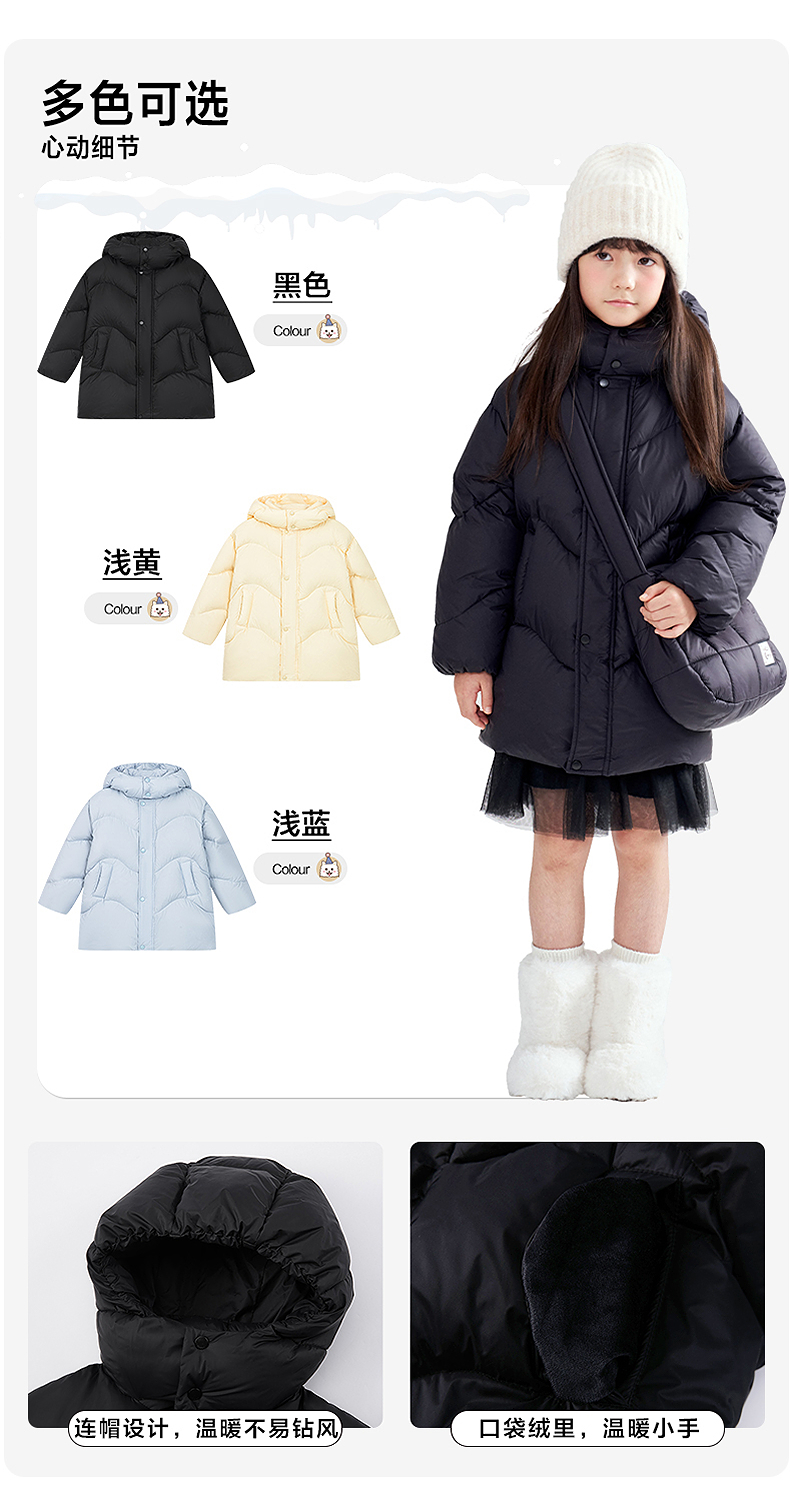 笛莎Deesha 2025冬季女童时尚三防抗菌绒连帽中长款羽绒服