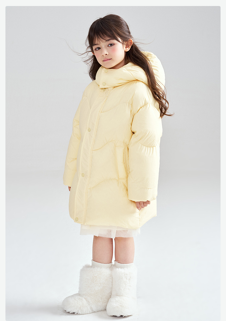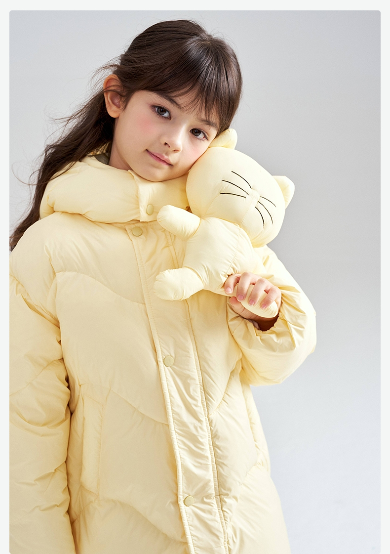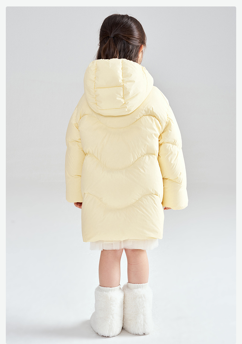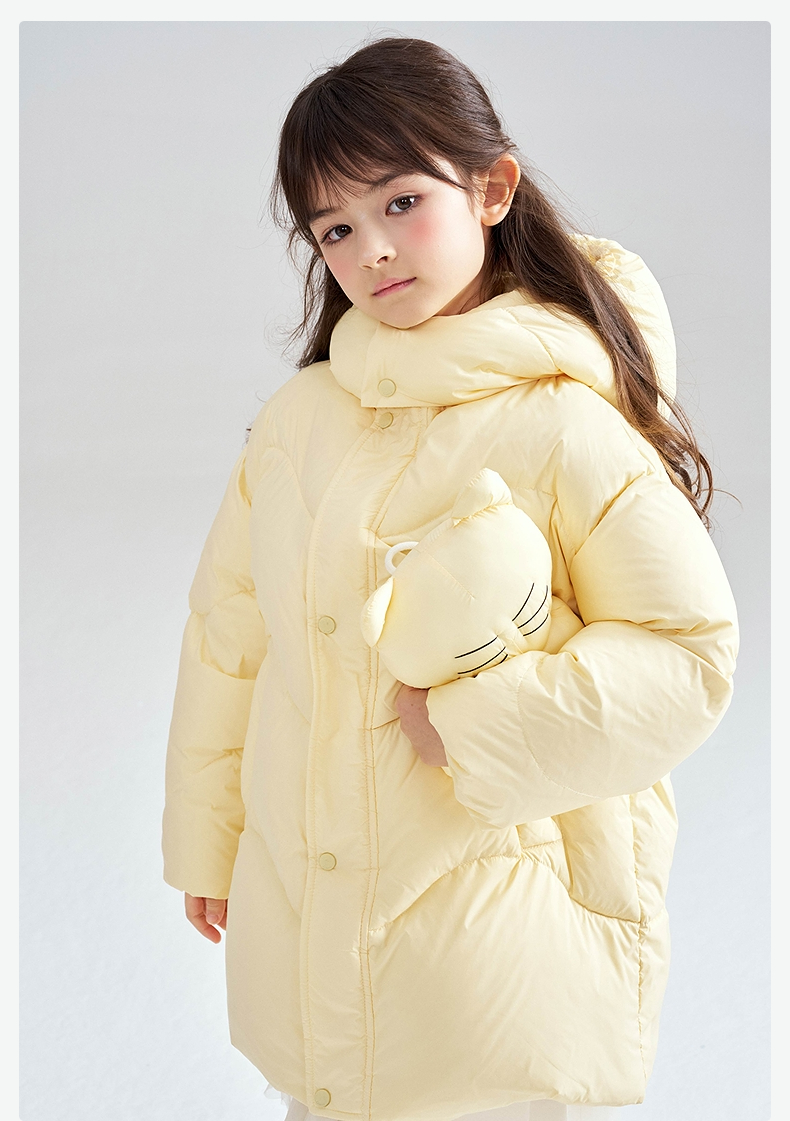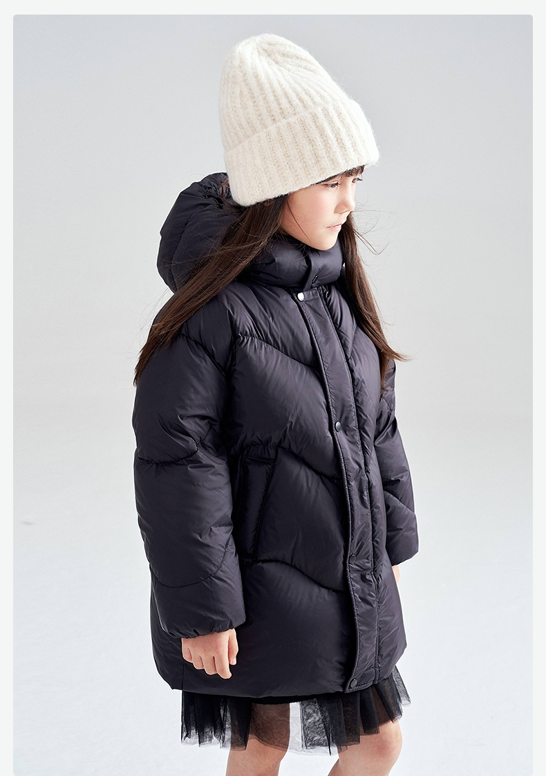 笛莎Deesha 2025冬季女童时尚三防抗菌绒连帽中长款羽绒服