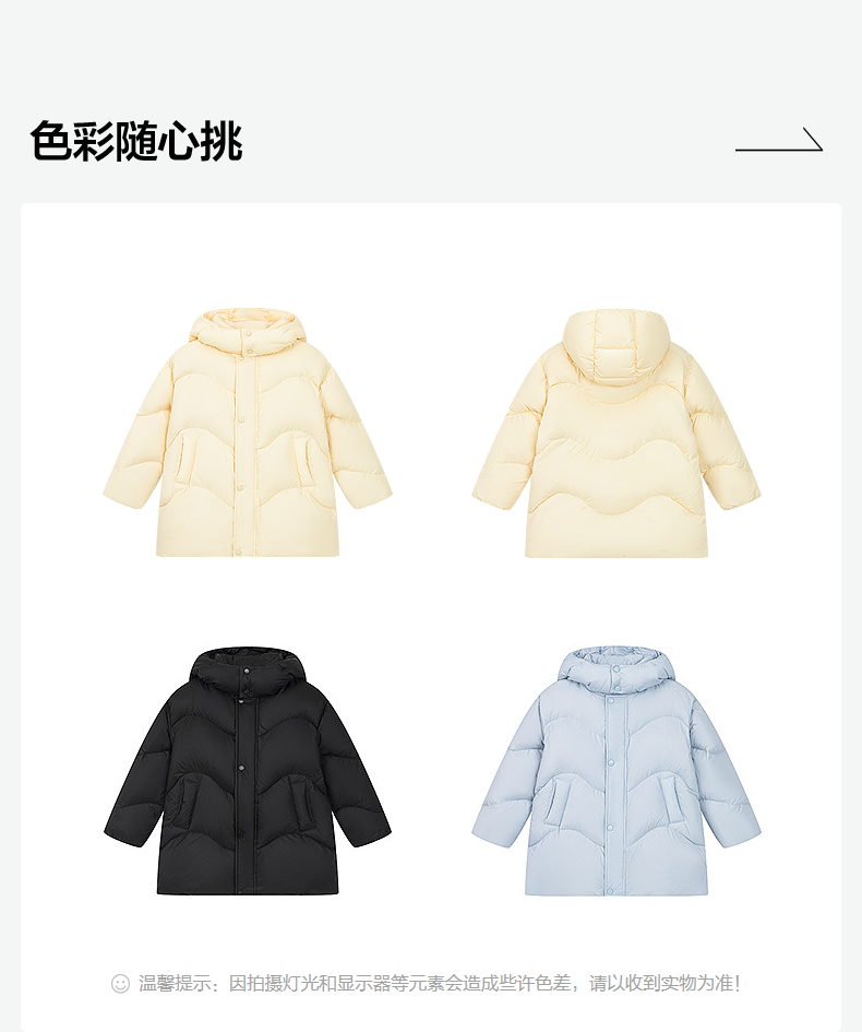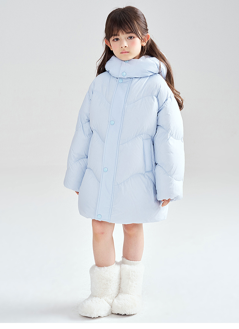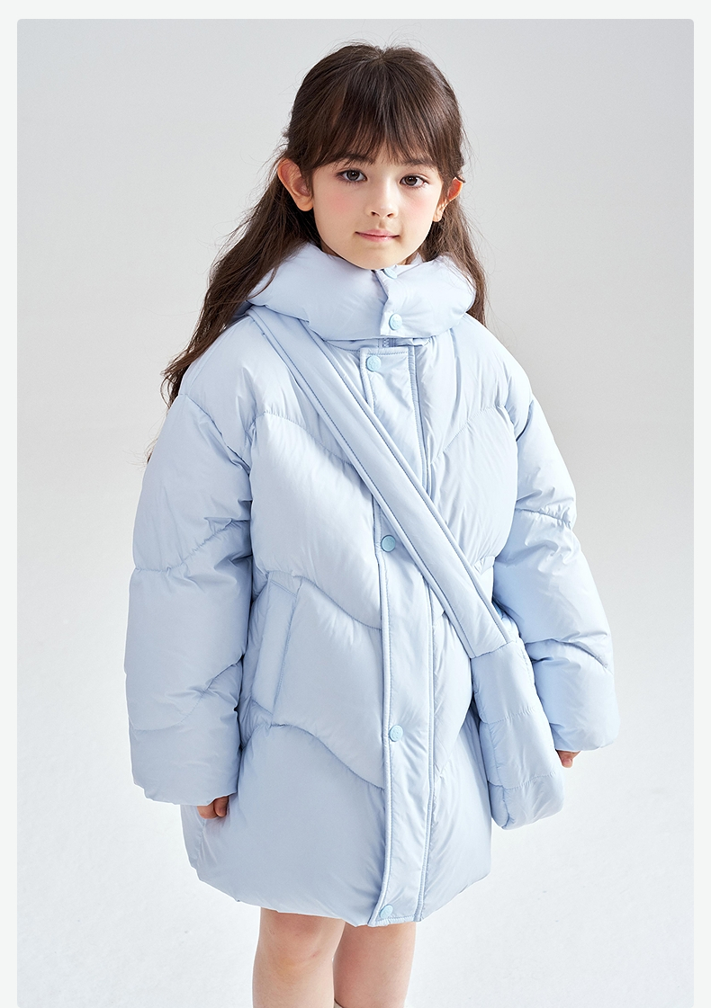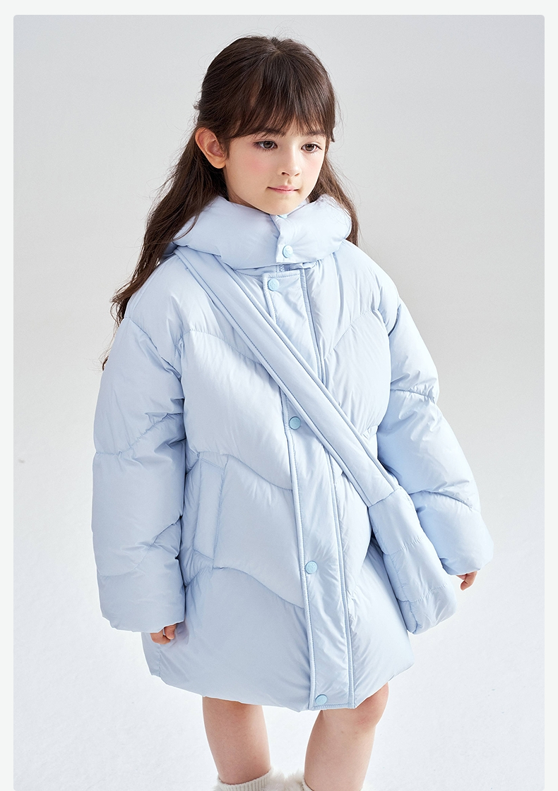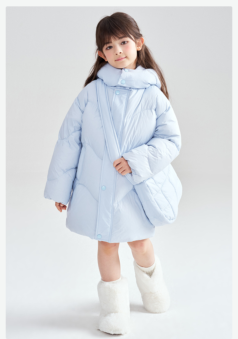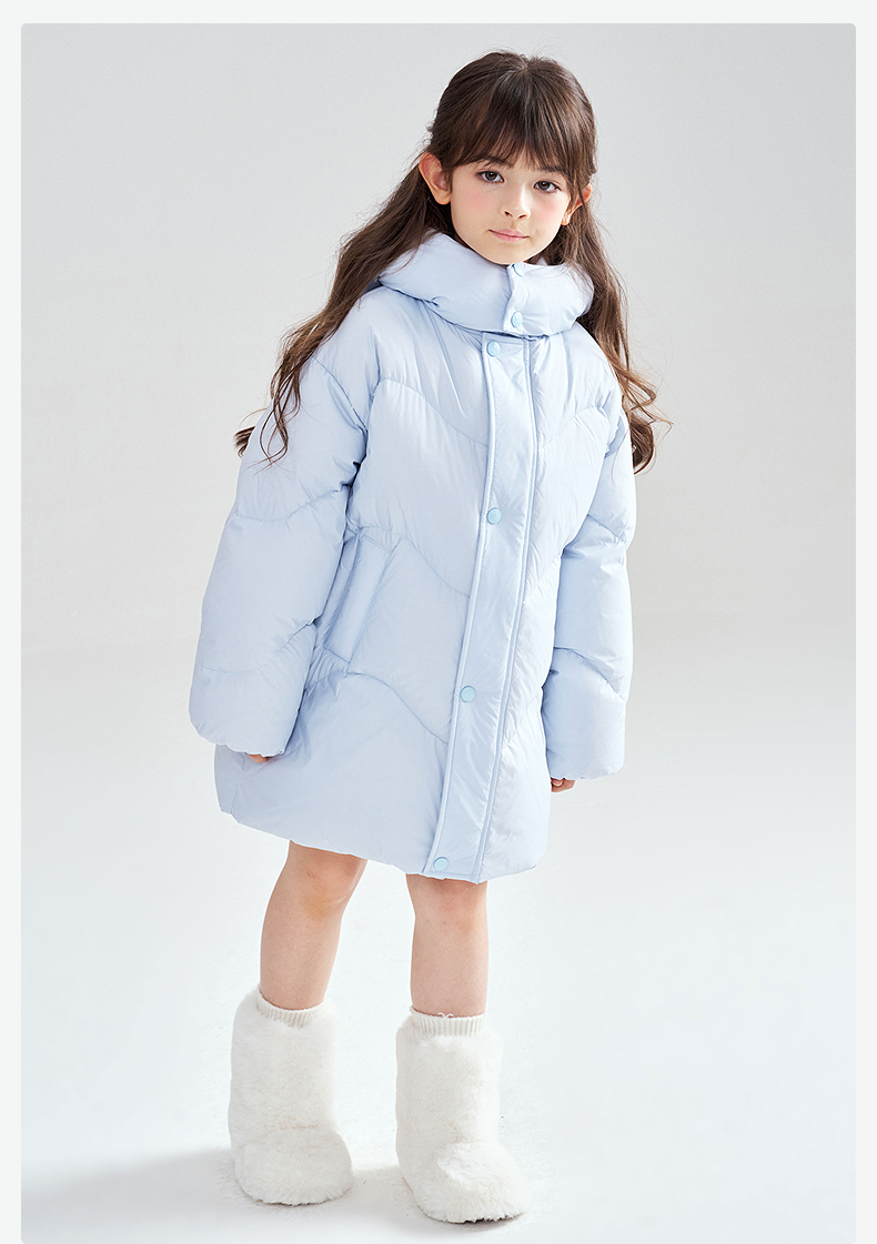 笛莎Deesha 2025冬季女童时尚三防抗菌绒连帽中长款羽绒服