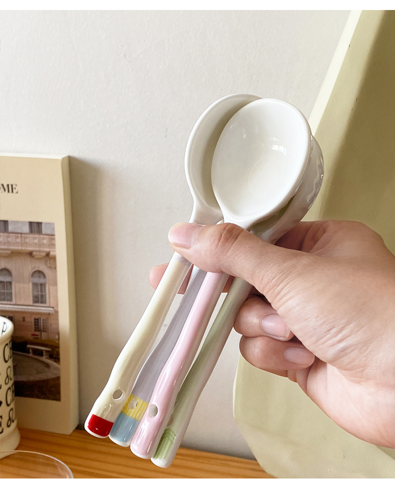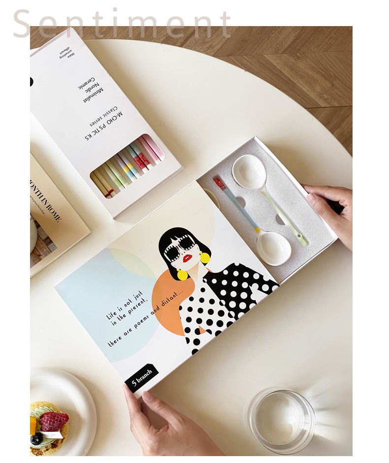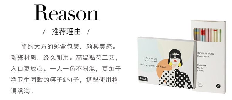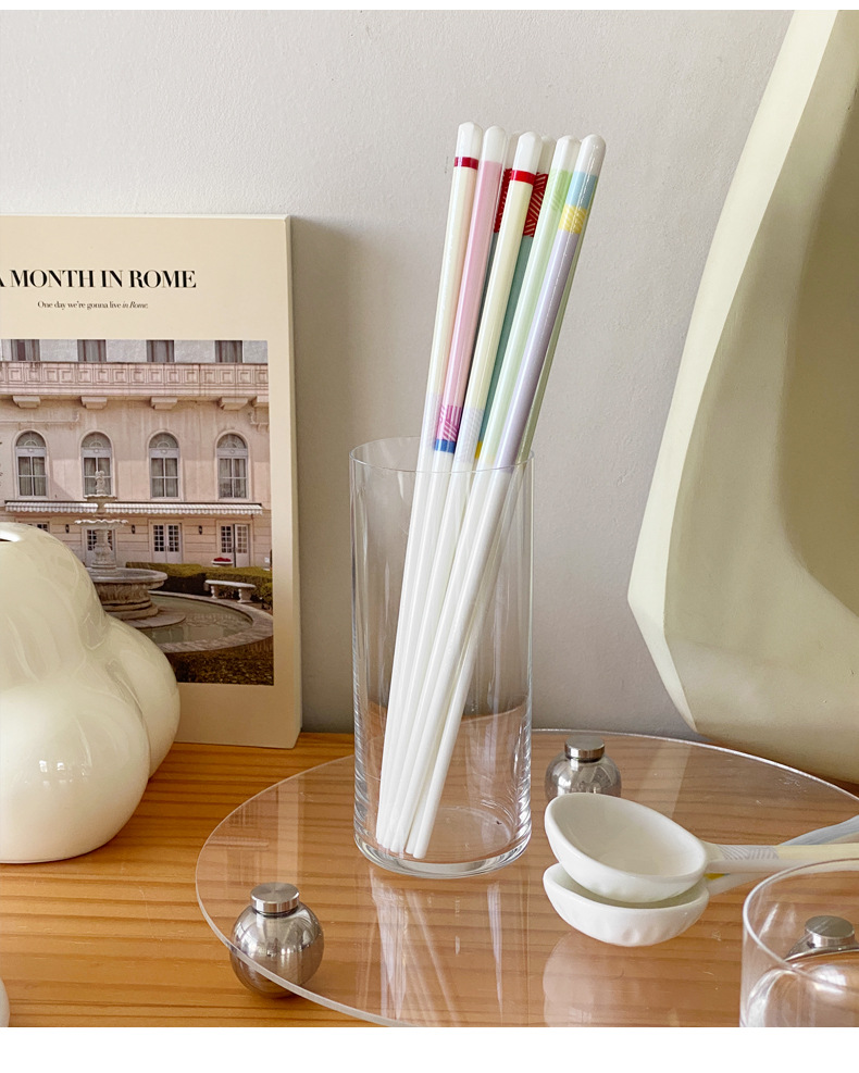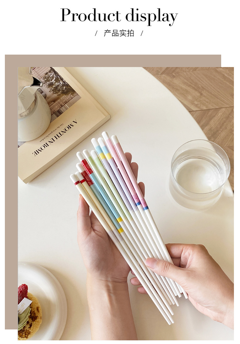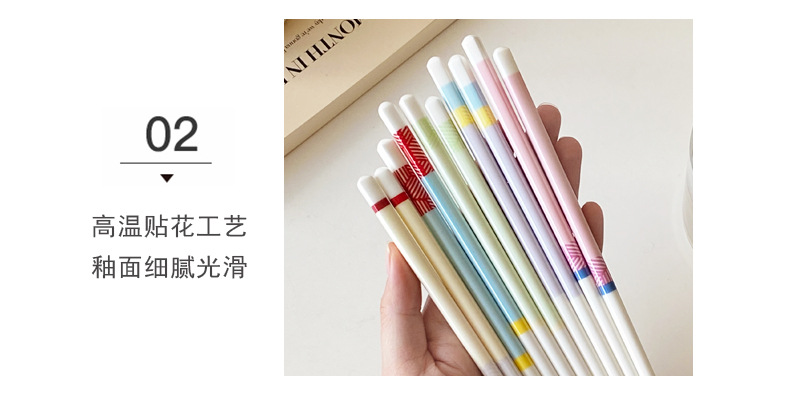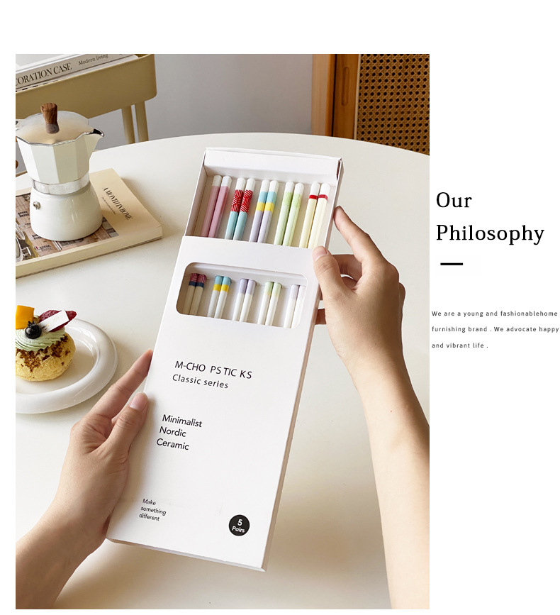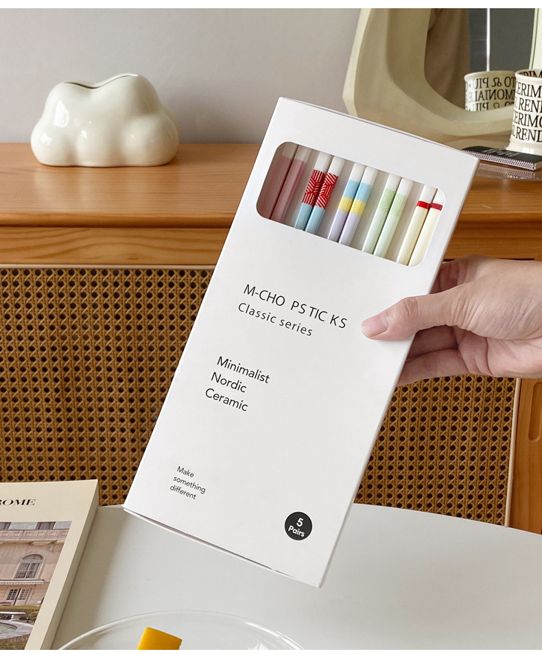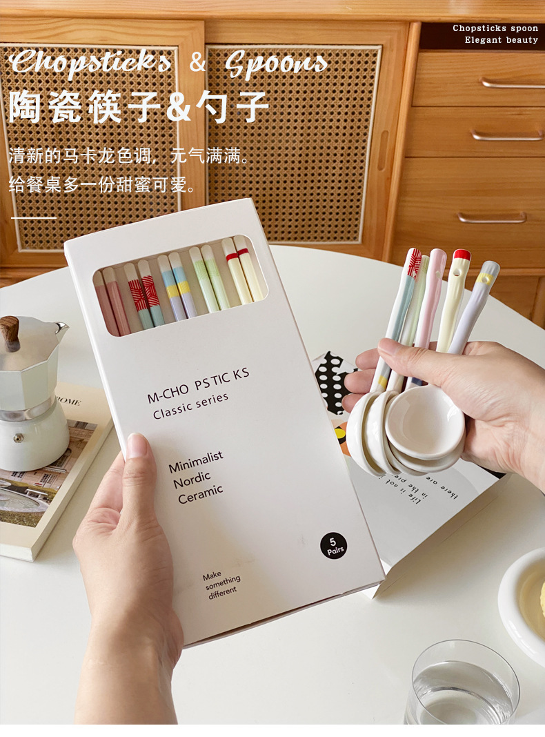 【陶瓷筷子马卡龙撞色设计】 少女心彩色ins 家用陶瓷勺子套装5双礼盒装