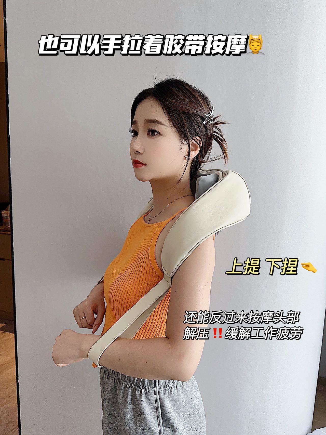 3D仿真人手揉捏肩颈按摩器~✅两种按摩模式 ✅2000MAH 续航力 ✅2档力度可轻重选择 ✅可拆布套 ✅无线自由按摩|休闲宅家好搭档~肩背带式设计解放双手!肩颈、斜方肌、腰腹,想按哪里按哪里!