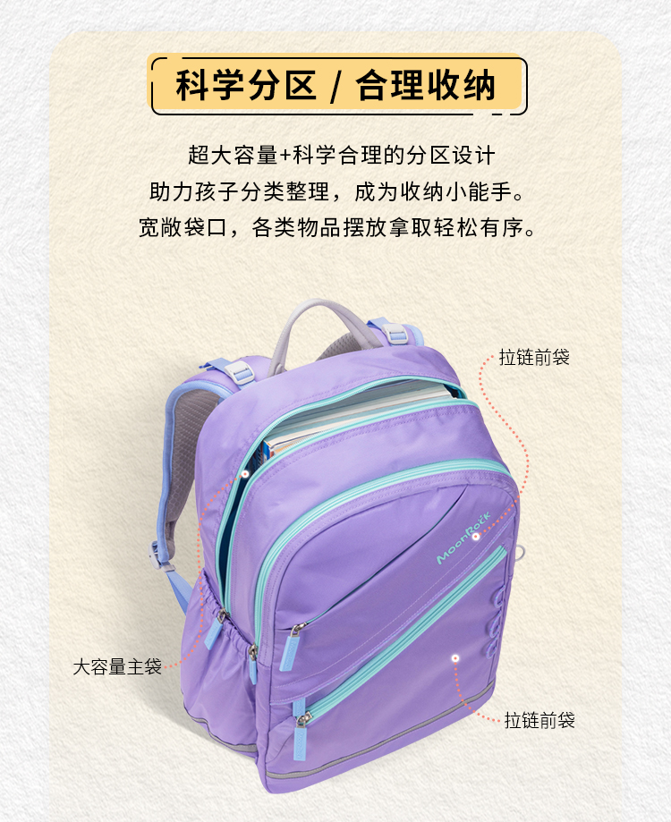 MoonRock梦乐护脊减负学生书包 28L