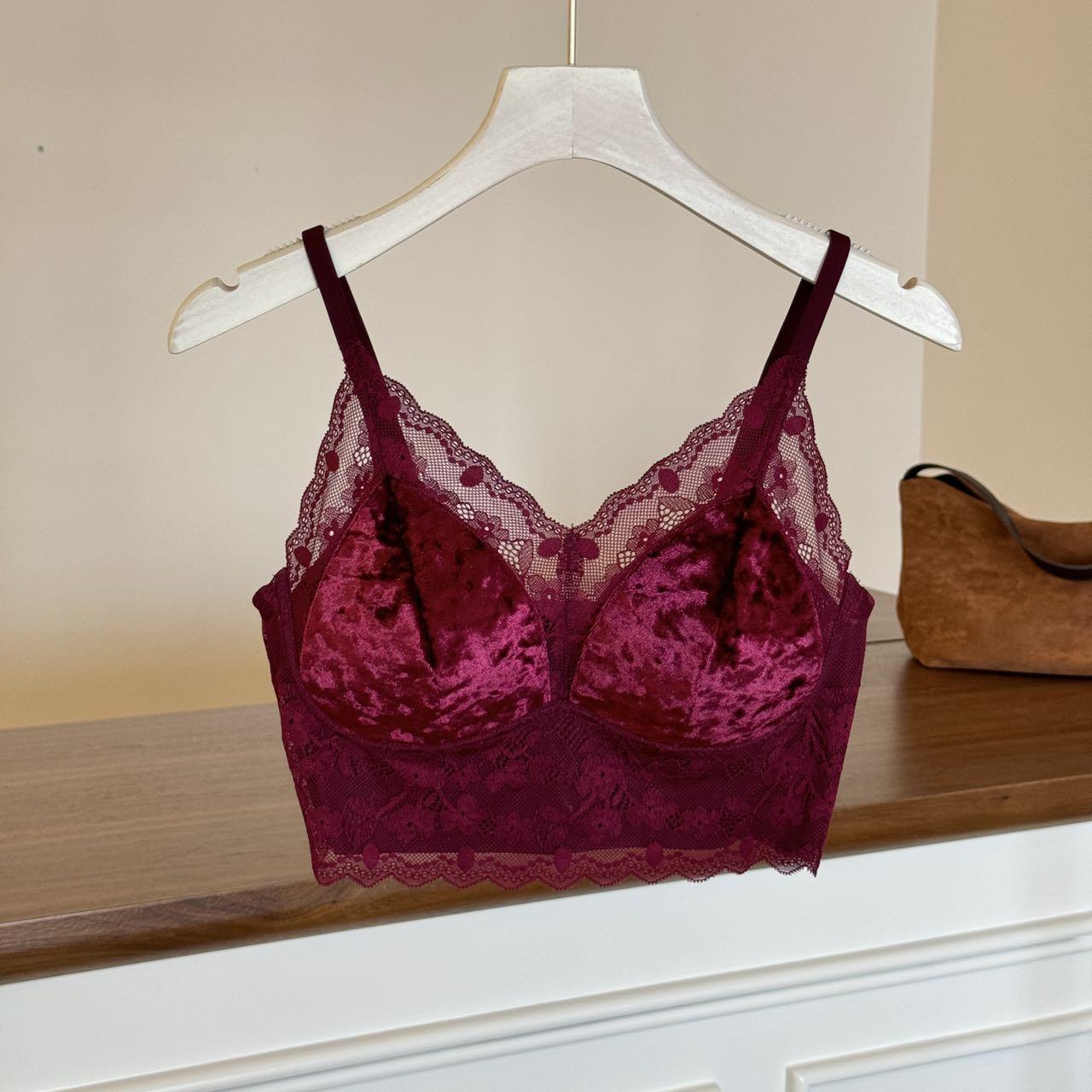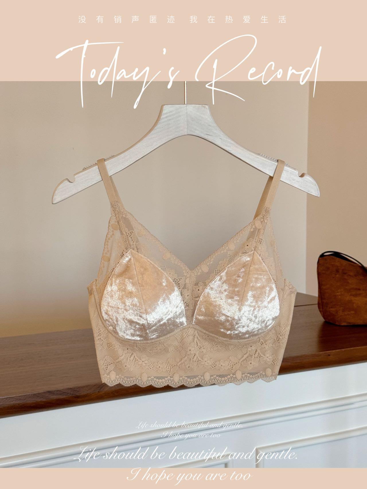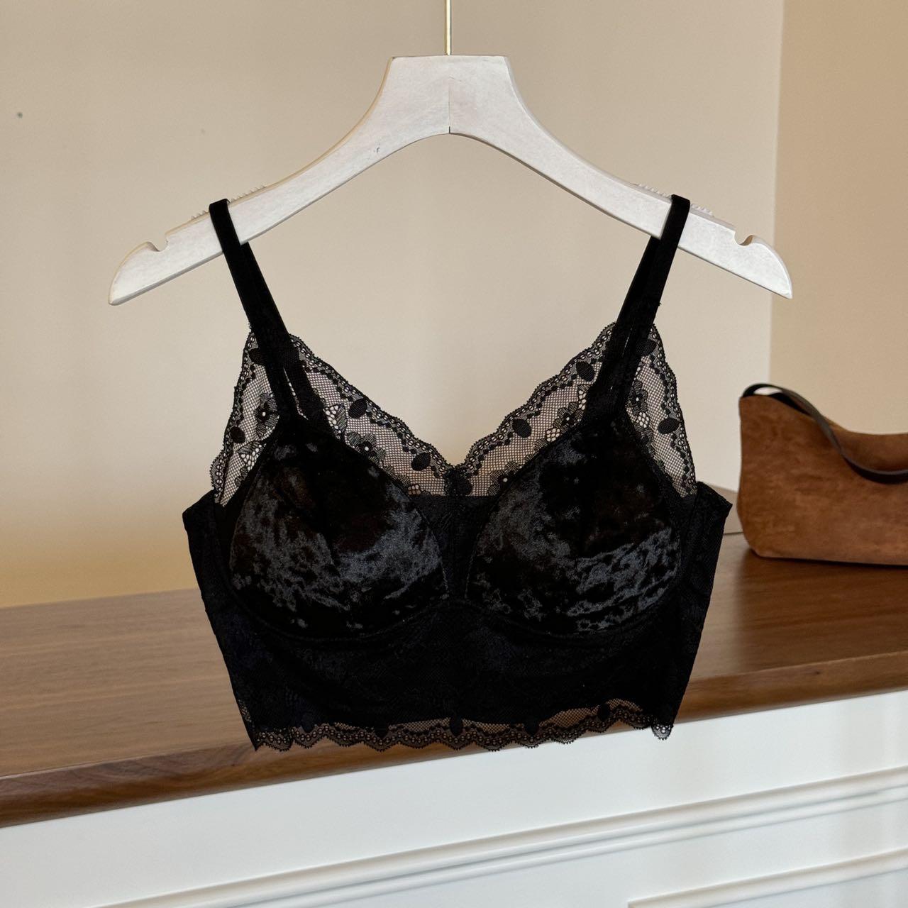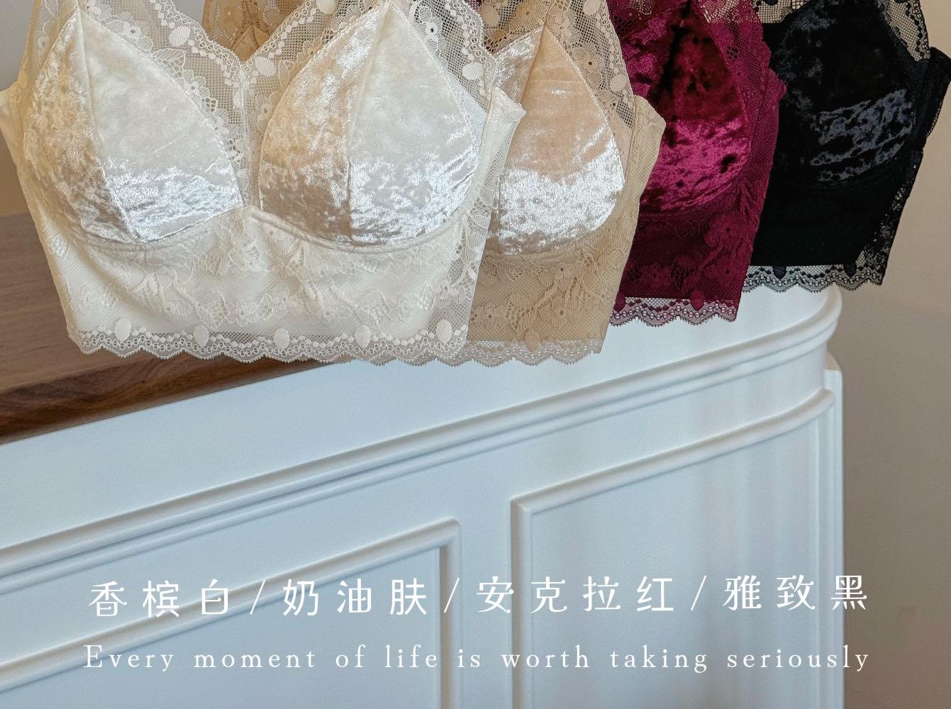 曼芮凯诗【金丝绒短款】法式性感金丝绒蕾丝拼接文胸 24020