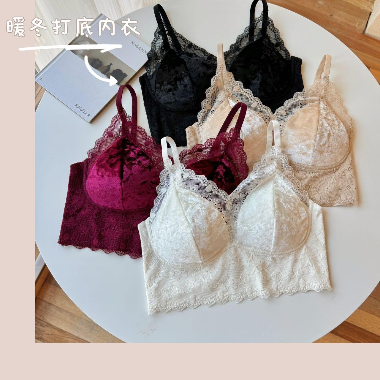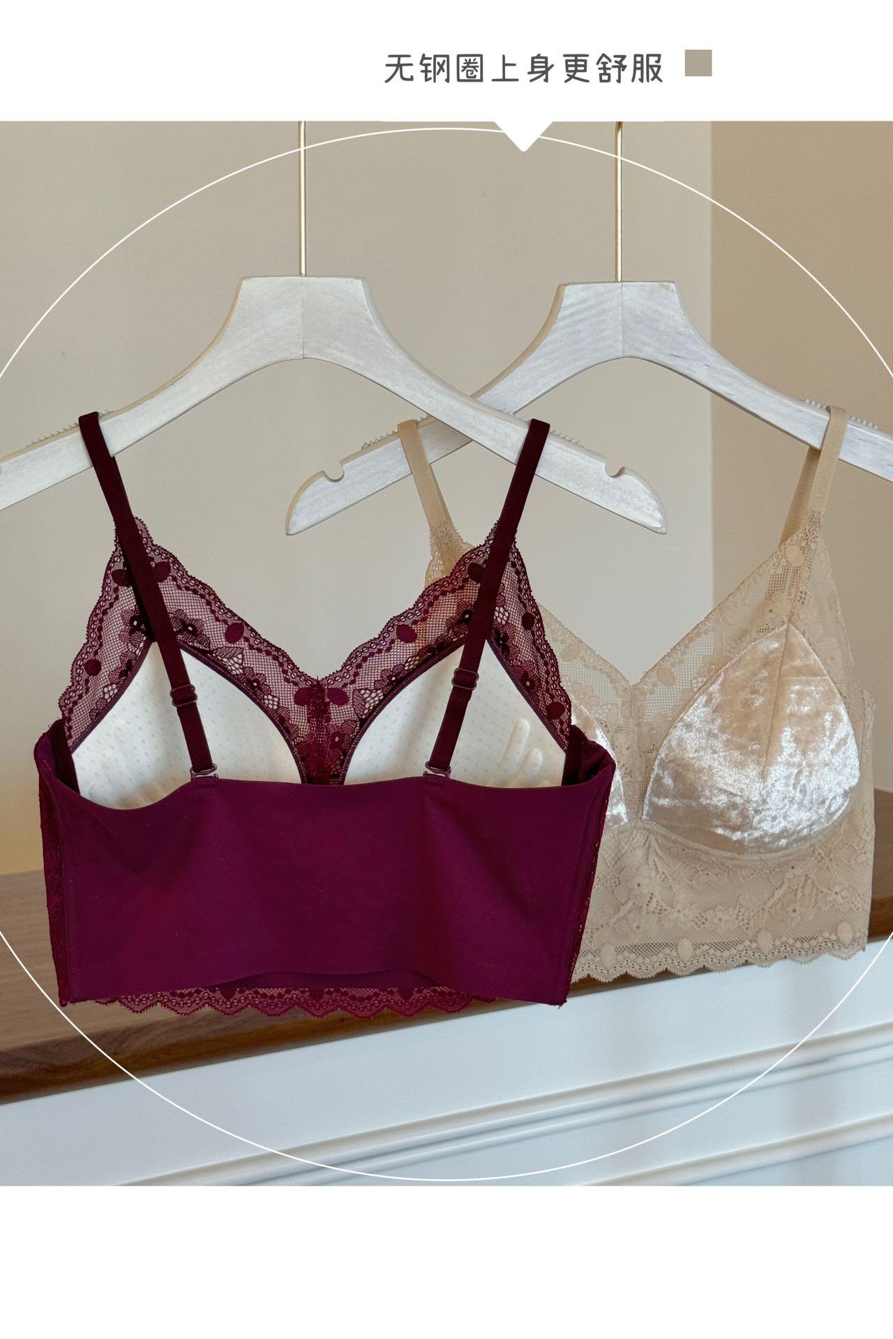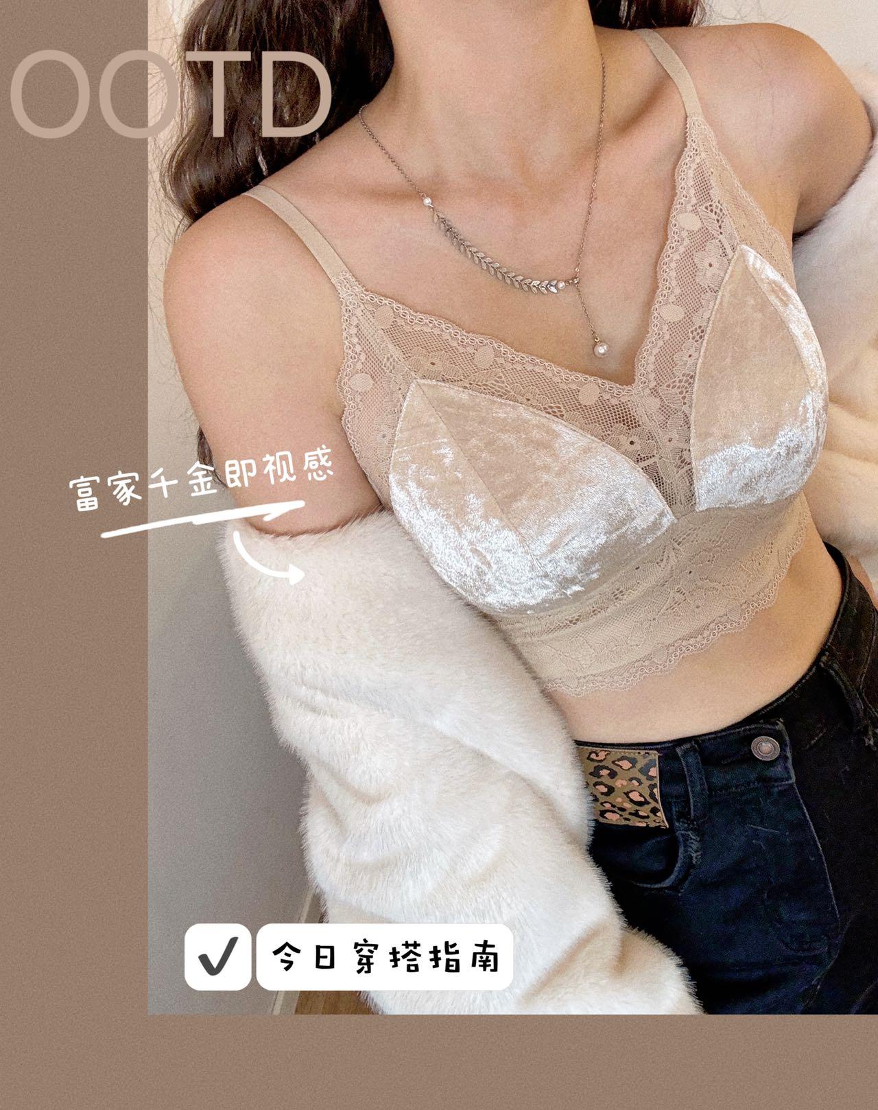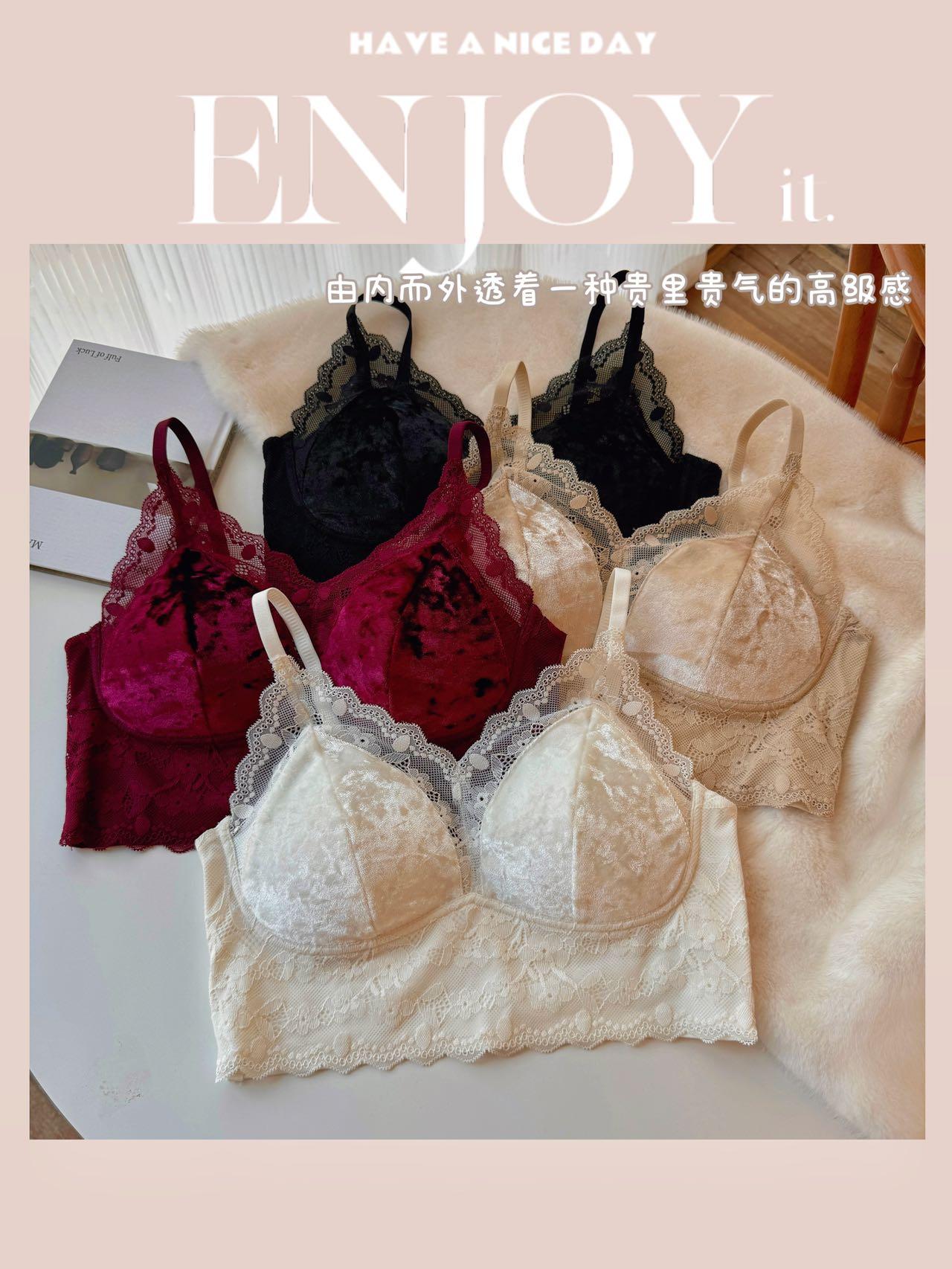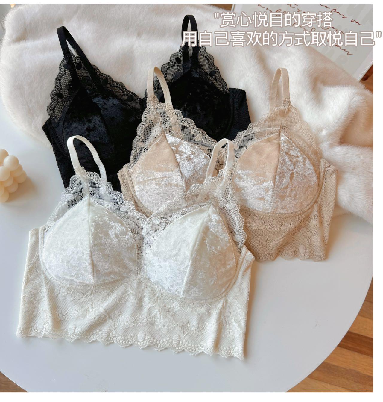 曼芮凯诗【金丝绒短款】法式性感金丝绒蕾丝拼接文胸 24020