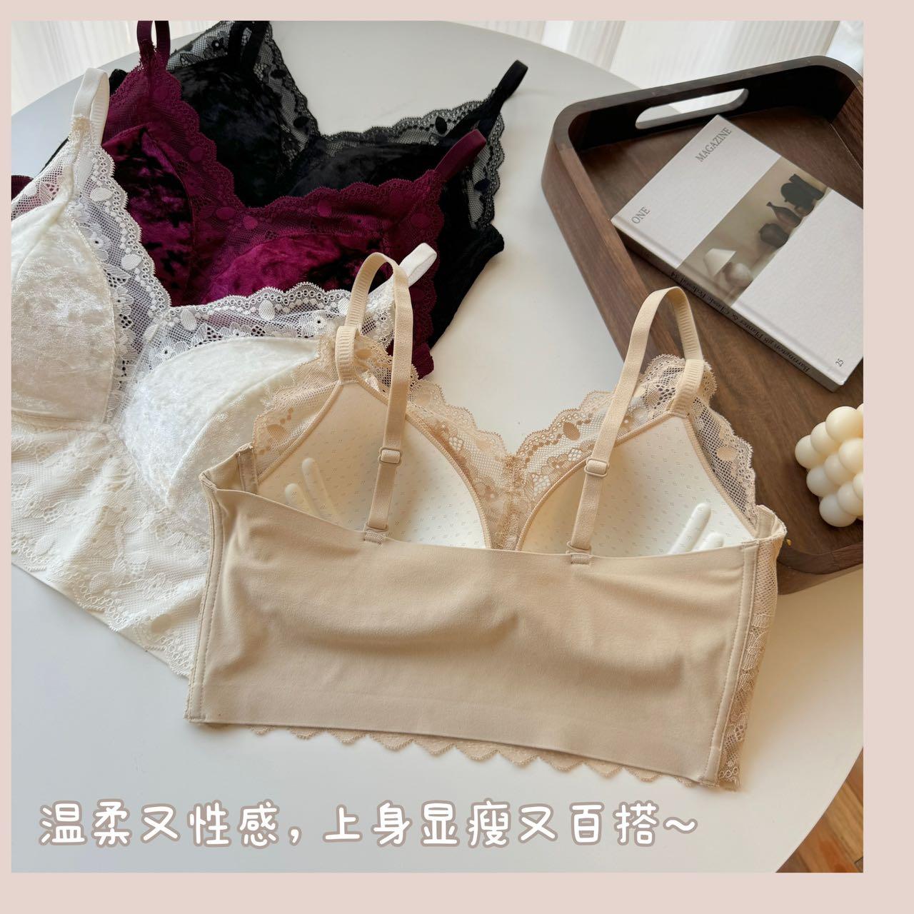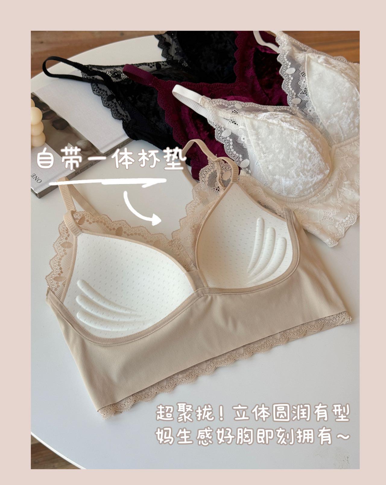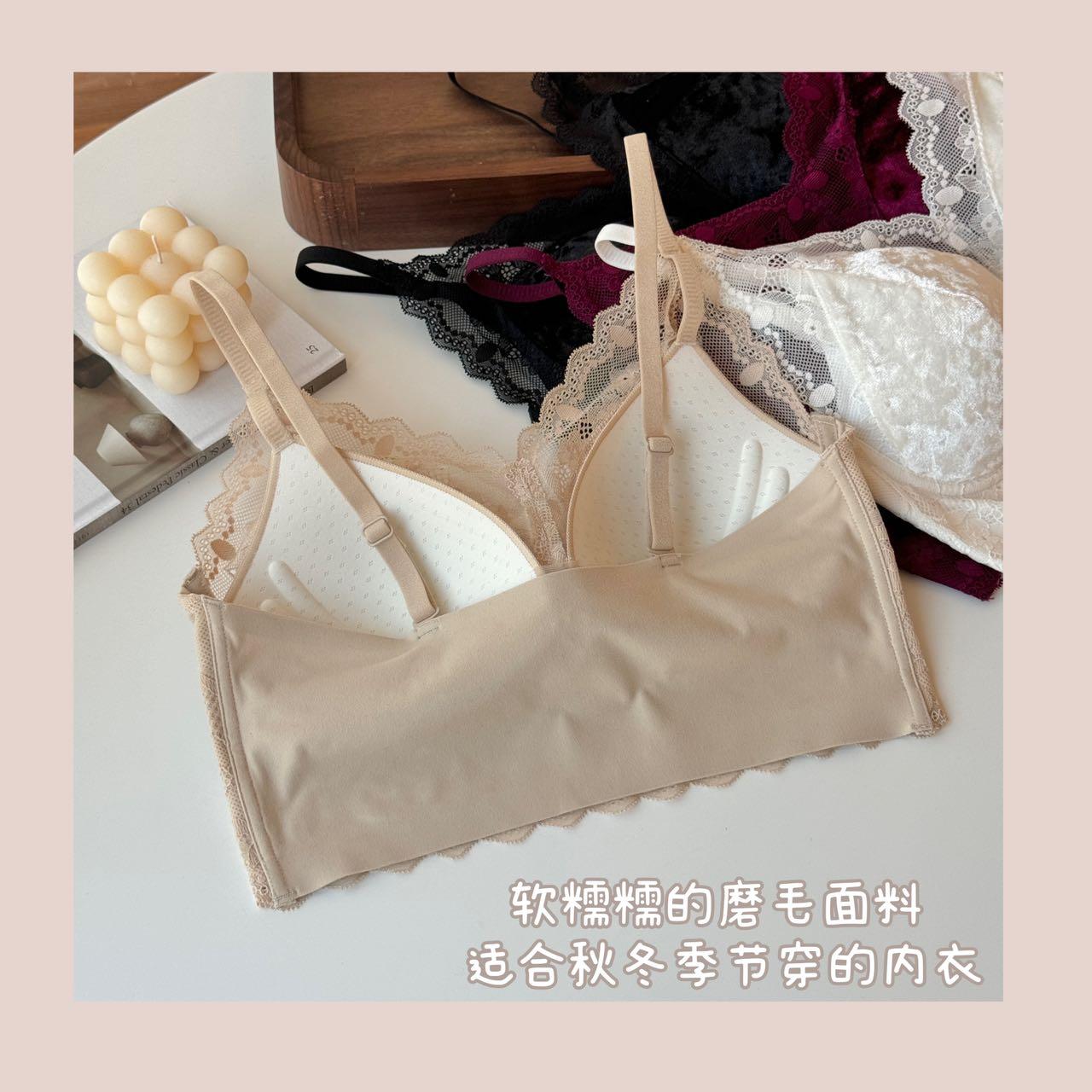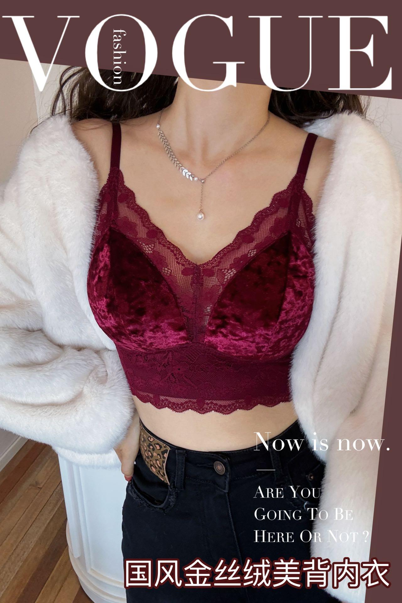 曼芮凯诗【金丝绒短款】法式性感金丝绒蕾丝拼接文胸 24020