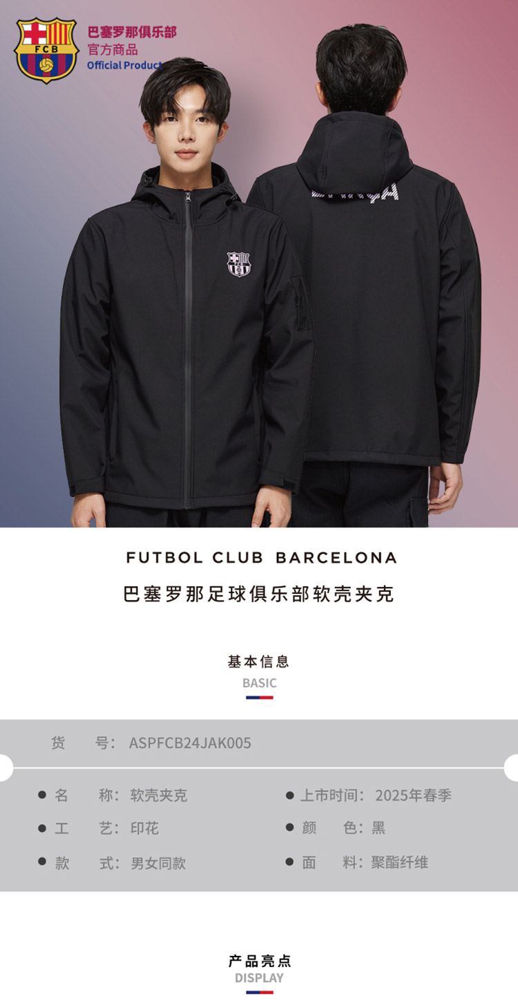 【官方正版】巴塞罗那俱乐部丨巴萨户外软壳运动夹克足球迷外套