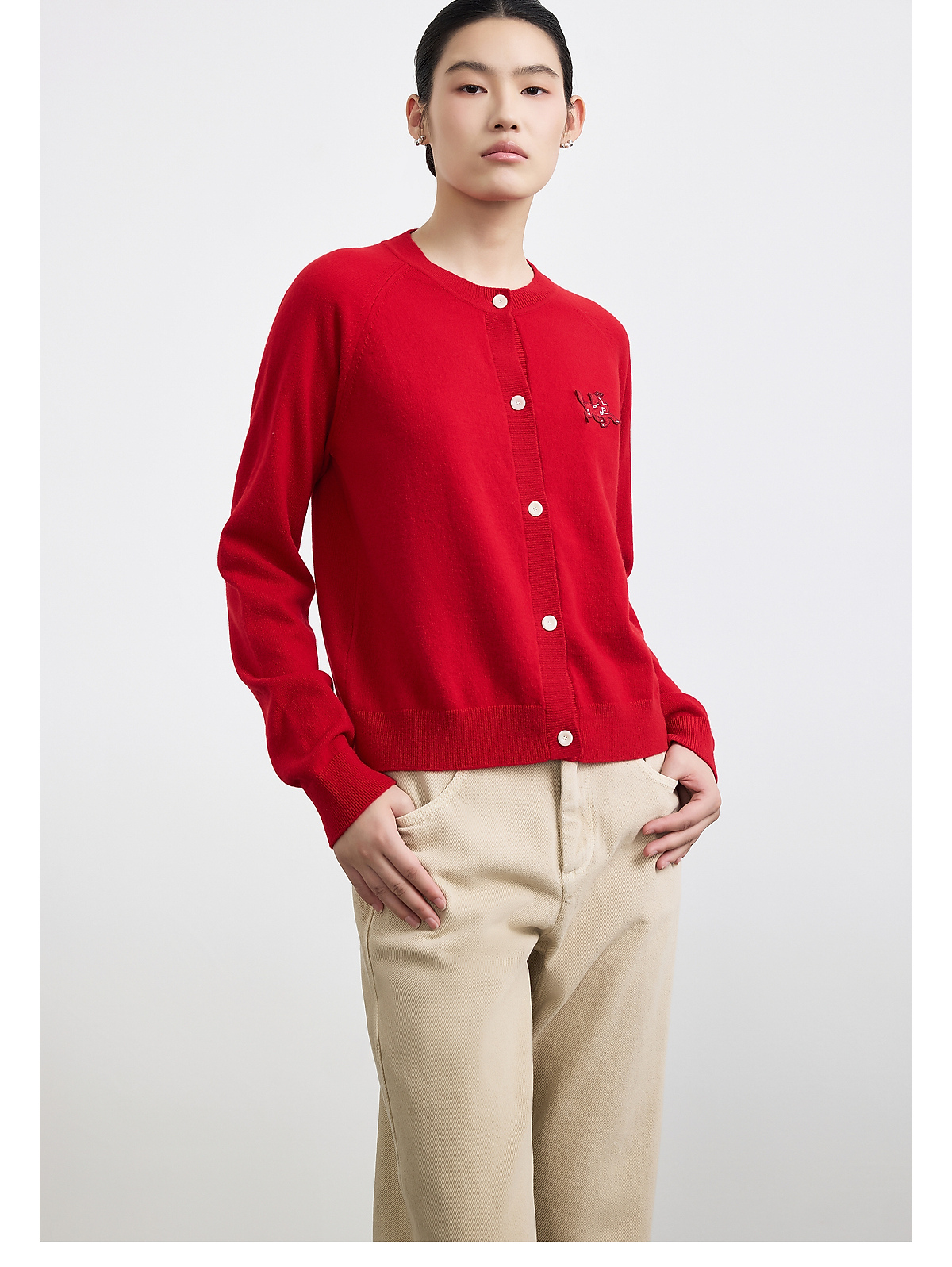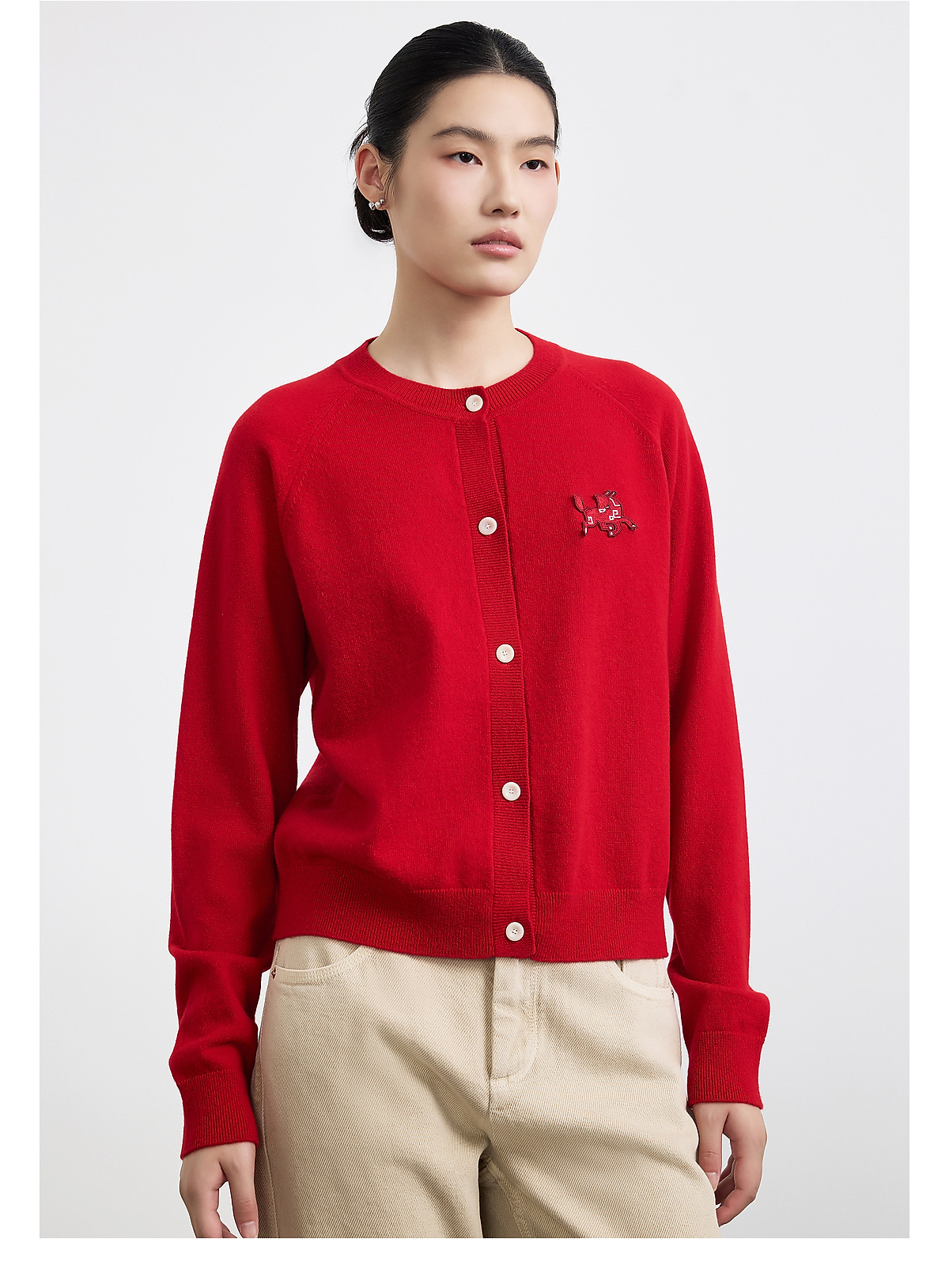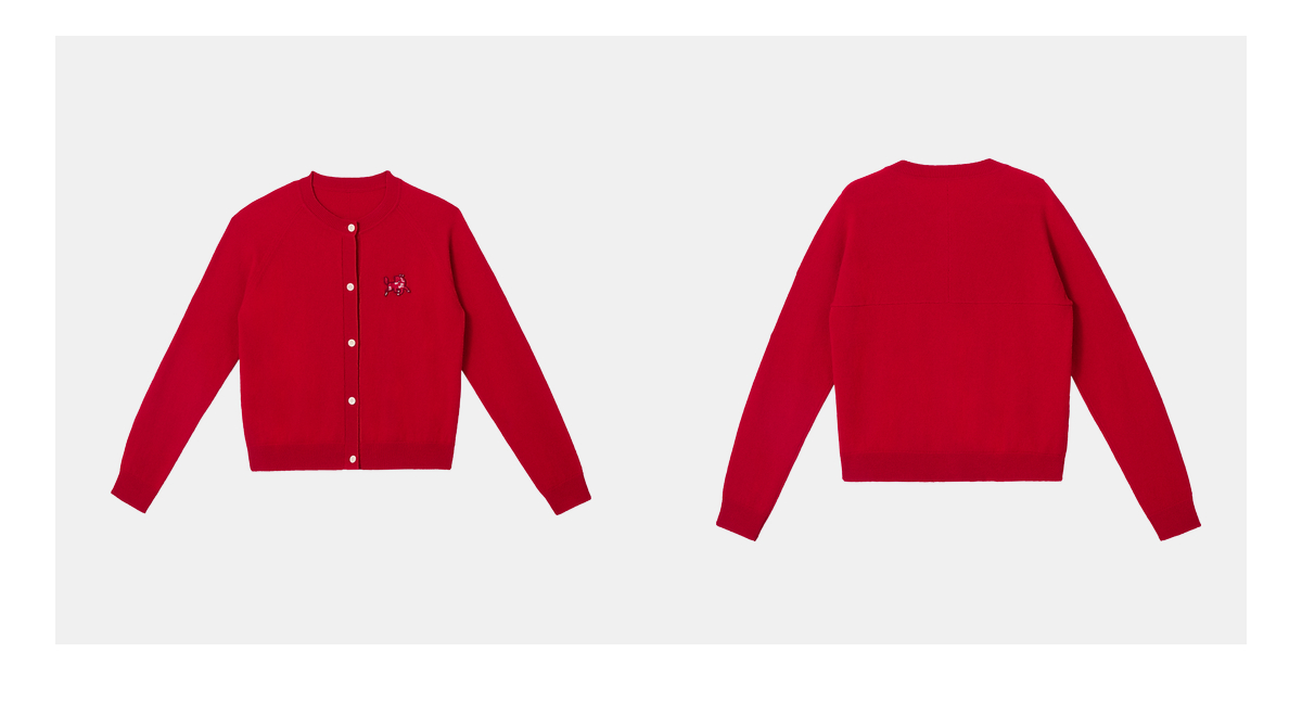 PURE TOUCH女装25秋冬新款圆领羊绒针织开衫新年生肖马刺绣毛衣