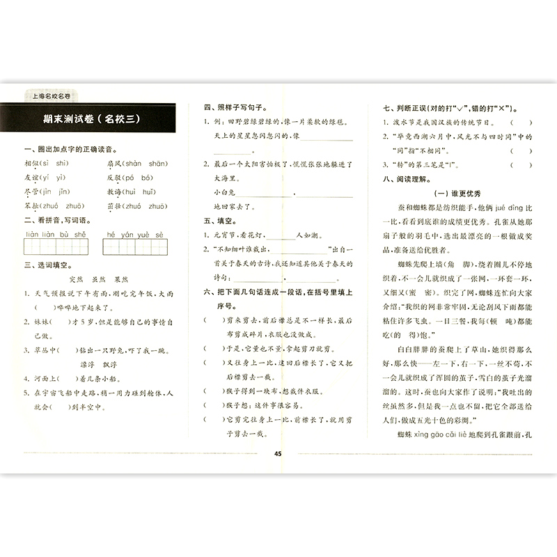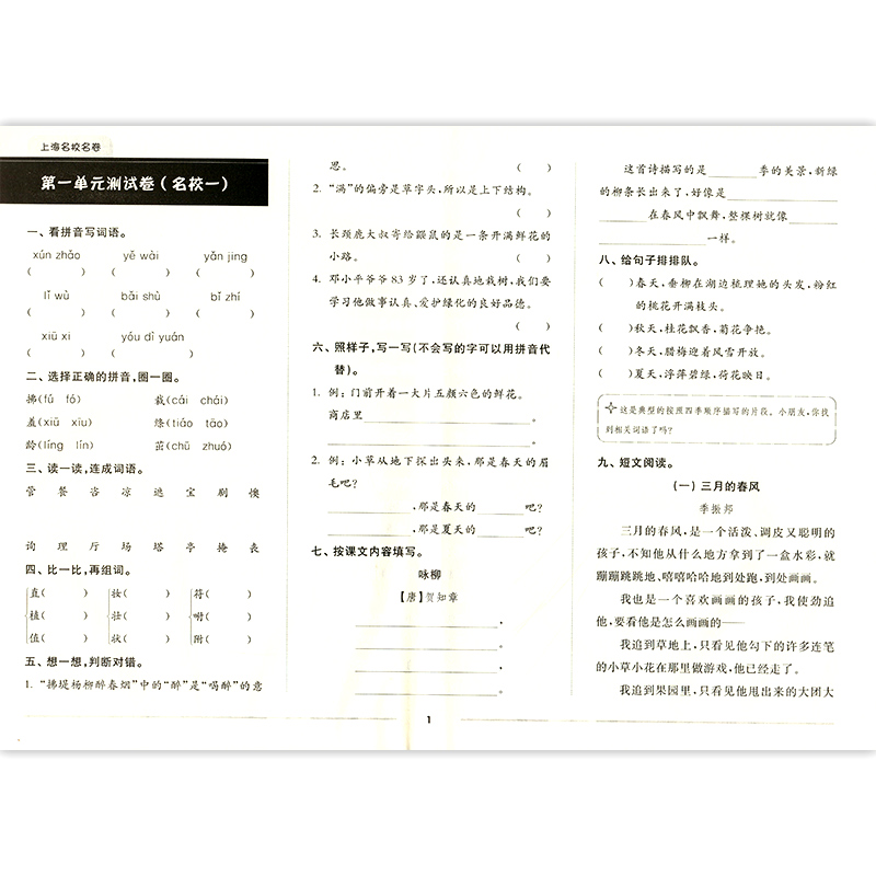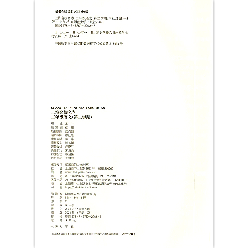 2022上海名校名卷 部编版语文 2年级下册/二年级第二学期 与上海小学语文教材配套 单元测试卷期中期末满分冲刺卷 华东师范大学