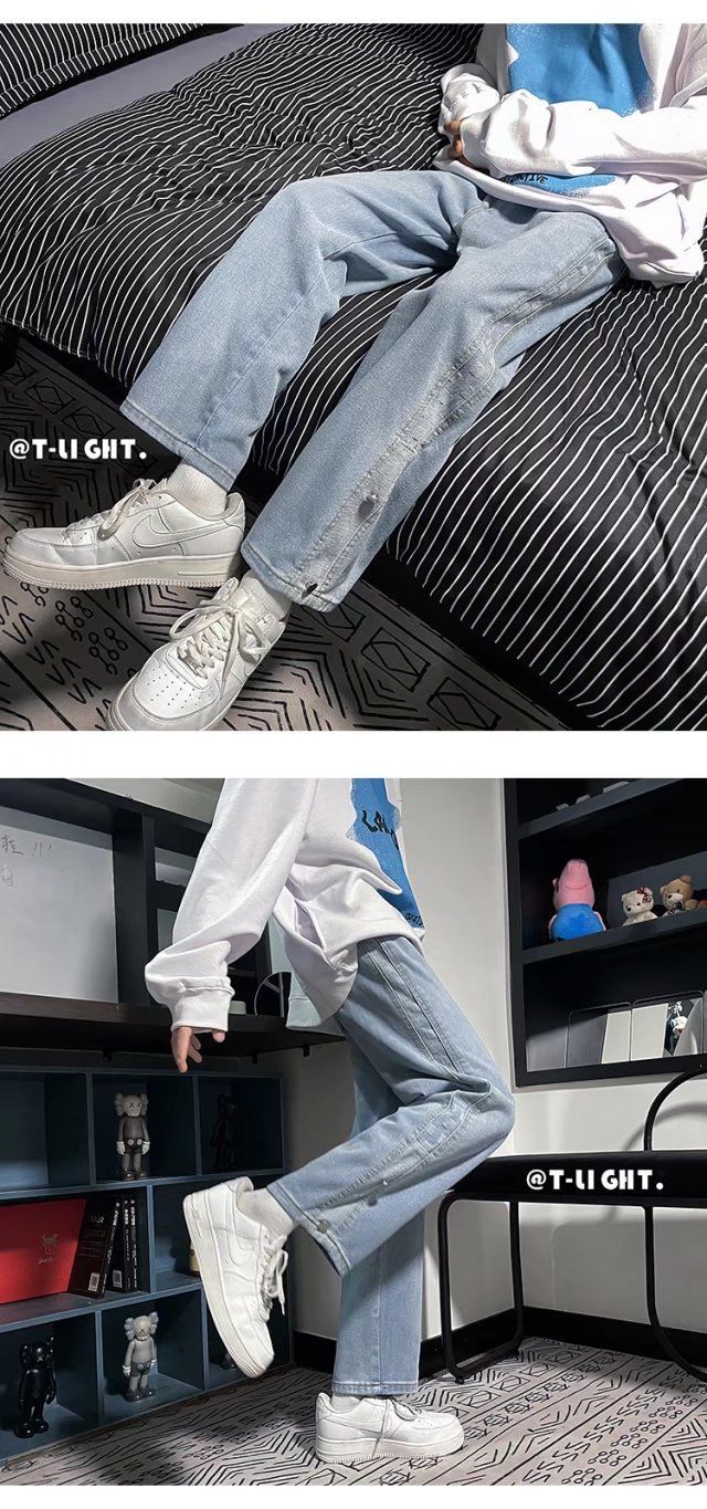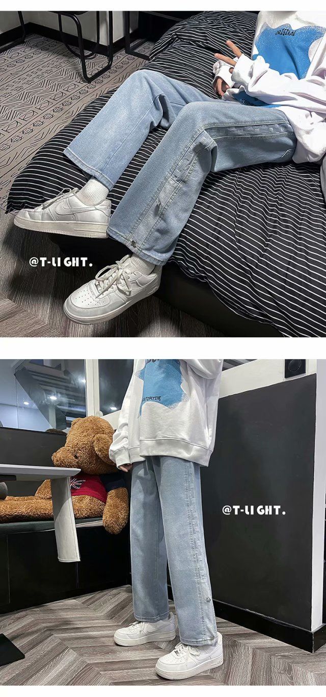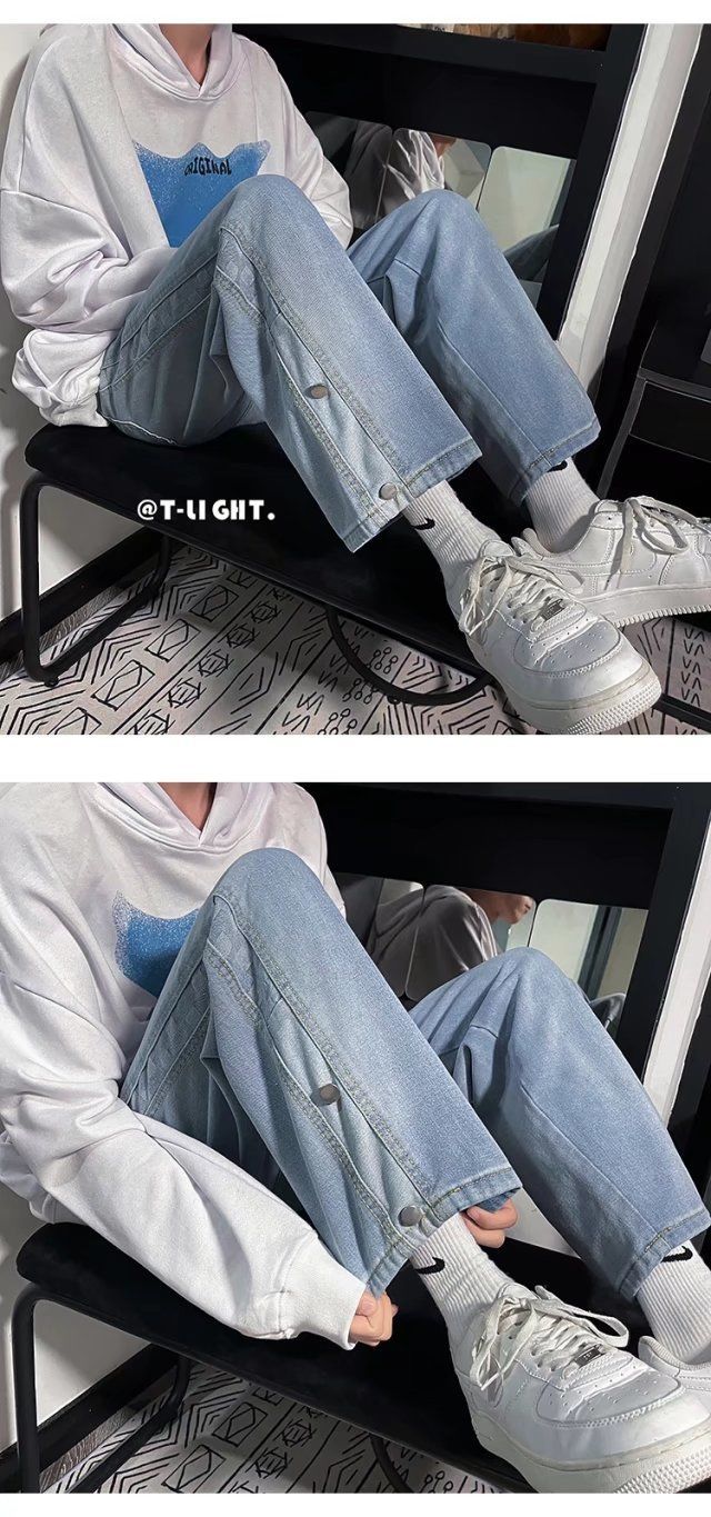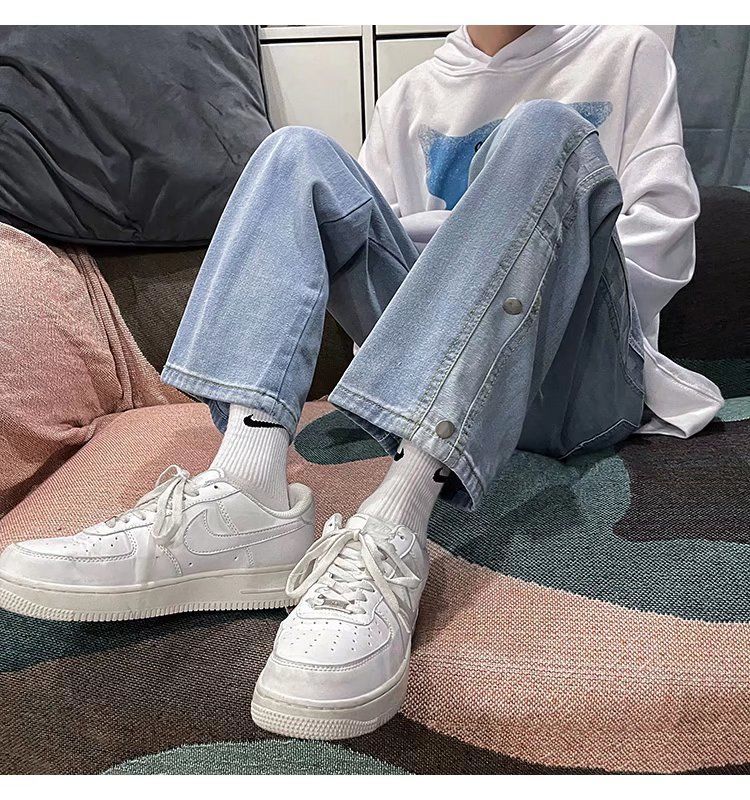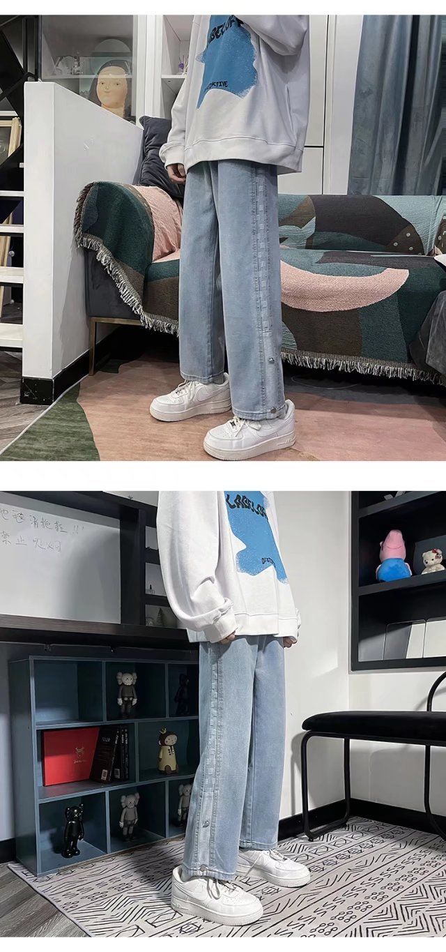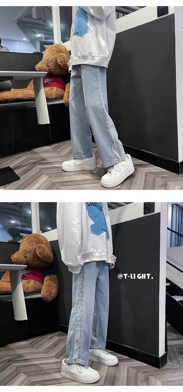 春秋季高街潮牌棋盘格牛仔裤男港风潮流宽松帅气学生阔腿裤