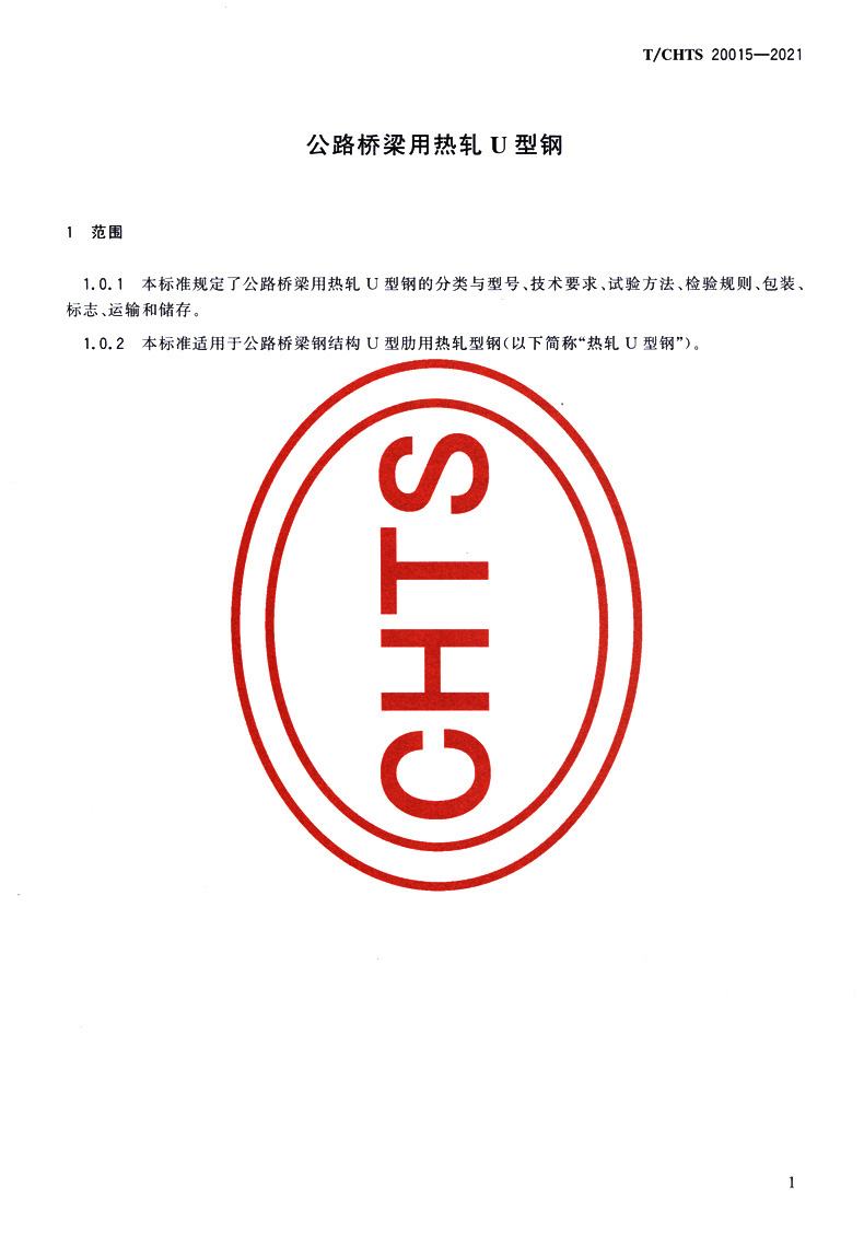 公路桥梁用热轧U型钢(T/CHTS 20015—2021)