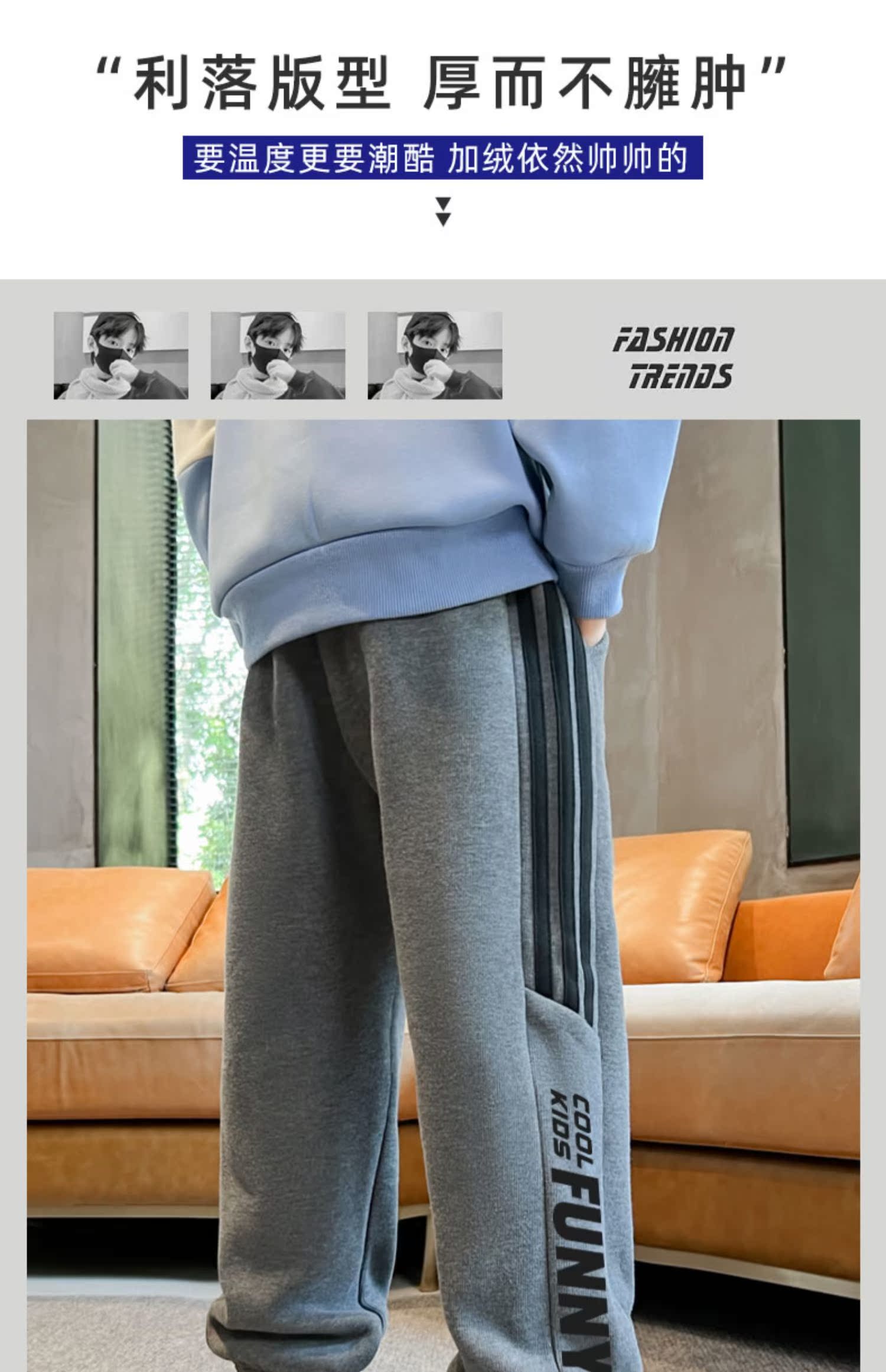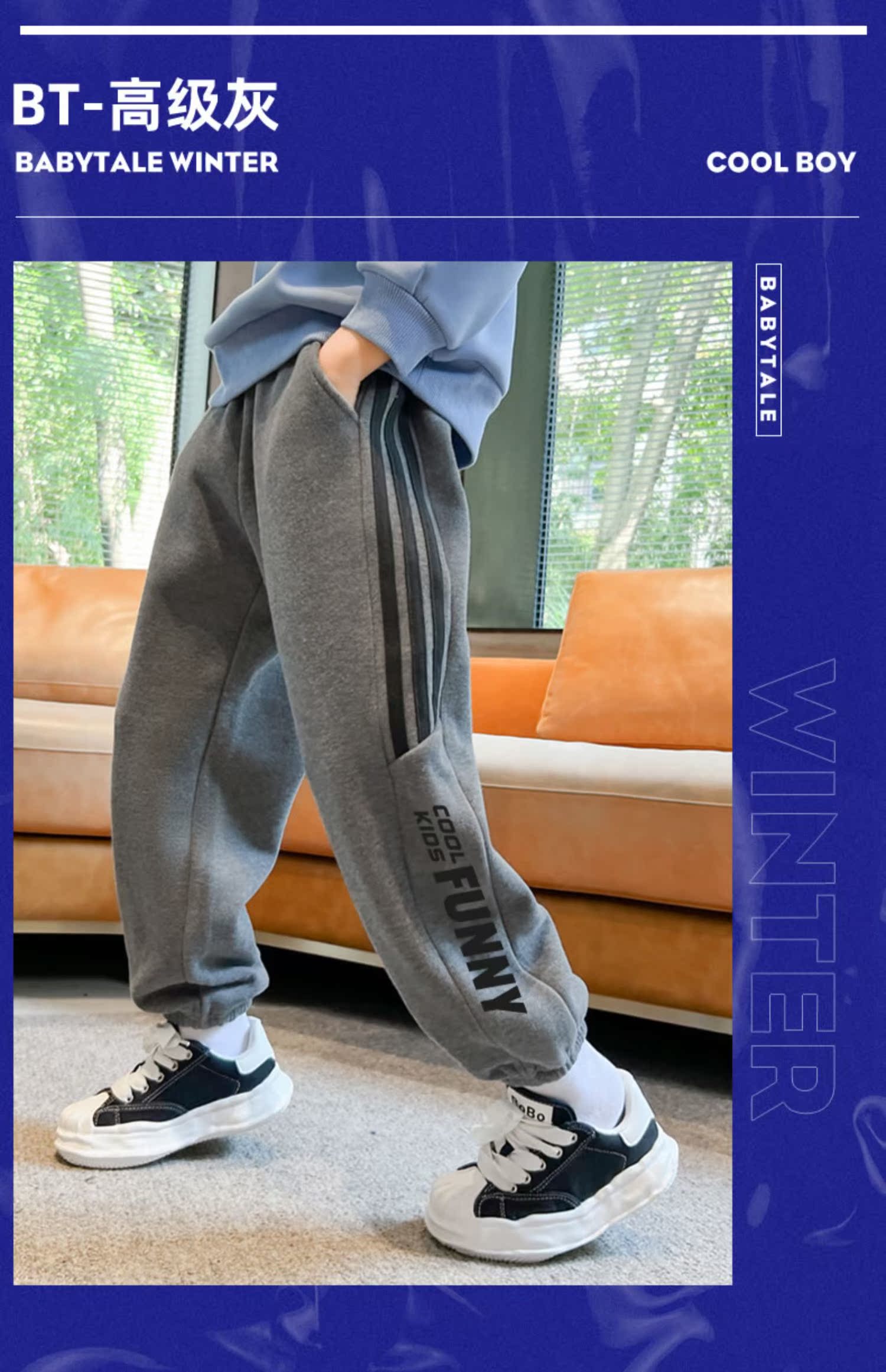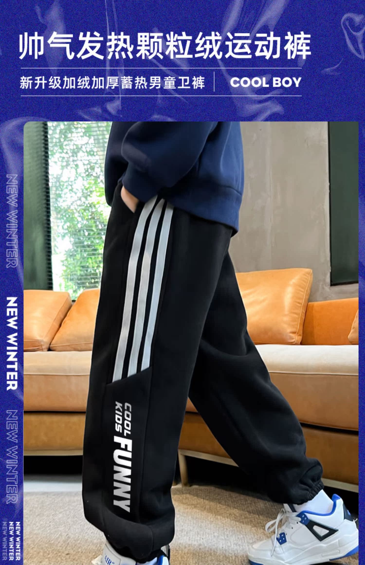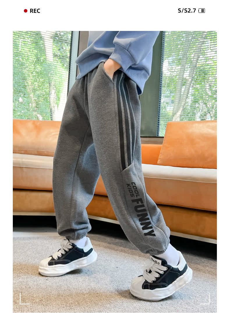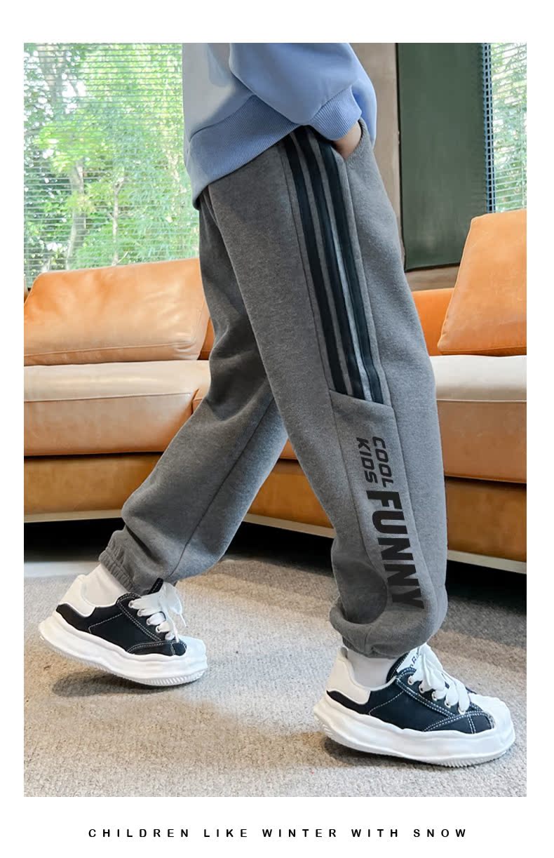 贝田男童裤子加绒加厚儿童运动裤秋冬款男孩冬季小脚外穿宽松卫裤
