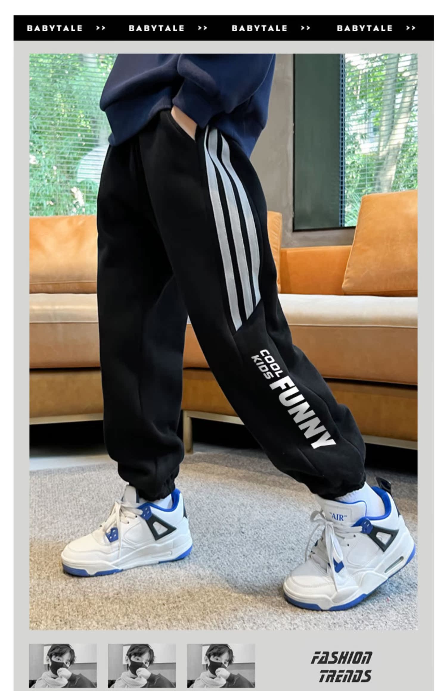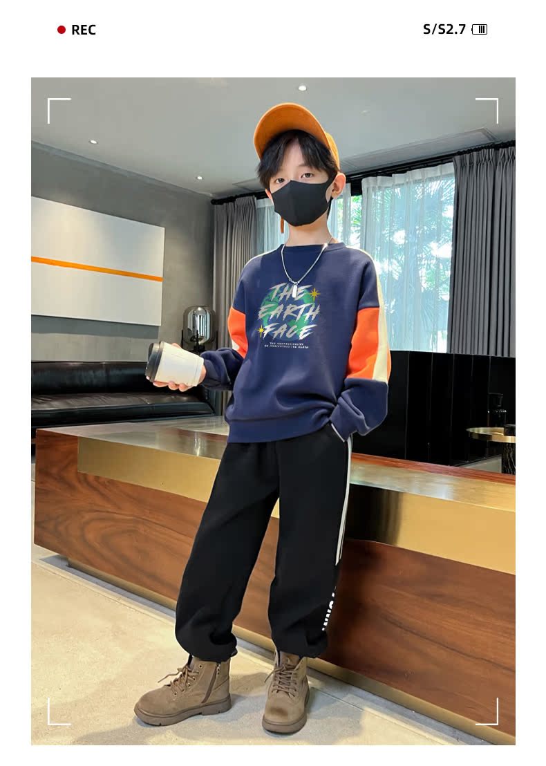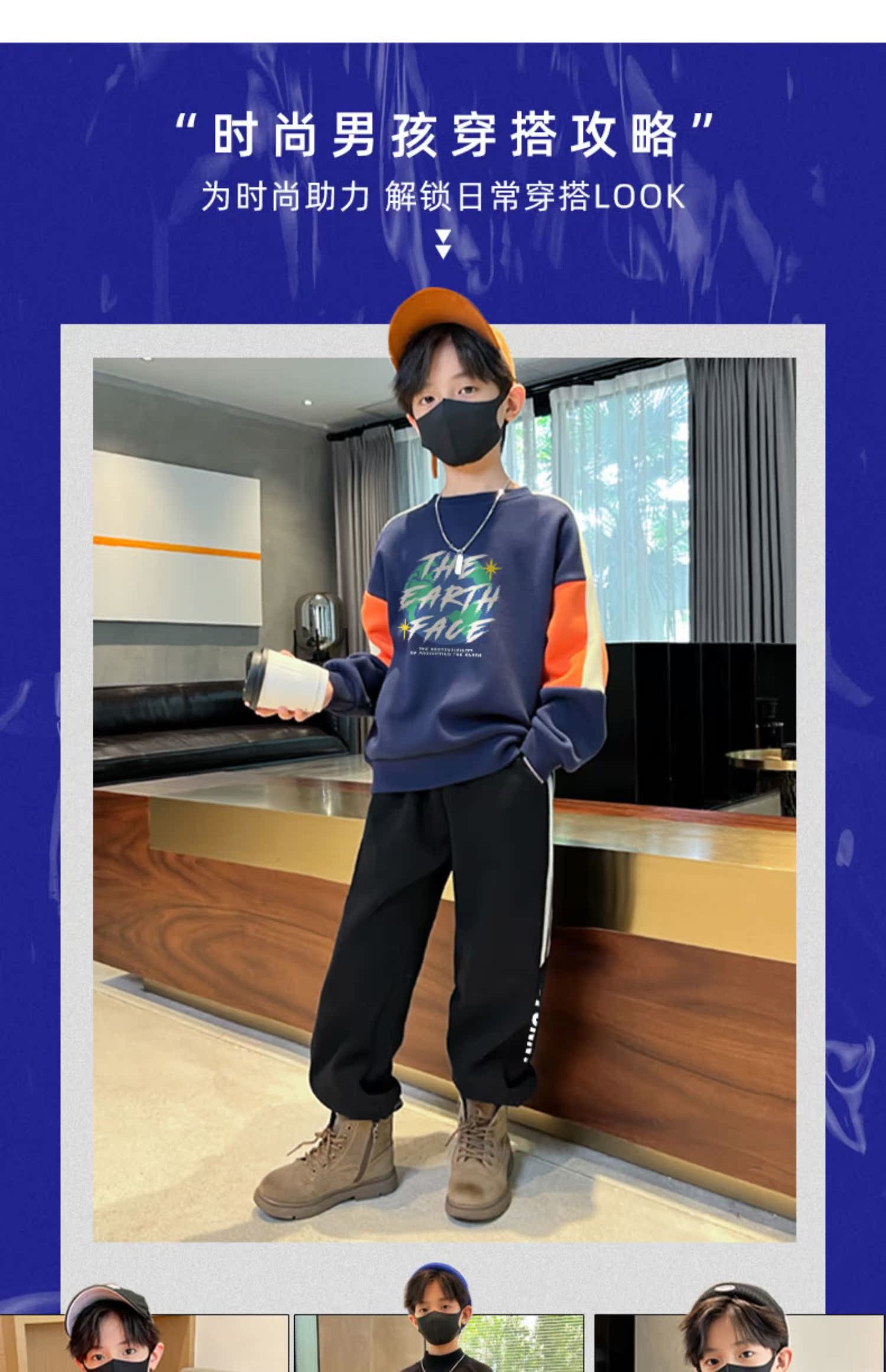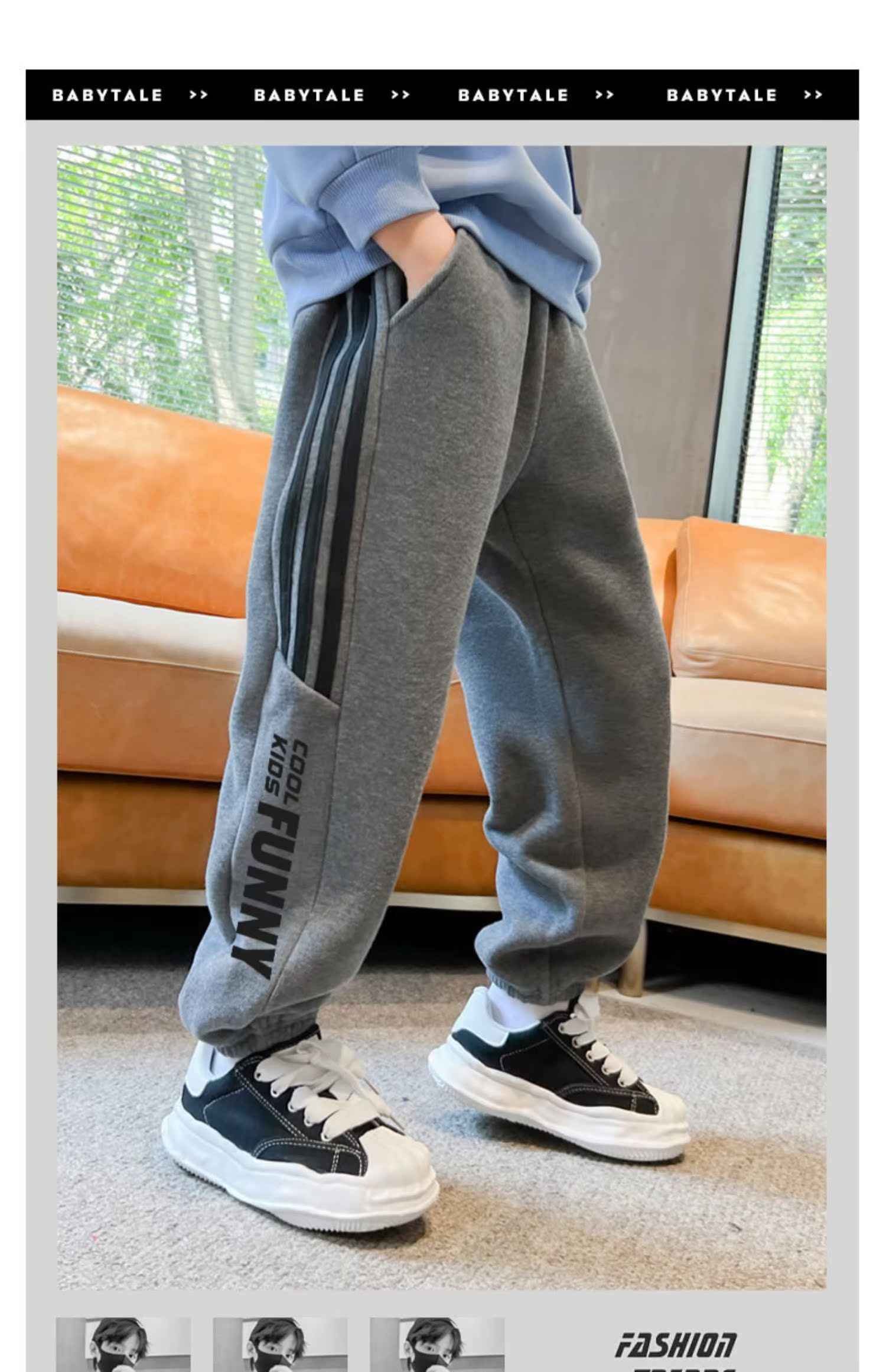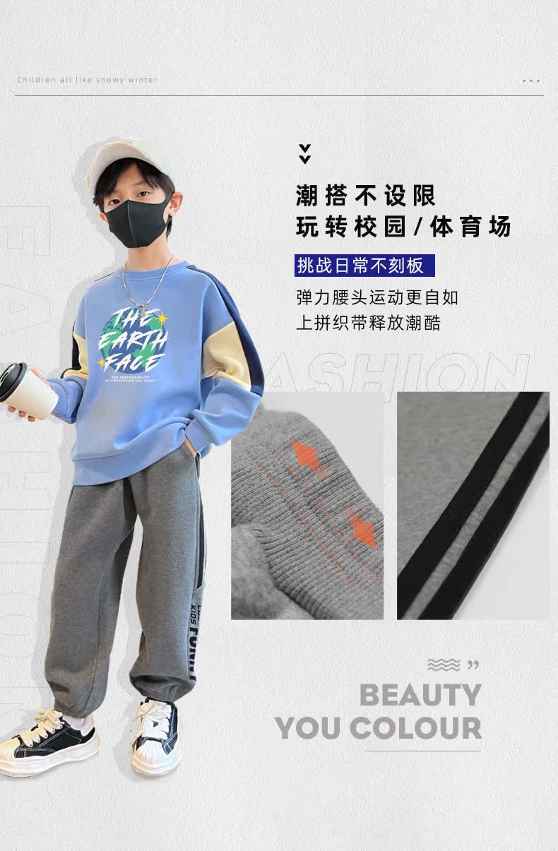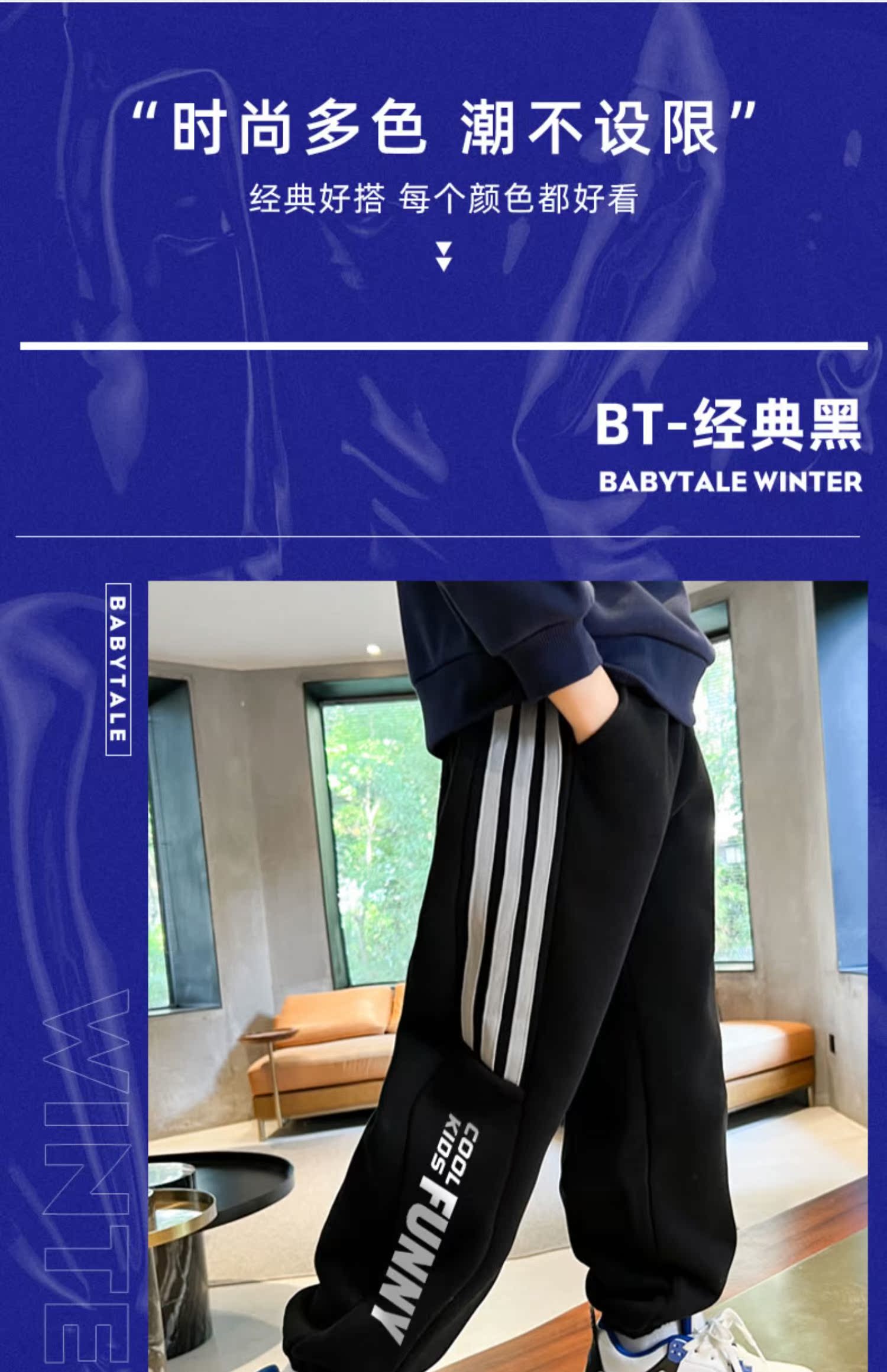 贝田男童裤子加绒加厚儿童运动裤秋冬款男孩冬季小脚外穿宽松卫裤