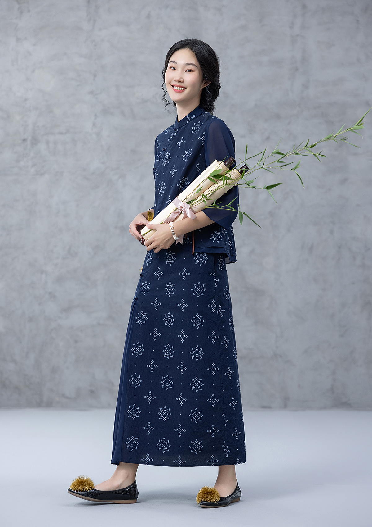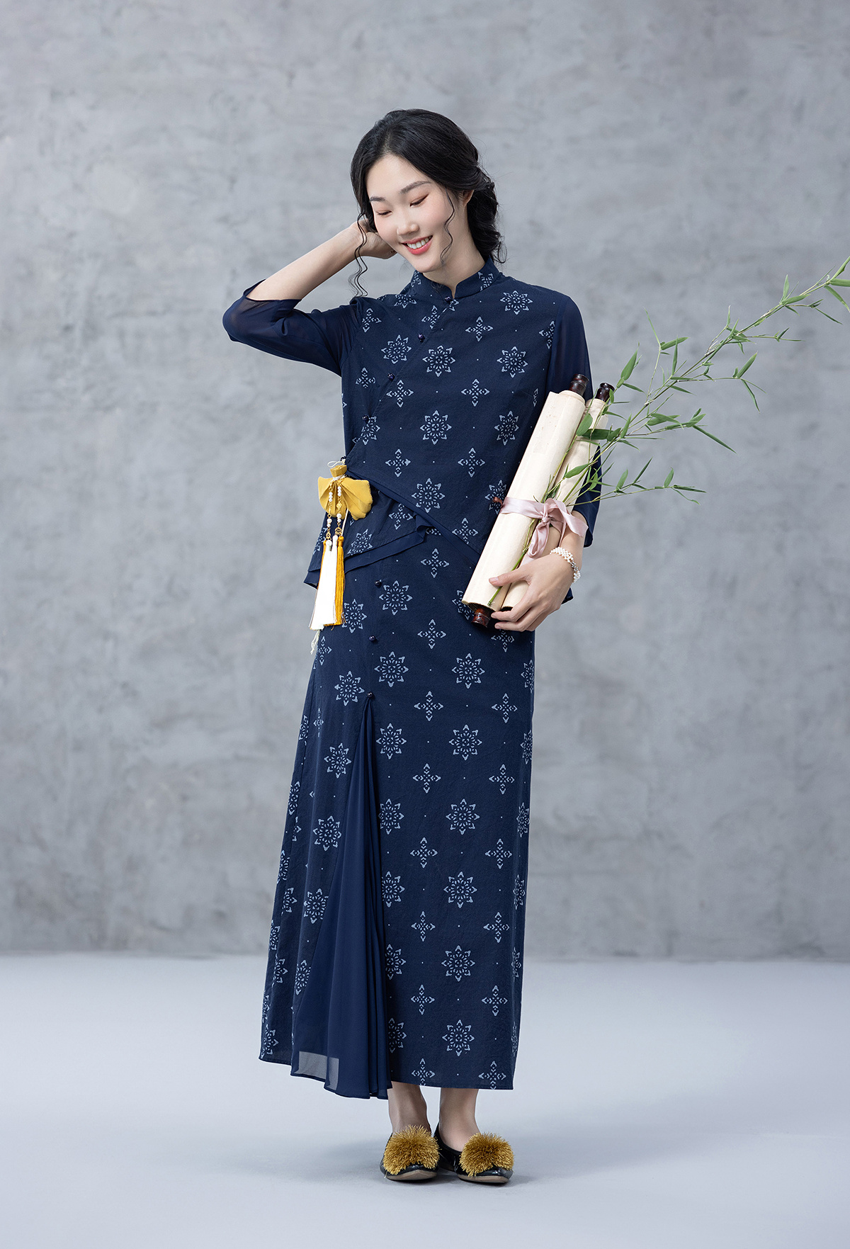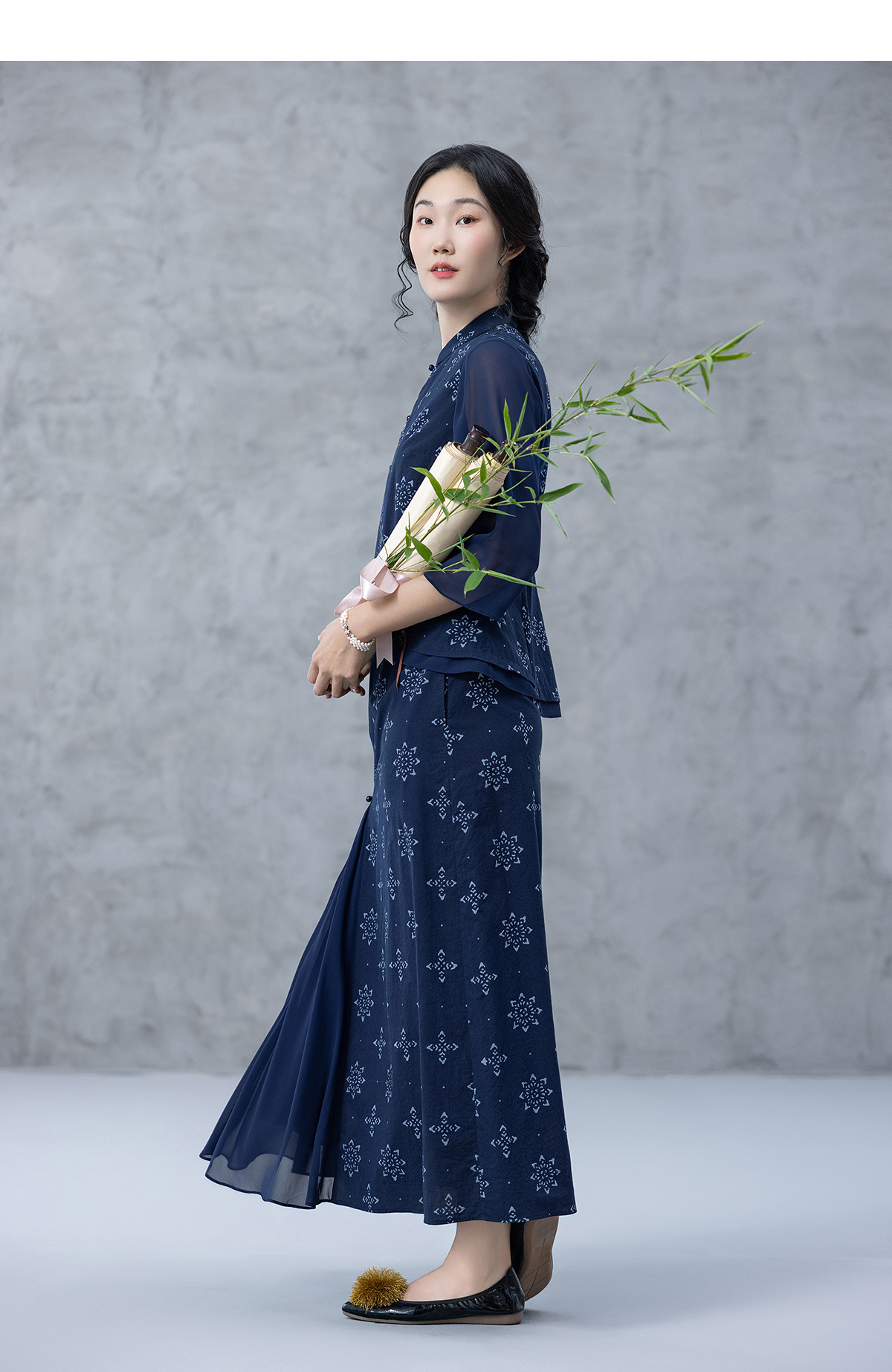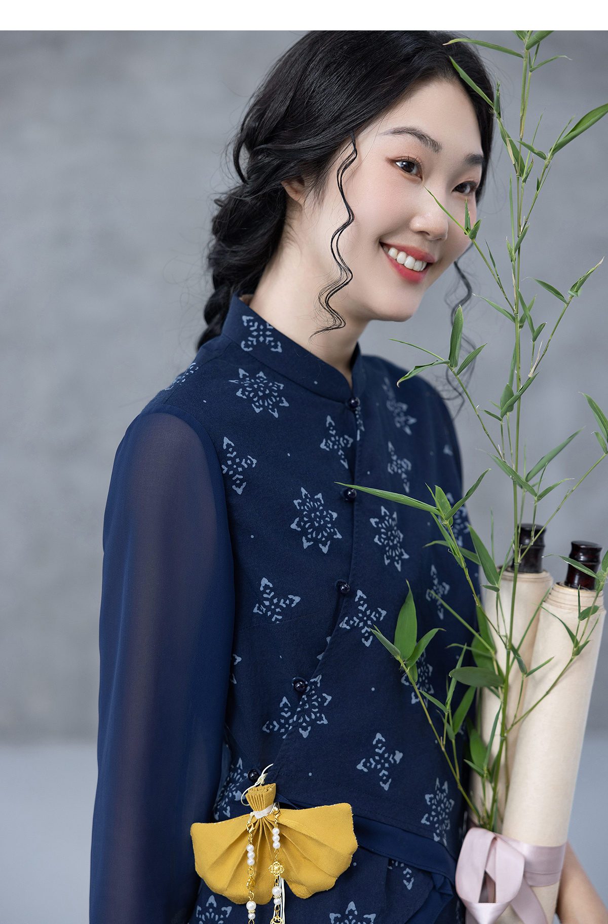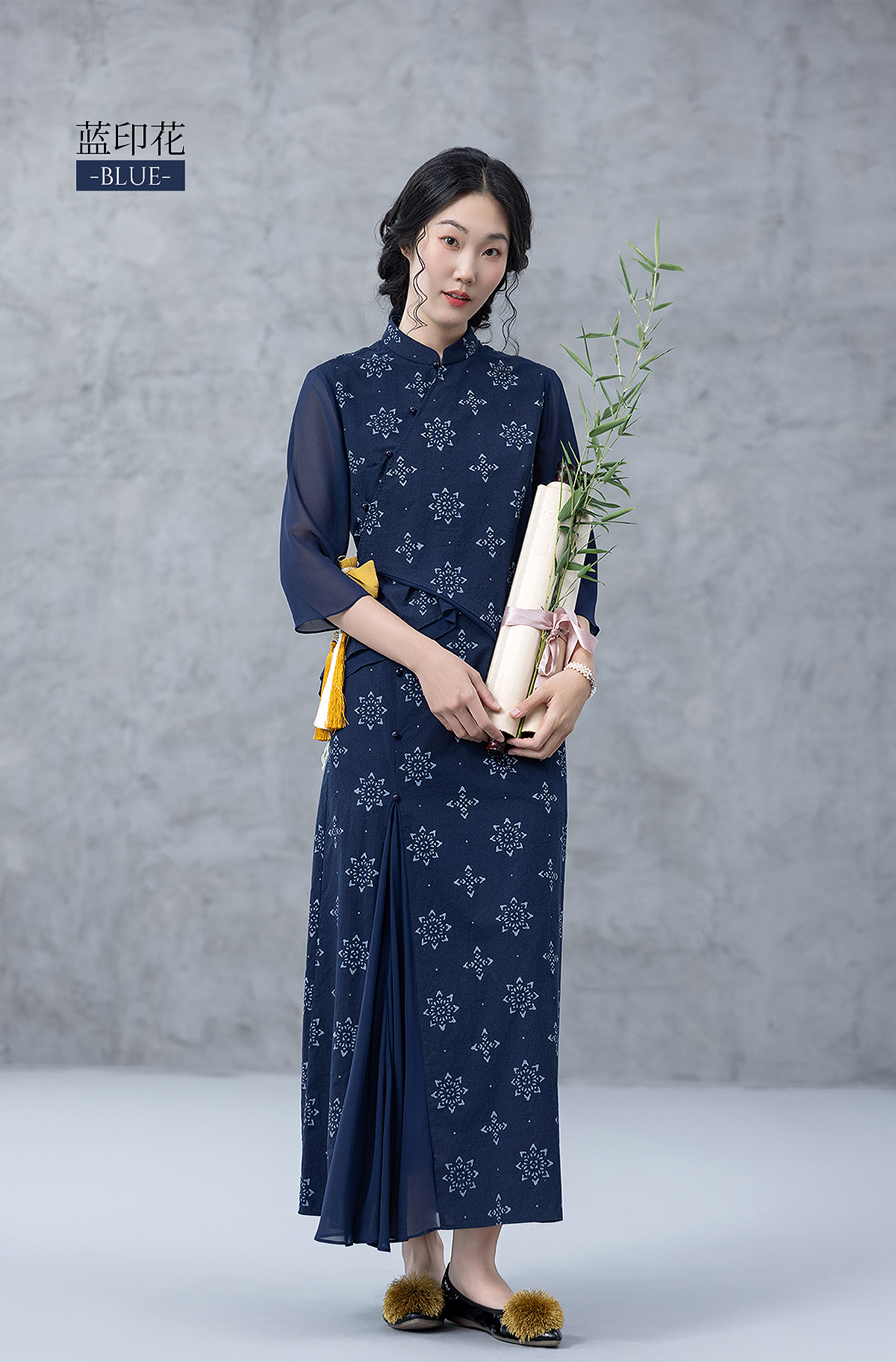 【林栖设计小店】2025夏府绸蓝印花布上衣传统新中式衬衣1952354