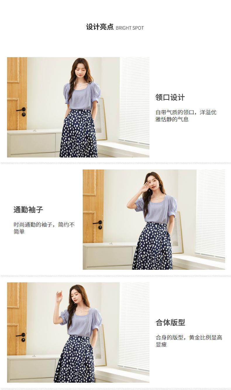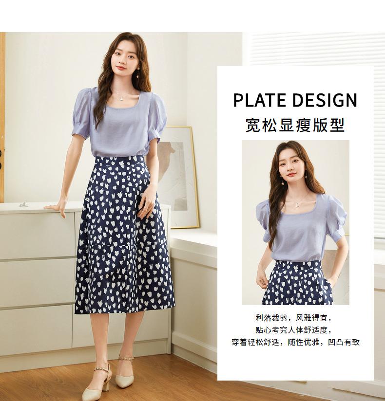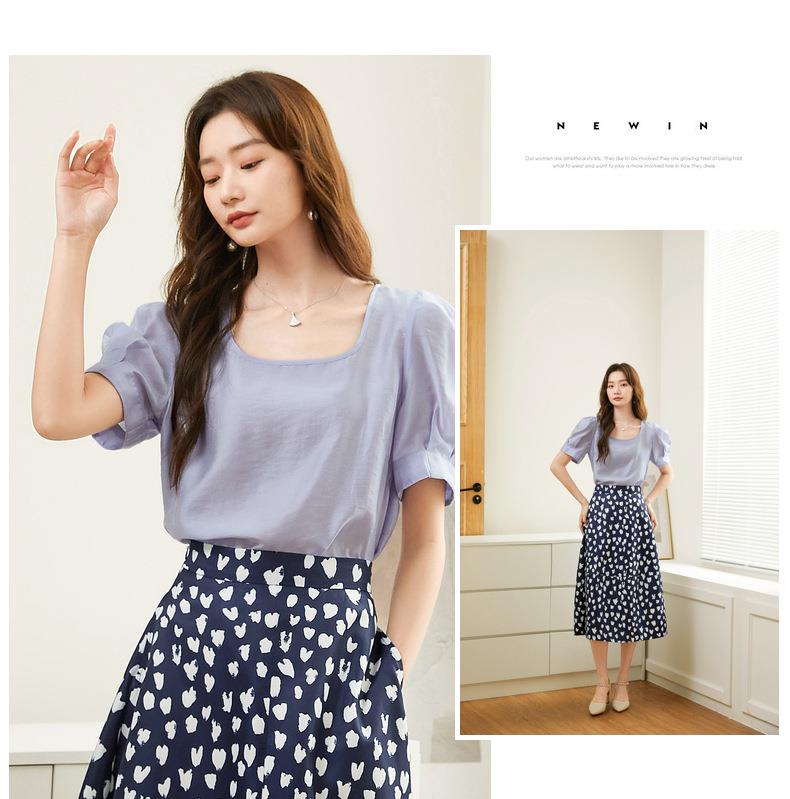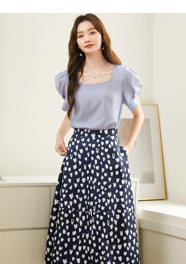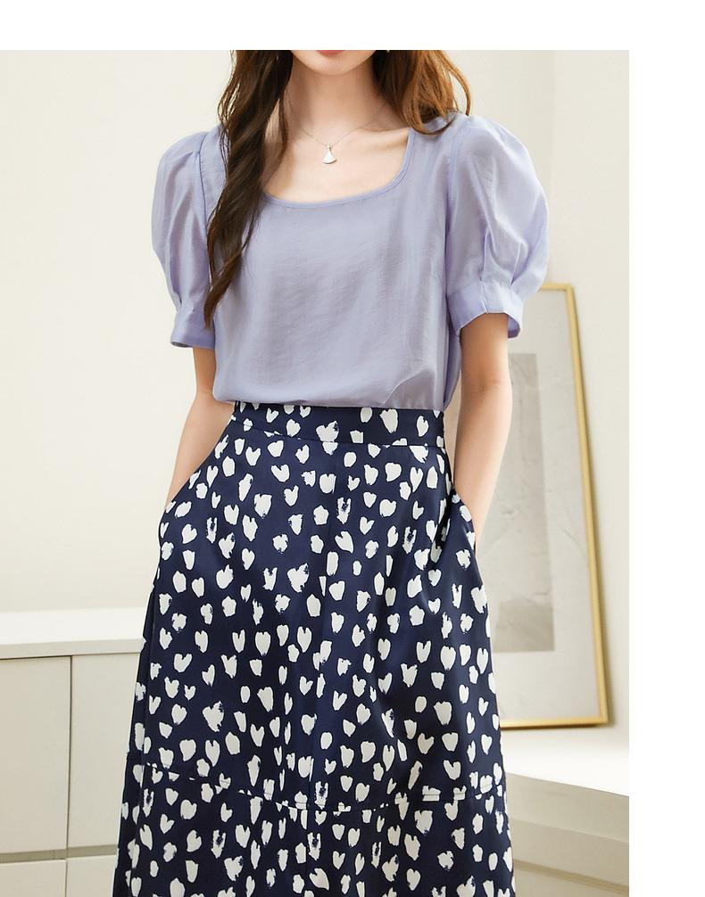 百姿 天丝U型领雪纺衫2023夏季新款泡泡袖轻薄防晒女士小衫223001