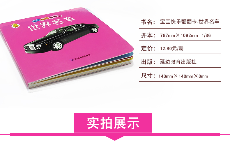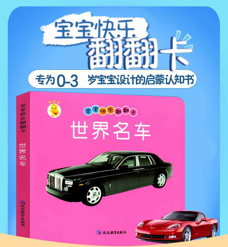 世界名车幼儿早教卡看图识物早教书婴儿宝宝书籍0-3岁撕不烂益智彩色识字卡片儿童图书绘本6-2-1周岁启蒙认知认字识图认物翻翻看