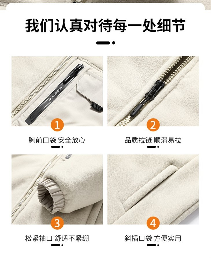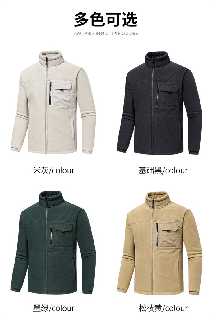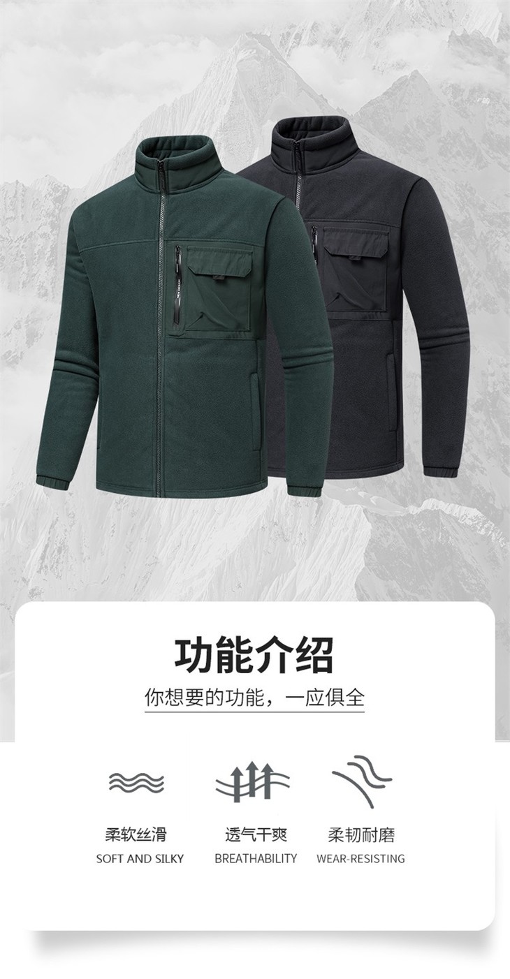 秋冬季摇粒绒卫衣 男士厚款运动休闲立领抓绒外套加大码