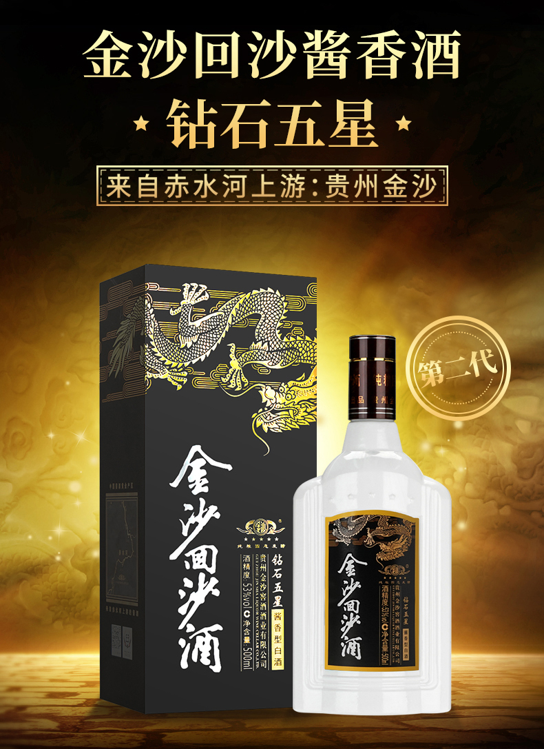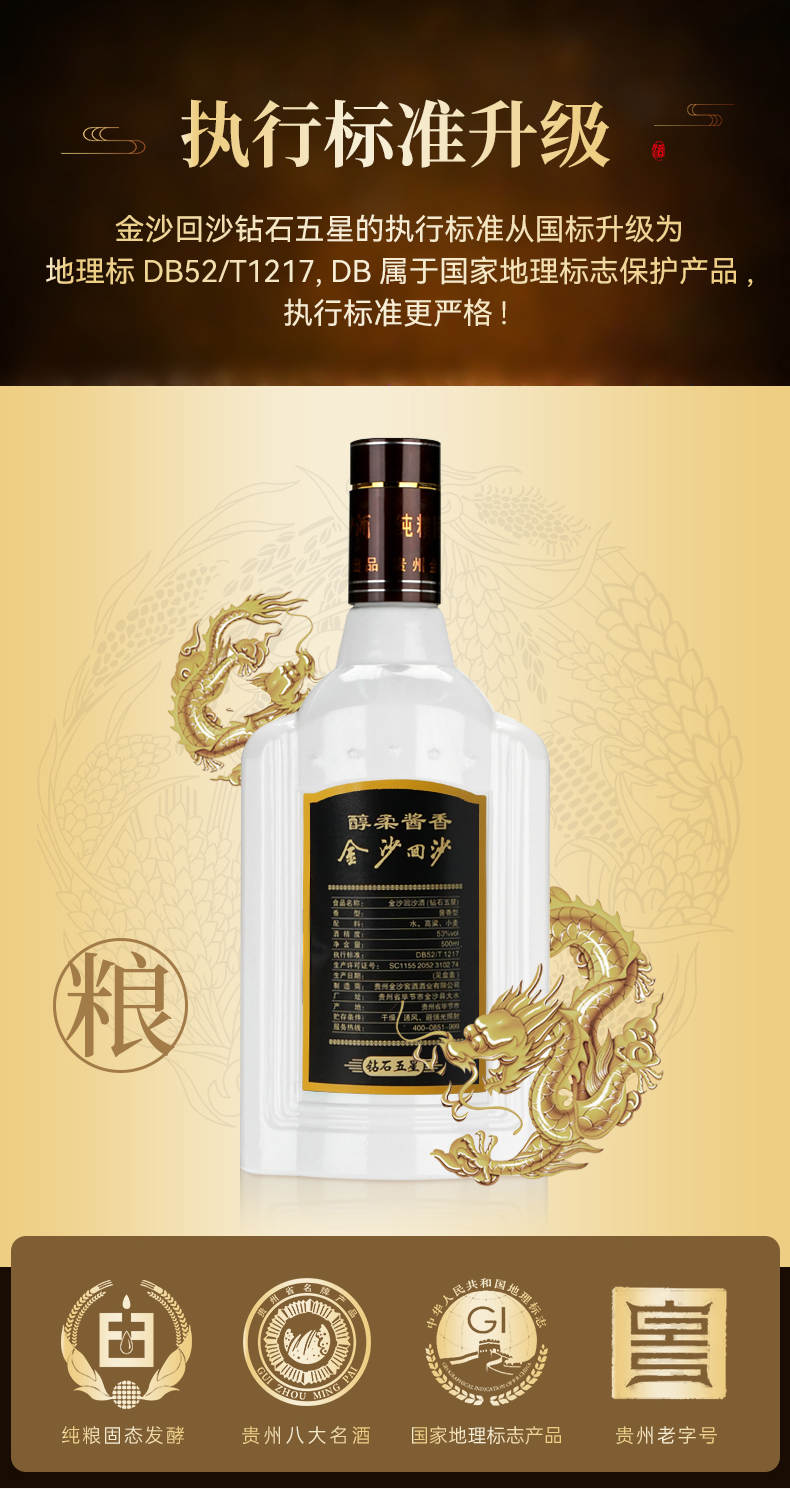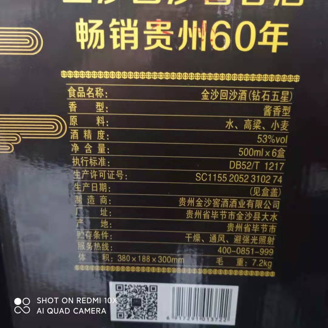 贵州金沙回沙钻石五星500ml*6瓶 酱香型53度礼盒装白酒整箱