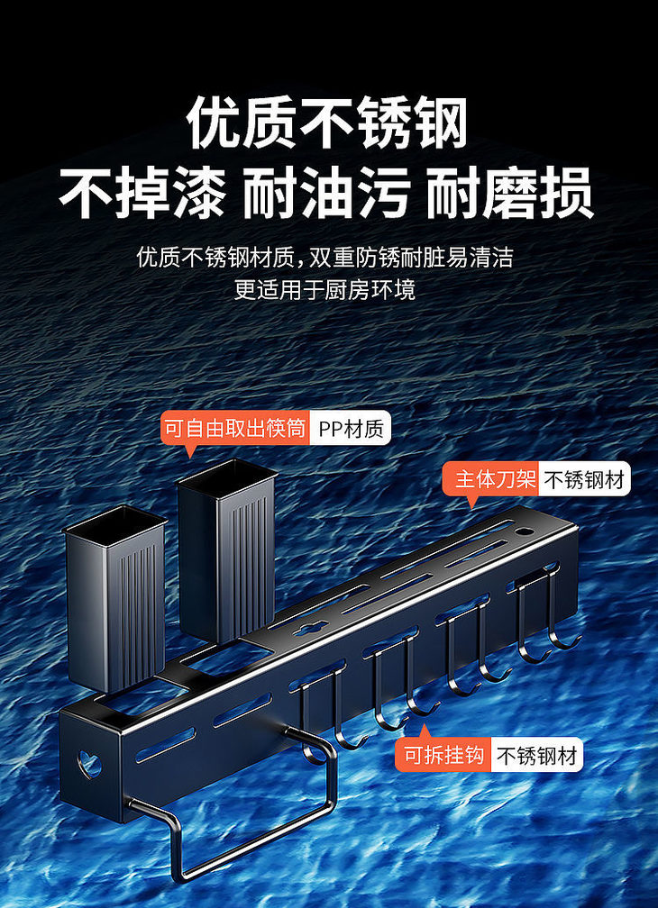 一张魅力红酒卡+【多功能刀架】免打孔安装 不锈钢刀架 厨房用品筷子收纳整理置物锅盖架壁挂式-CG