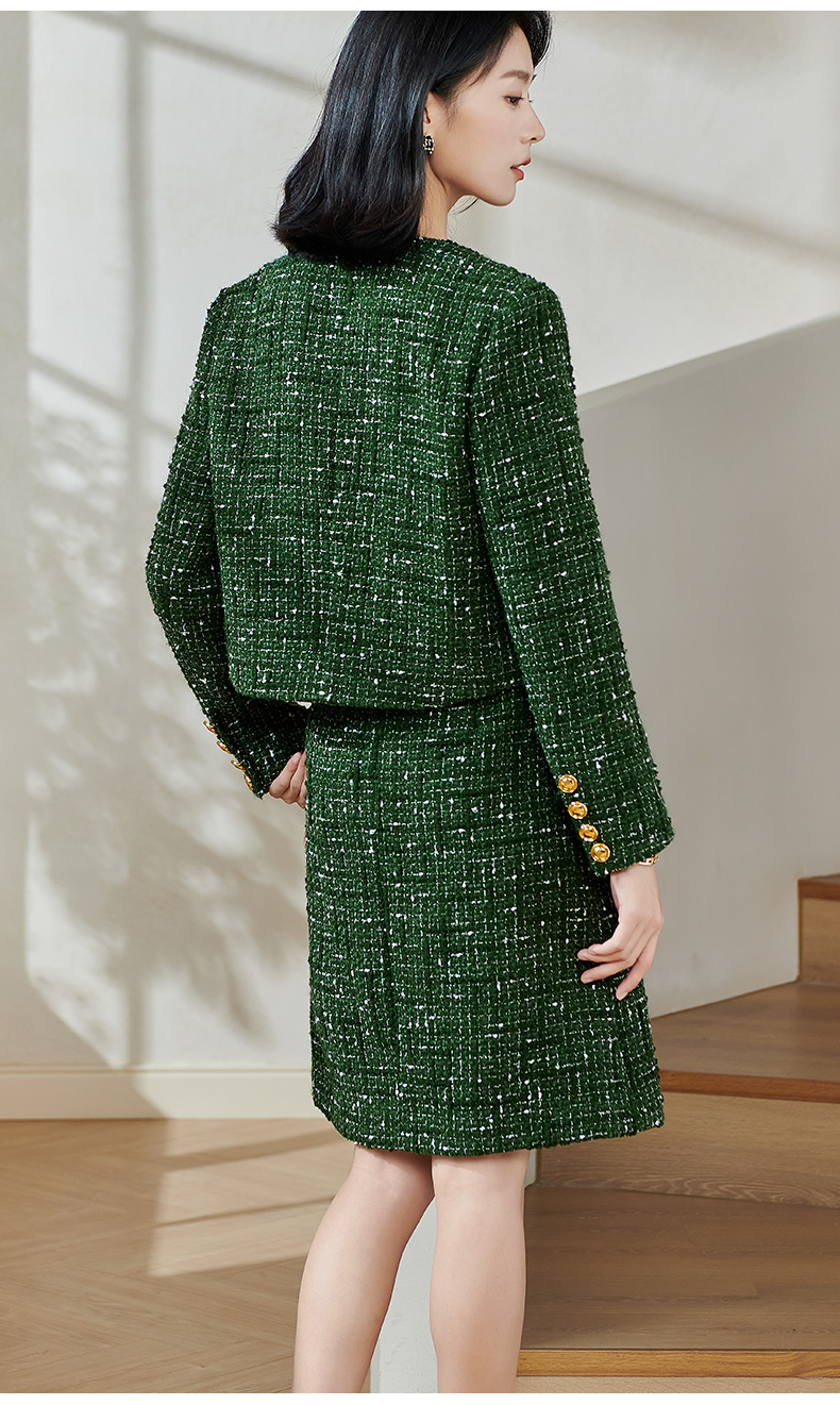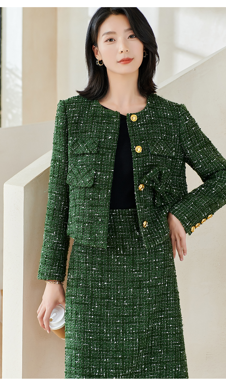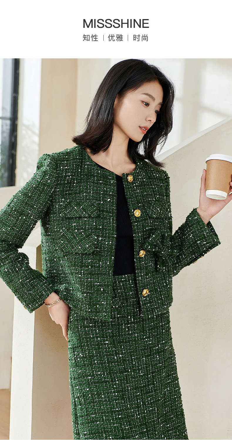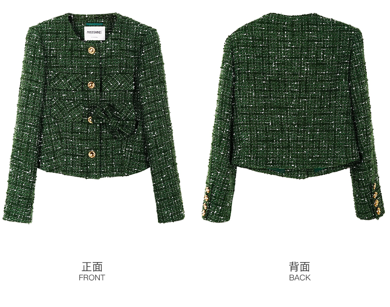 剩XL/XXL 米思阳2026春季新款轻奢小香风粗花呢短外套格纹亮丝修身上衣0061