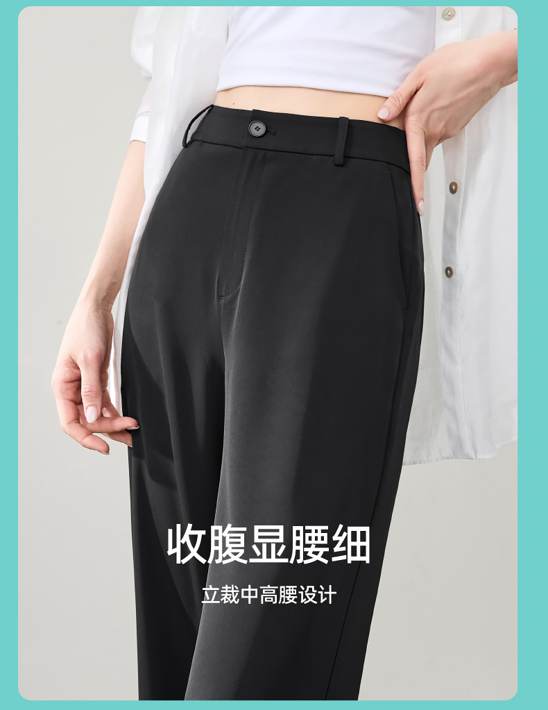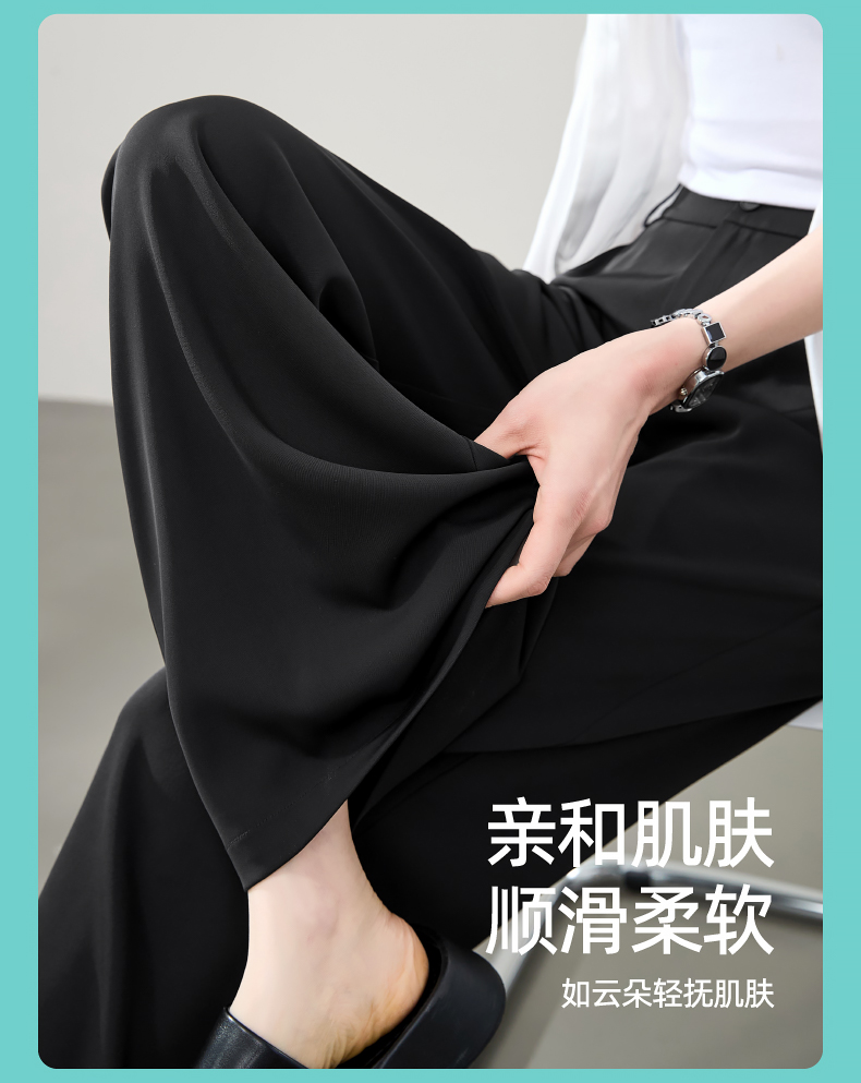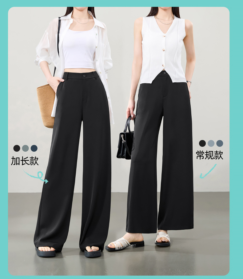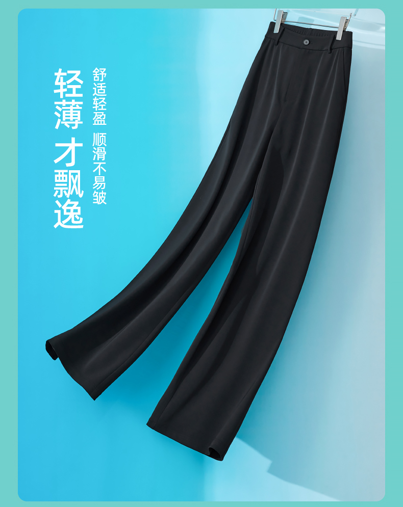 【两种裤长-丝滑垂坠阔腿】逸阳夏薄高腰垂感冰丝慵懒感休闲西装裤子7588