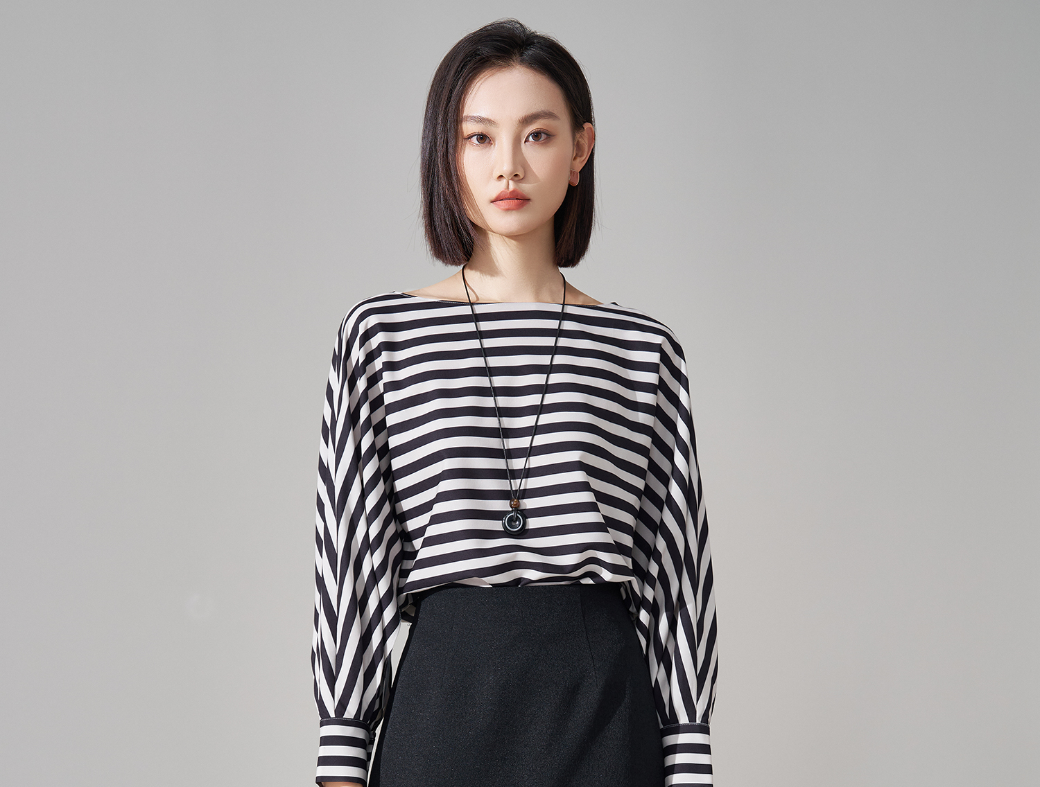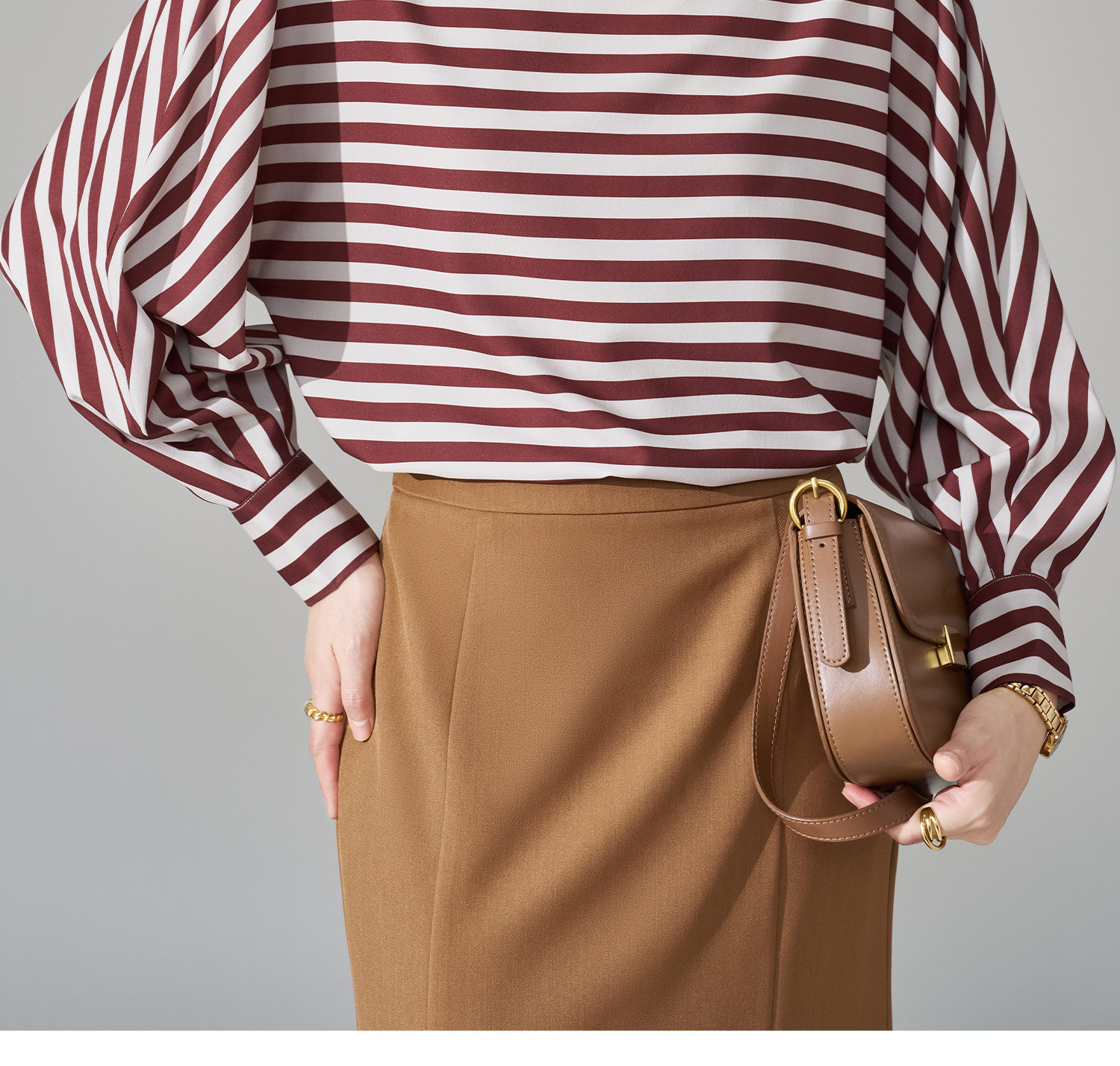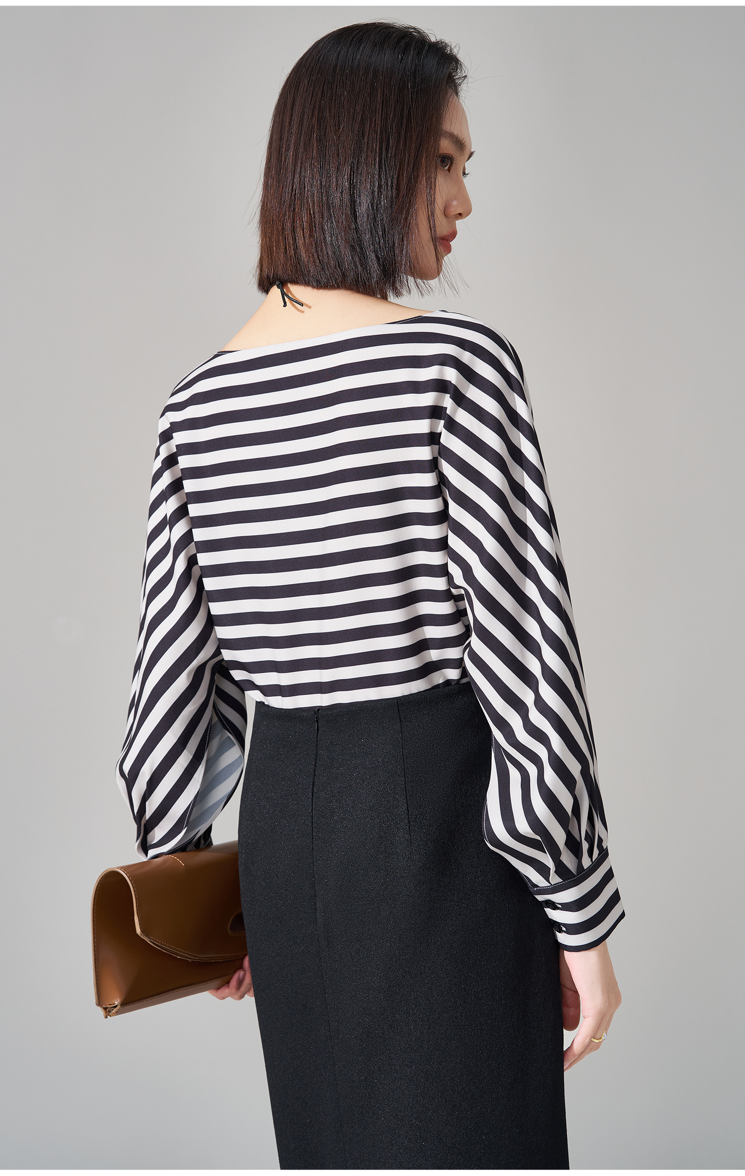 职场松弛感神器!一字领条纹小衫蝙蝠袖藏住拜拜肉,撞色复古显气色,上班穿得体又舒服 米思阳2026春季新款气质通勤撞色条纹衬衫显瘦一字领独特小衫1729