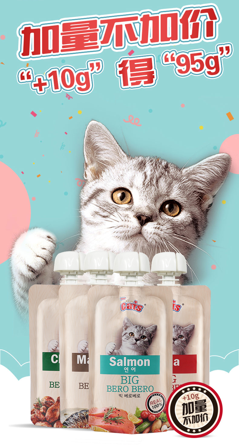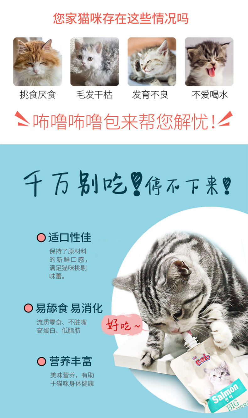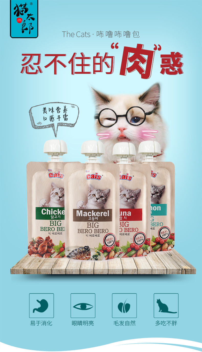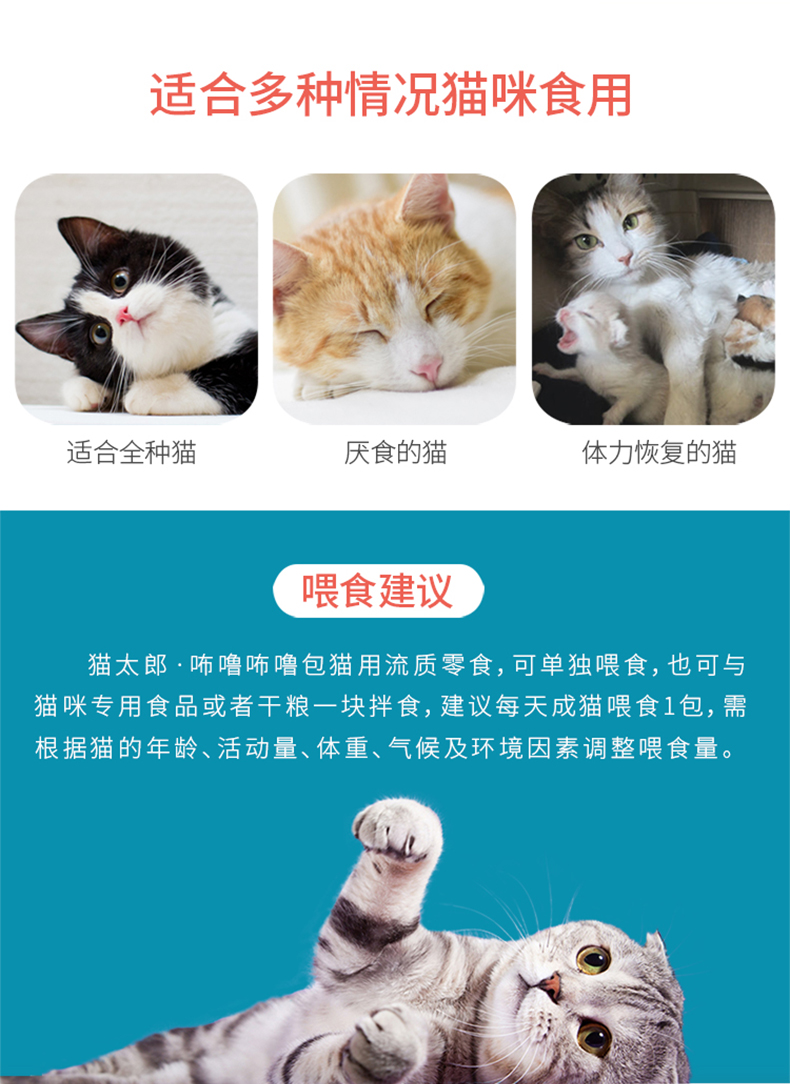 猫太郎CATTARO猫条零食咘噜肉泥包 猫咪流质零食 幼猫成猫 挑嘴湿粮包猫条 膏状猫酱罐头95g*4 四种口味