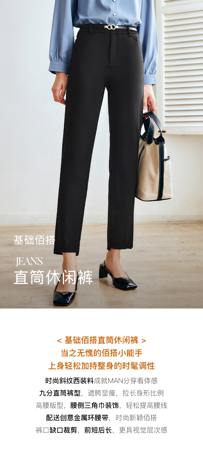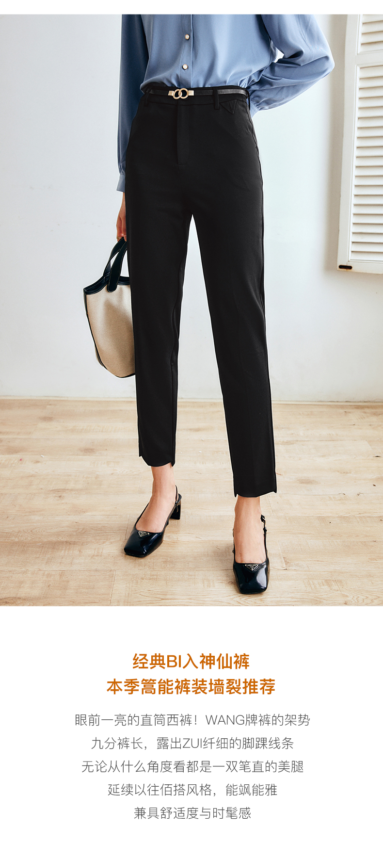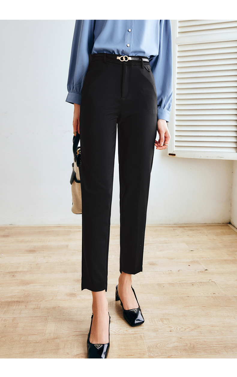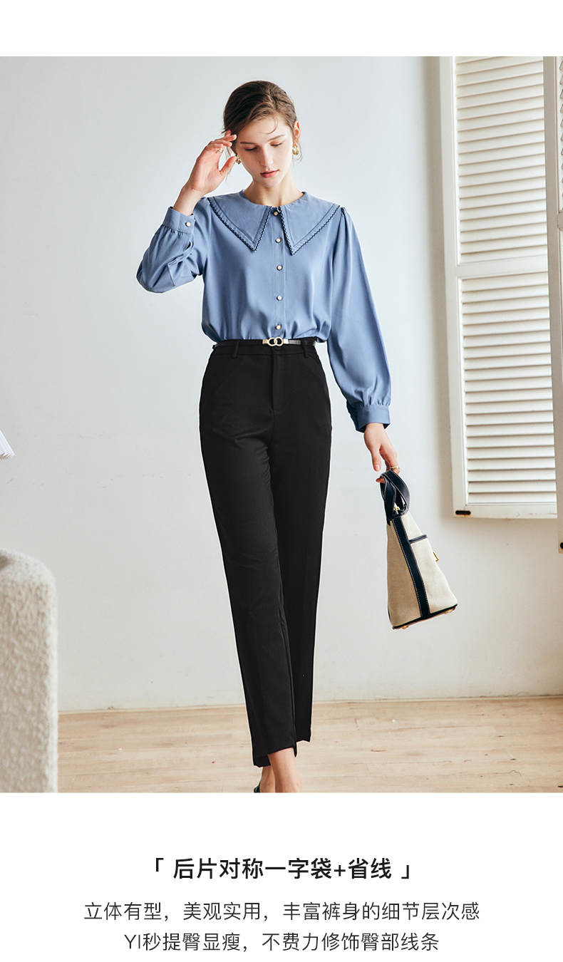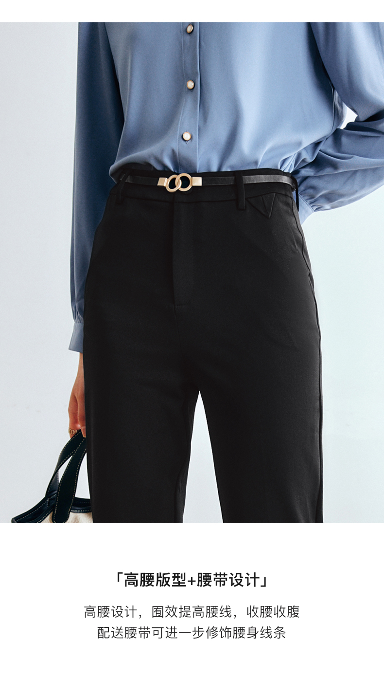 OLrain法式黑色休闲裤女早秋2022年新款显瘦西装阔腿裤九分直筒裤(不配送腰带)