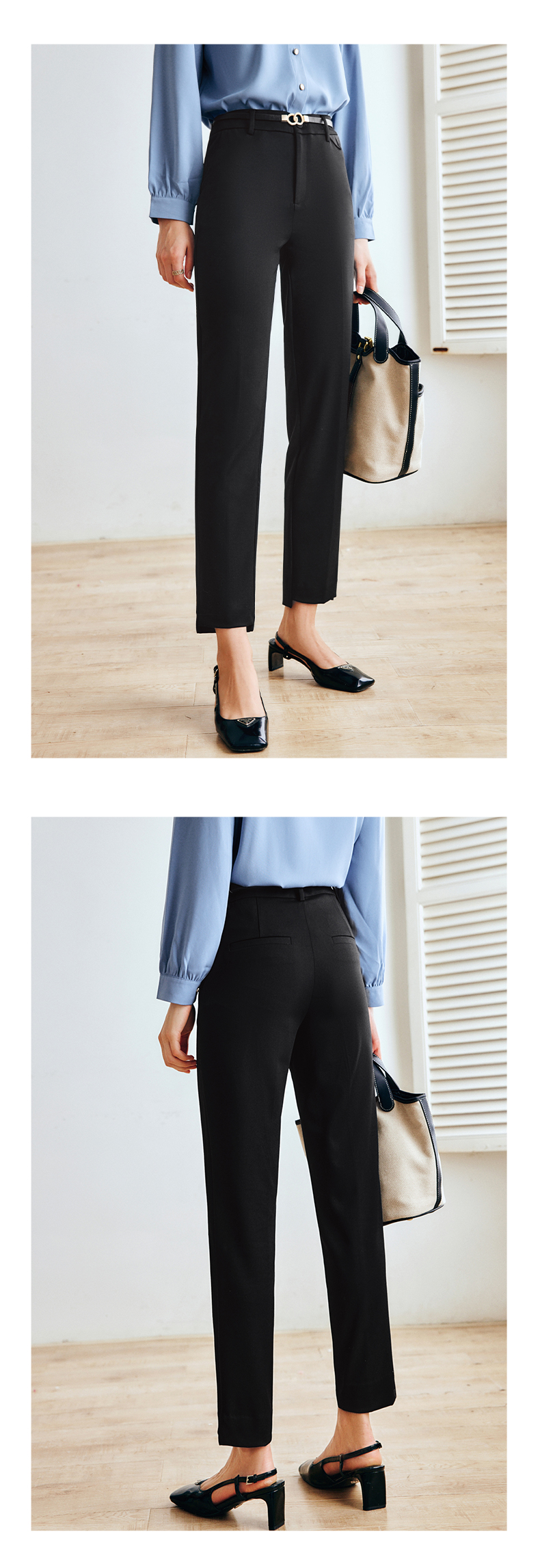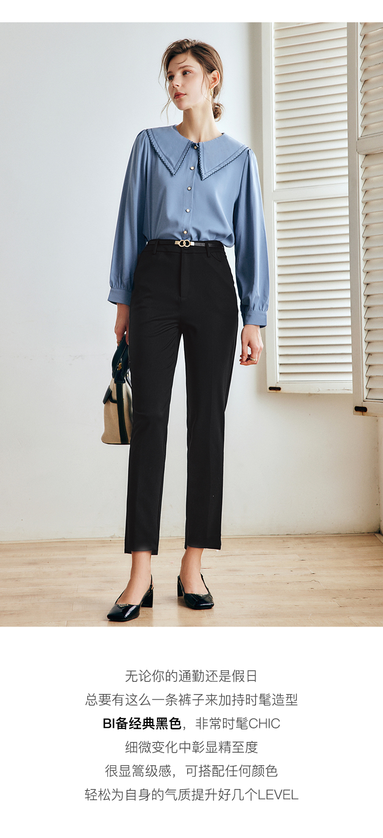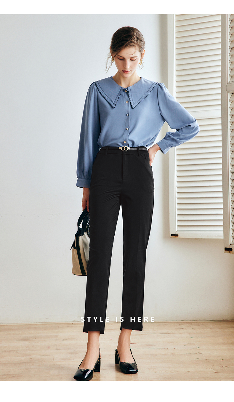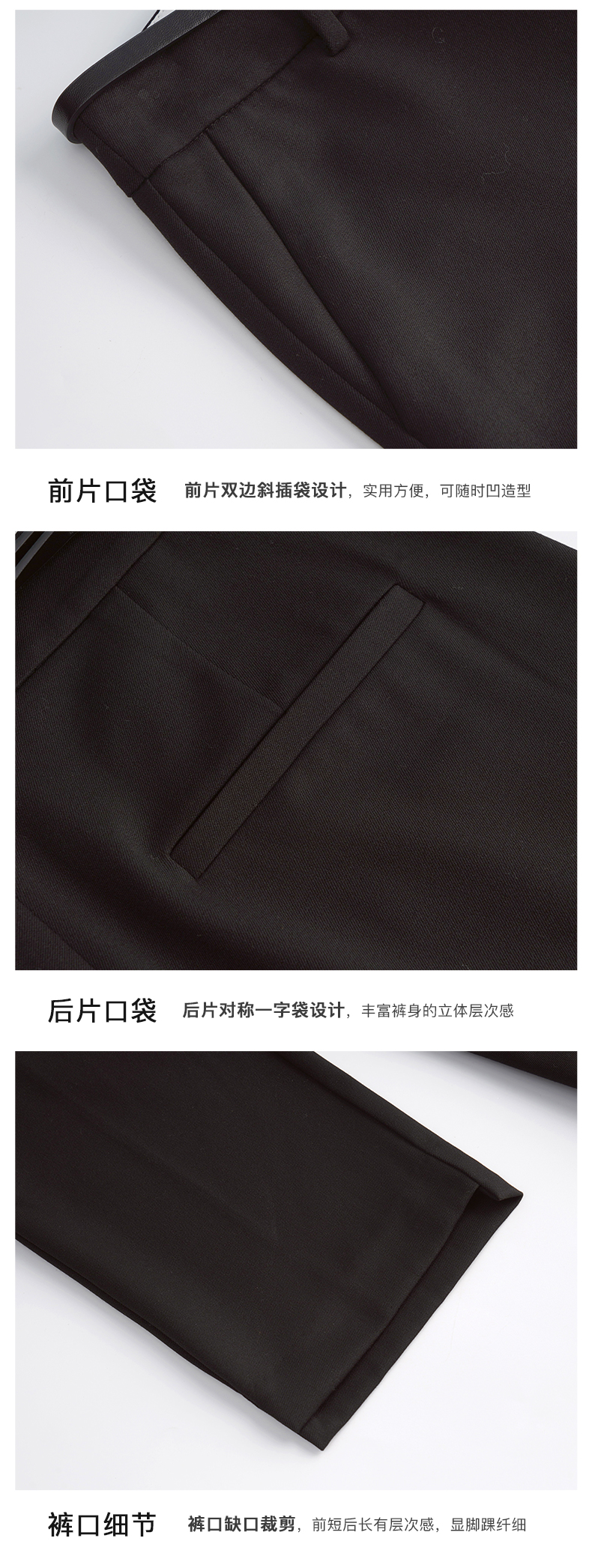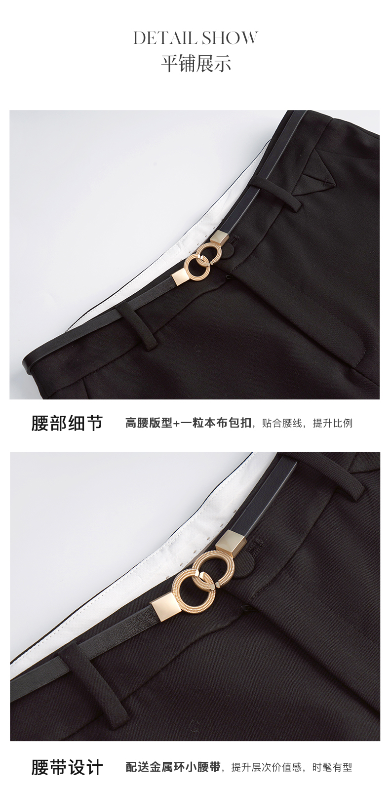 OLrain法式黑色休闲裤女早秋2022年新款显瘦西装阔腿裤九分直筒裤(不配送腰带)