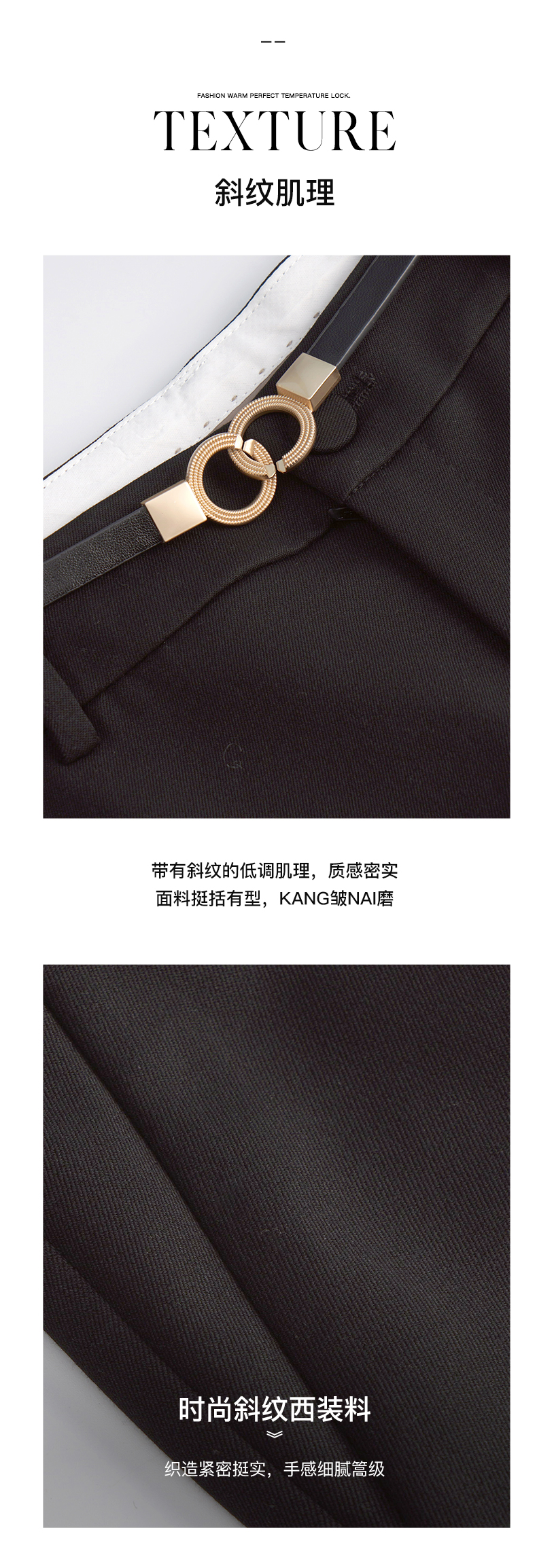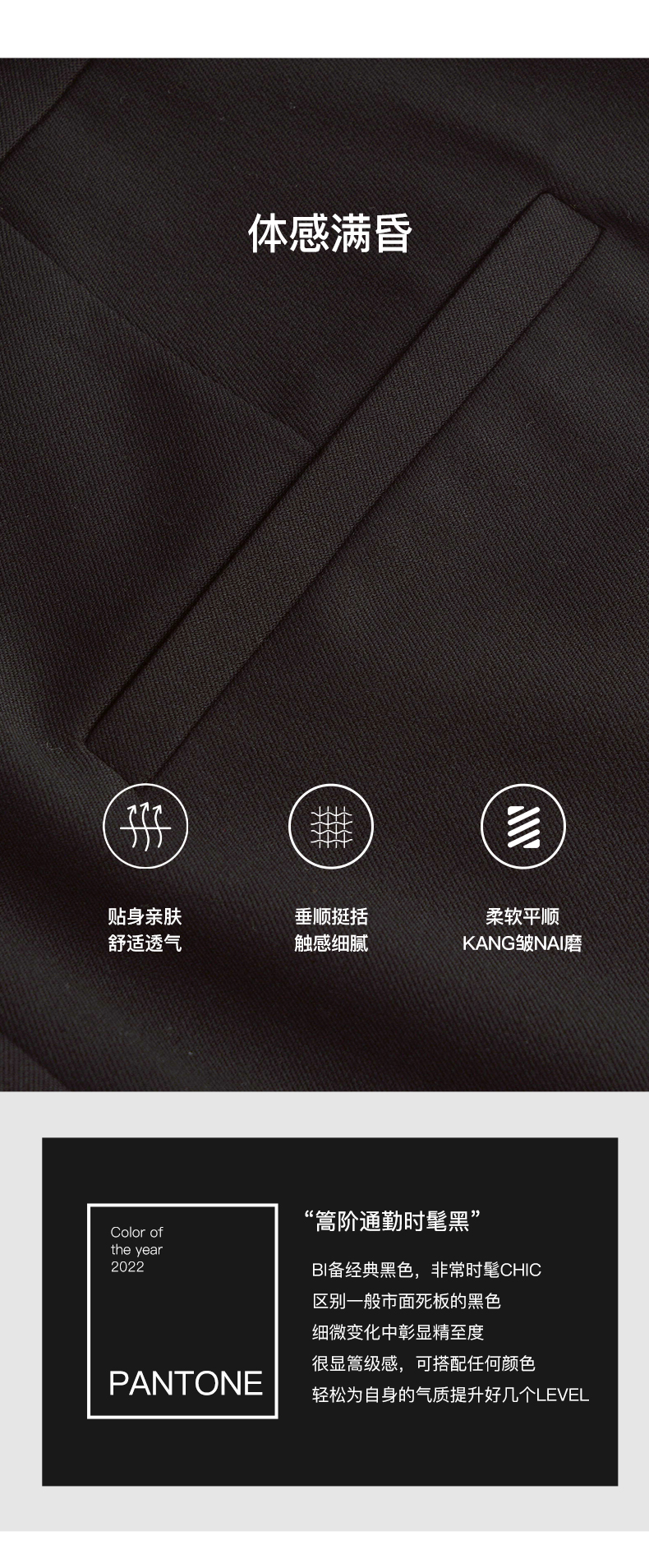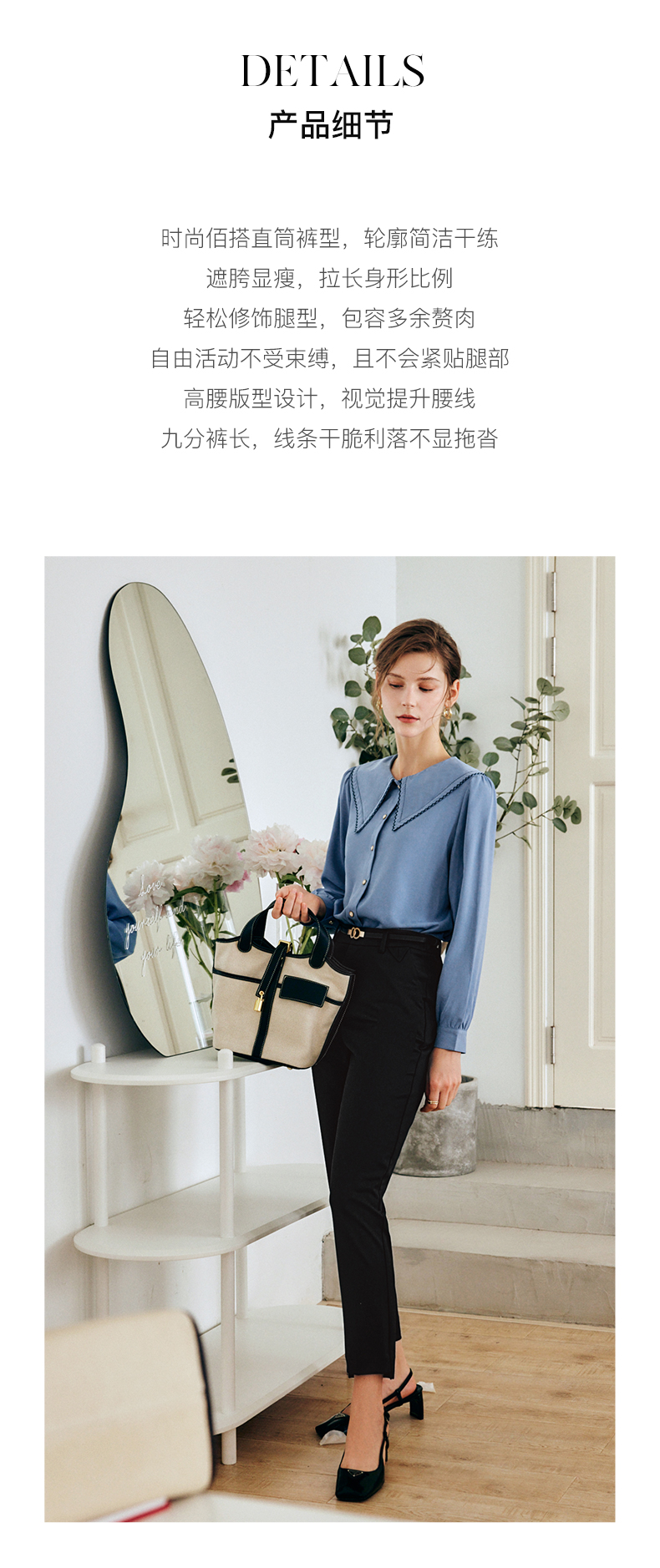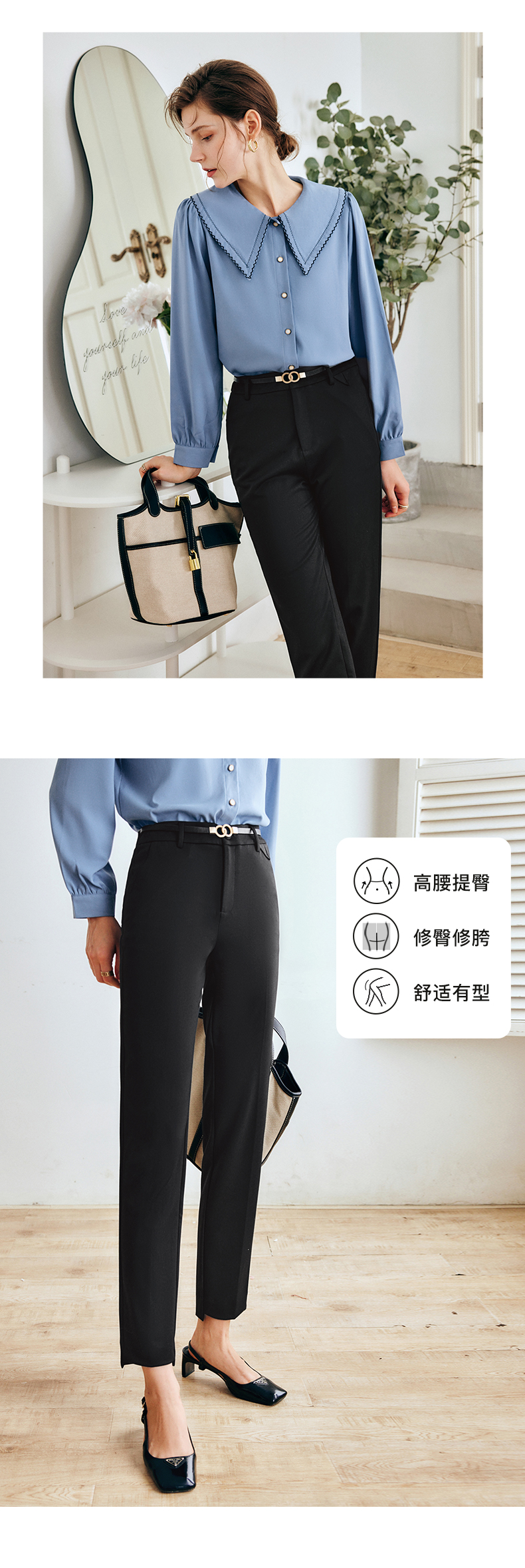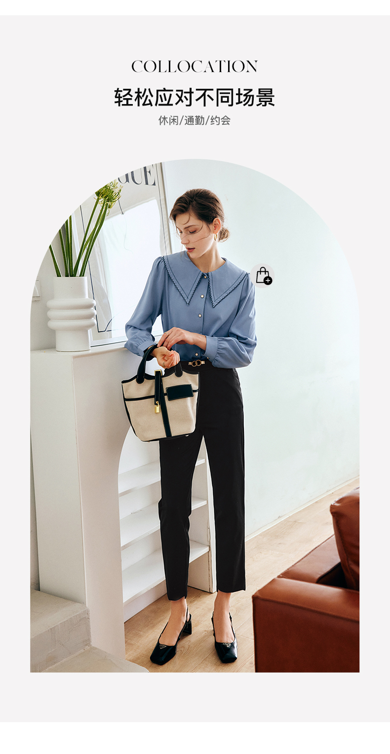 OLrain法式黑色休闲裤女早秋2022年新款显瘦西装阔腿裤九分直筒裤(不配送腰带)
