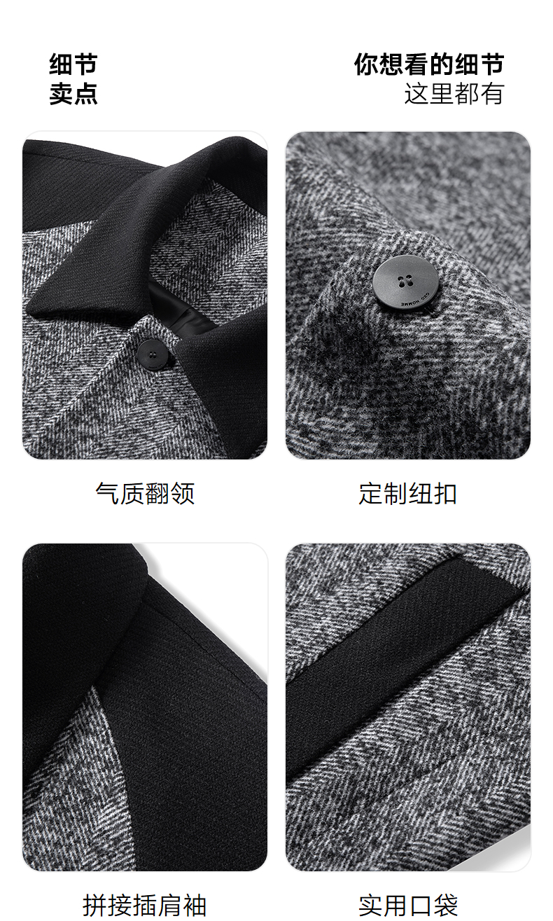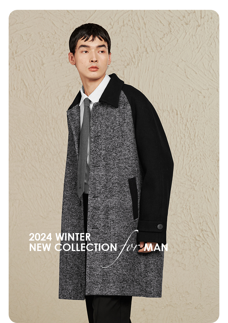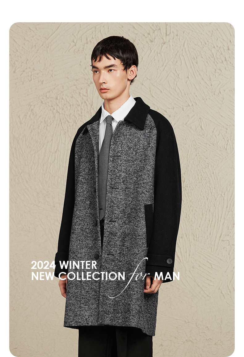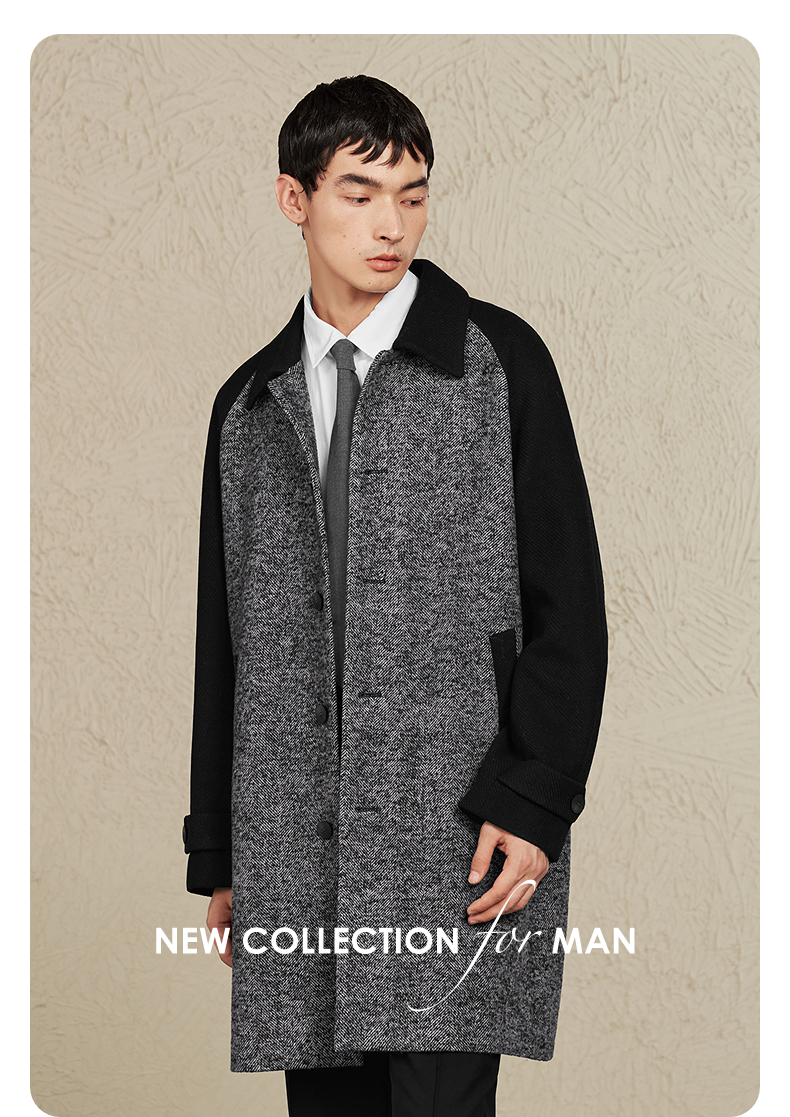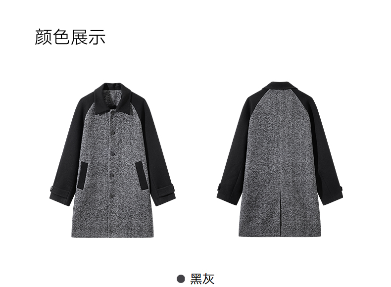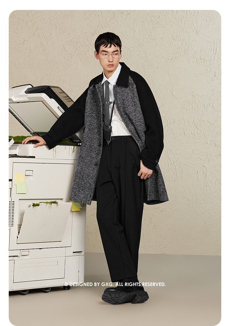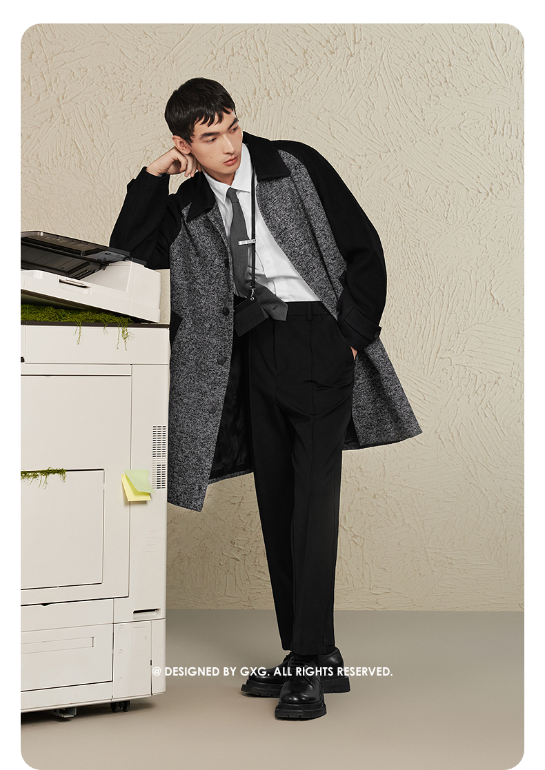GXG男装 黑灰色拼接设计时尚高级长款大衣外套男士 冬季热卖黑灰色拼接设计