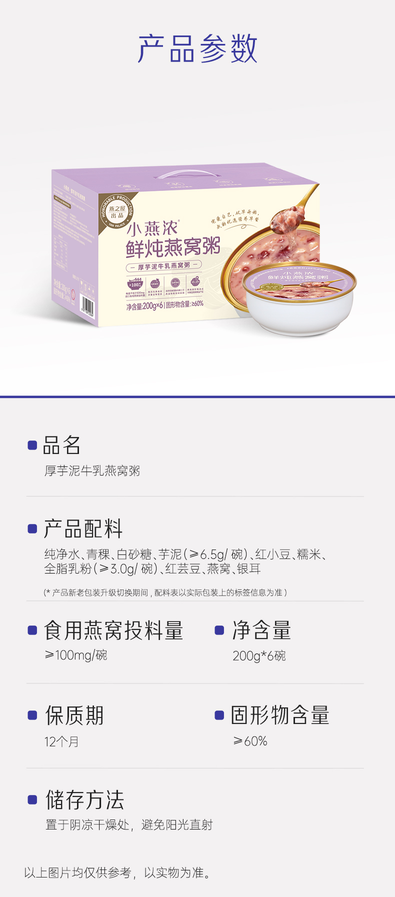 【营养代餐】燕之屋小燕浓·200g厚芋泥牛乳燕窝粥(6碗装)营养代餐