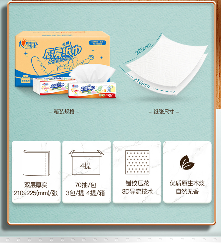 心相印 吸油纸厨房纸 厨房用纸抽纸吸水纸 加厚擦手纸 厨房纸巾 70抽*12包(整箱售卖)(新老包装随机发货)