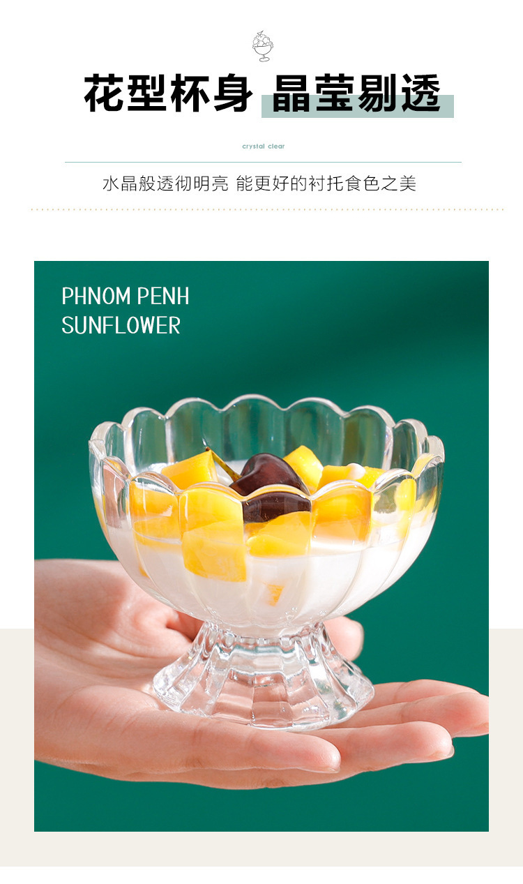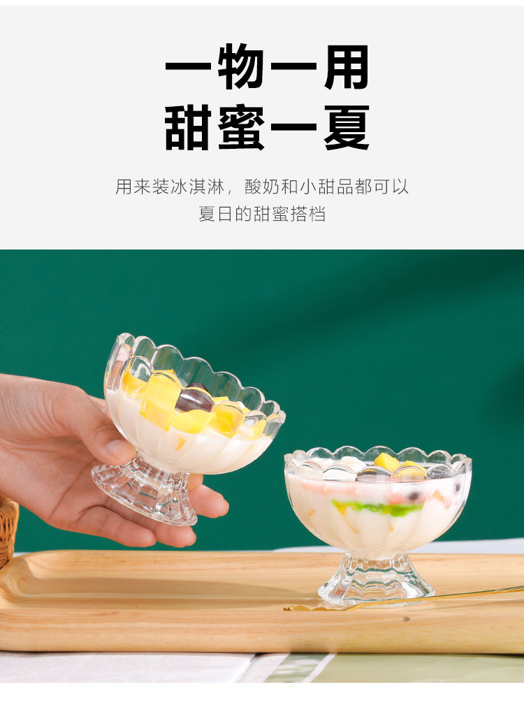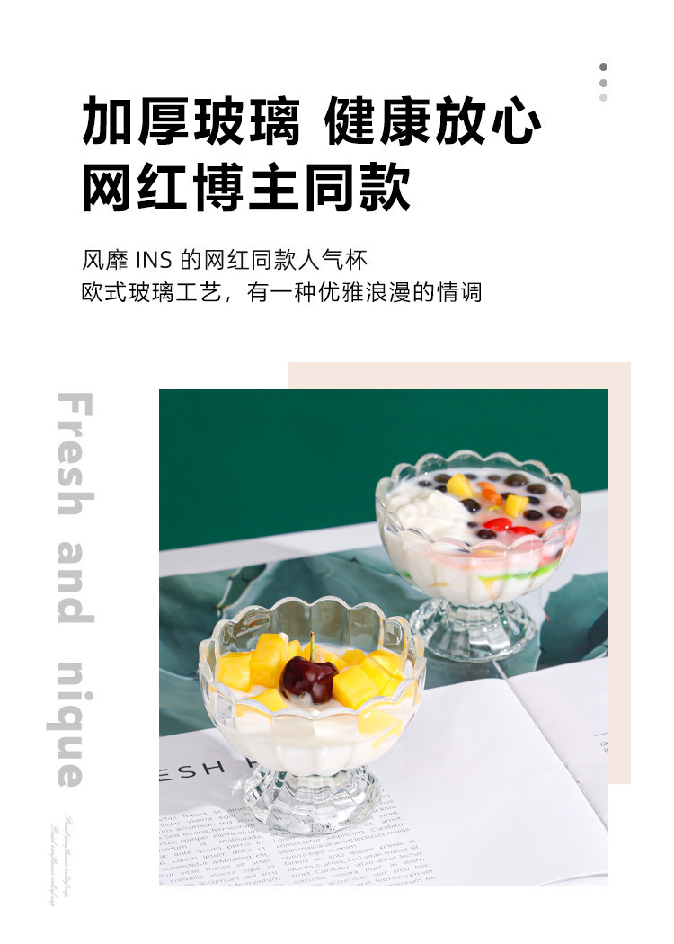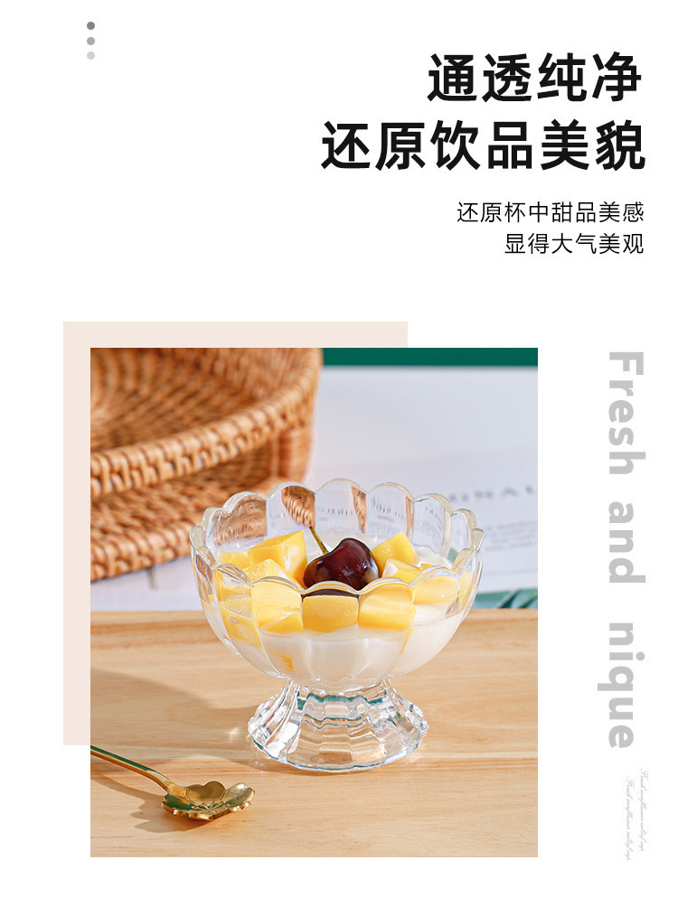 「轻奢简约」玻璃甜品杯冰激凌水果冰淇淋杯子家用水果捞酸奶杯餐饮用具