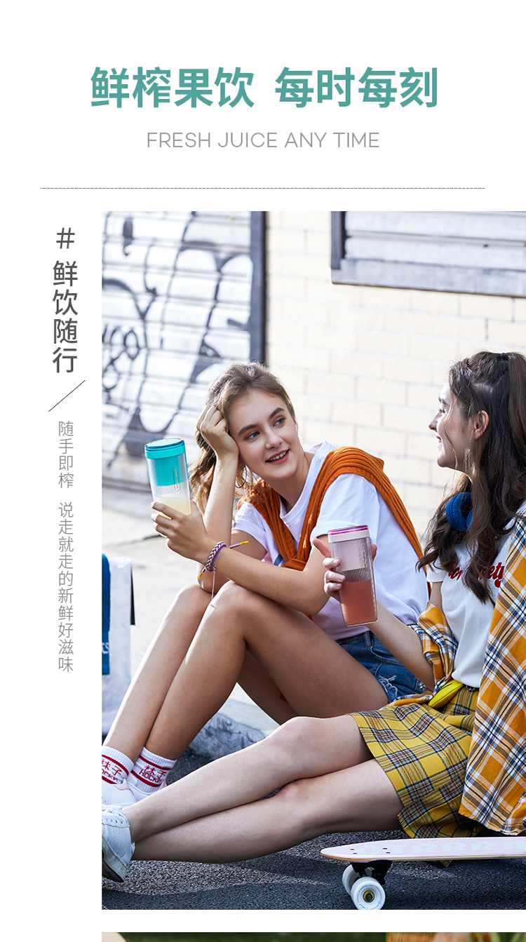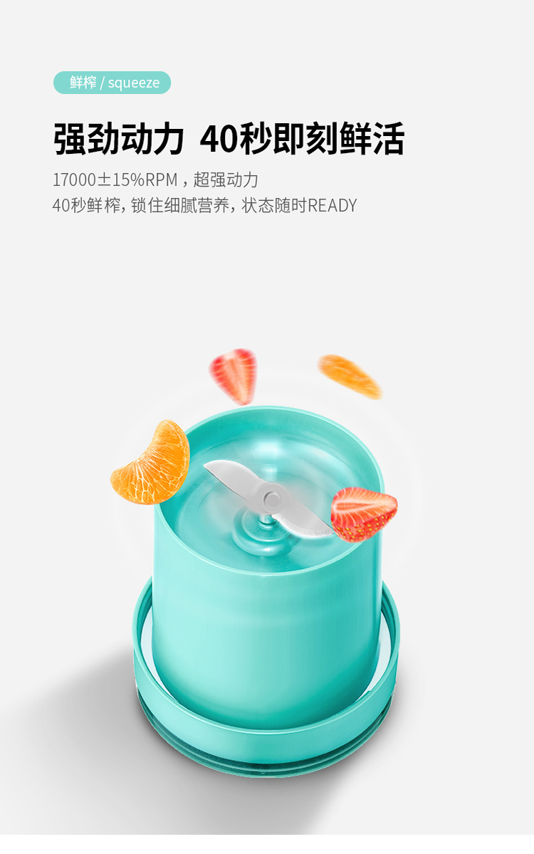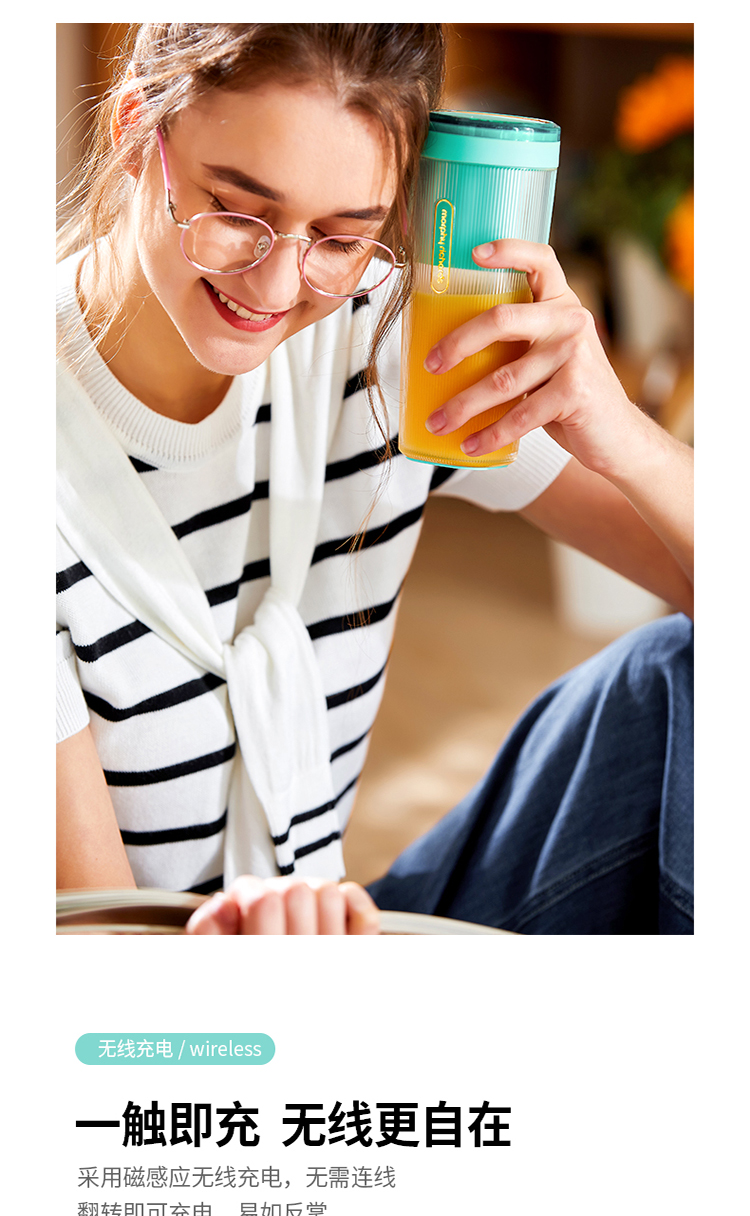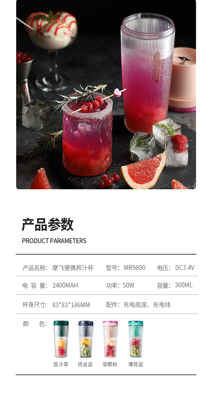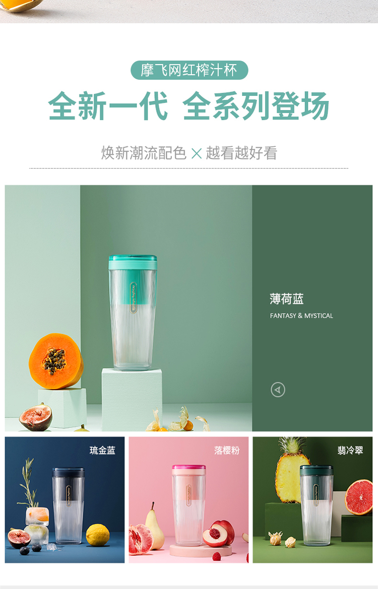 摩飞(Morphyrichards)便携式榨汁机网红无线充电果汁机料理机迷你随行杯MR9800薄荷蓝