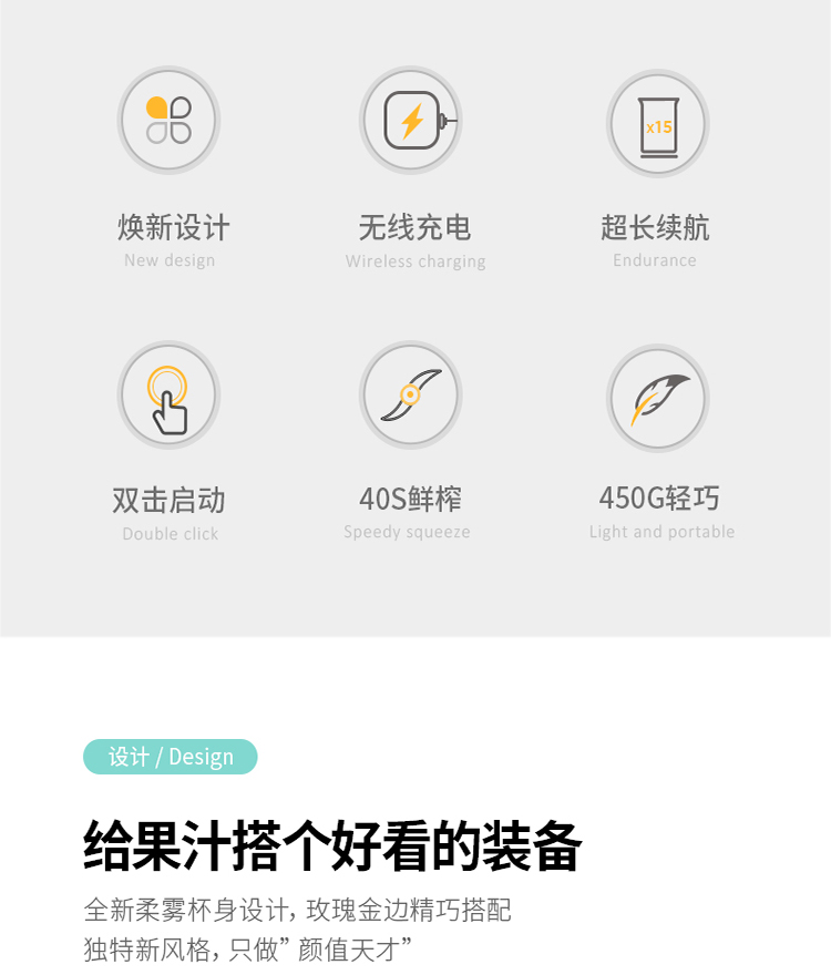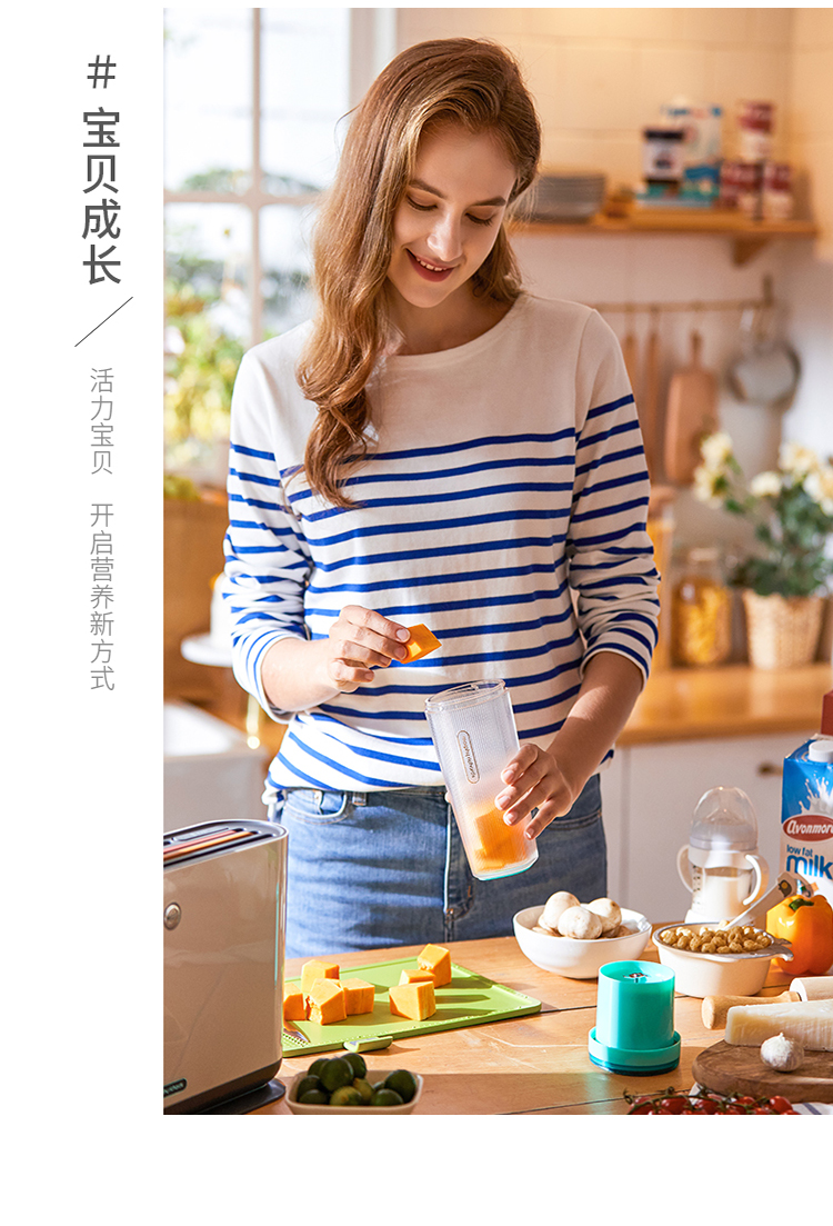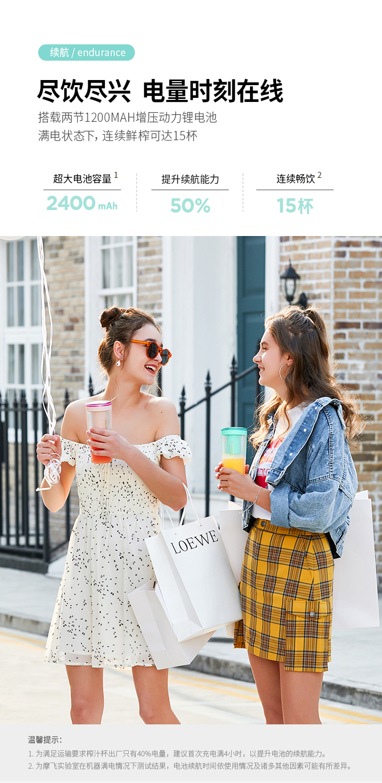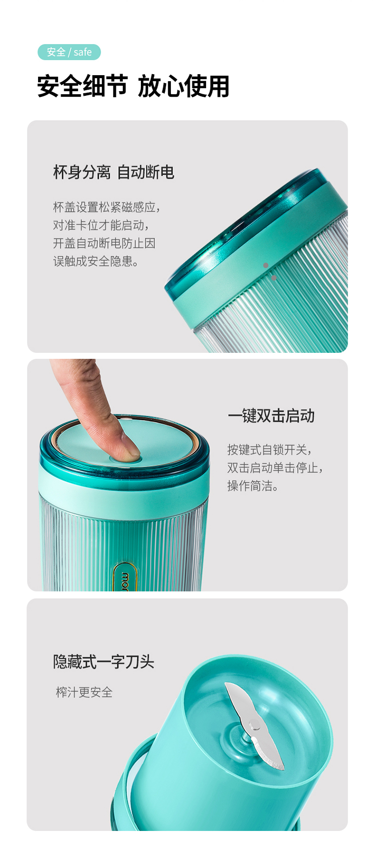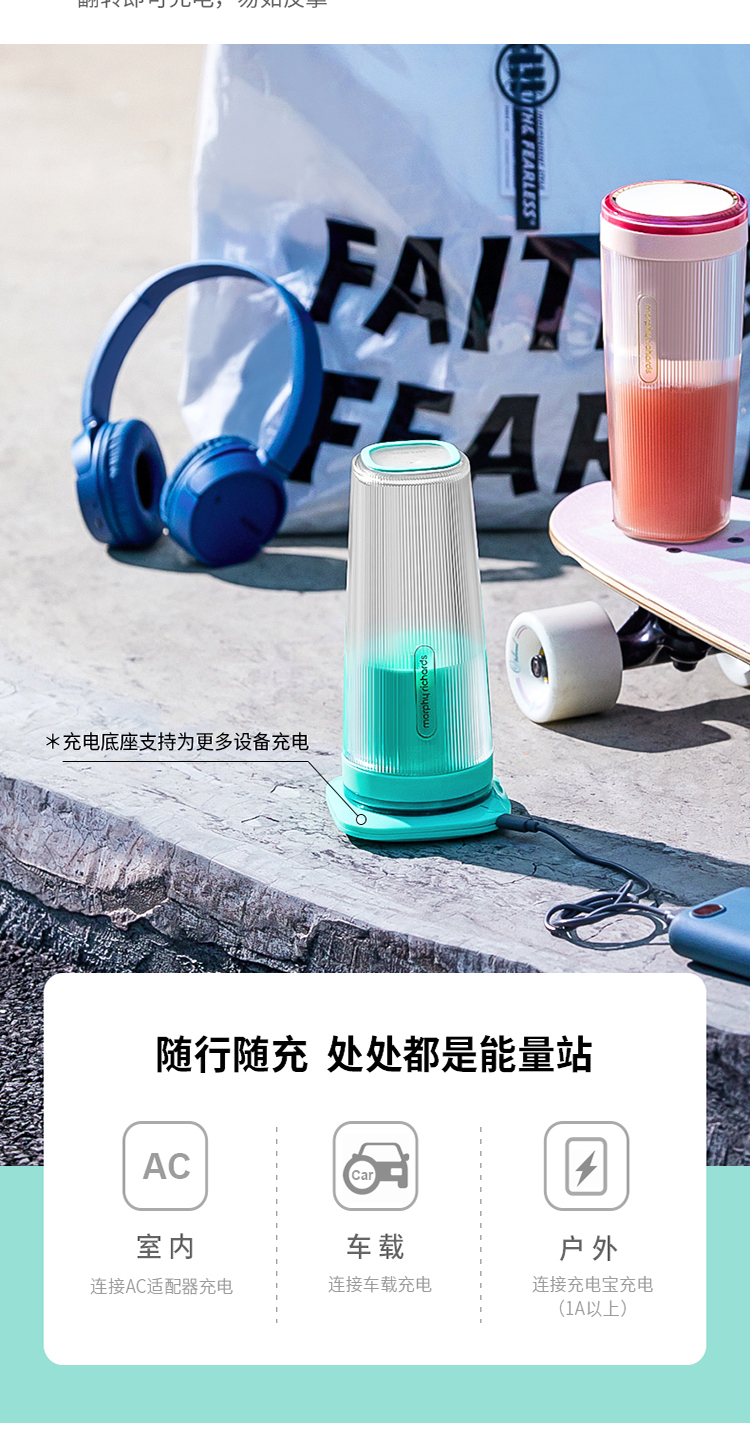 摩飞(Morphyrichards)便携式榨汁机网红无线充电果汁机料理机迷你随行杯MR9800薄荷蓝