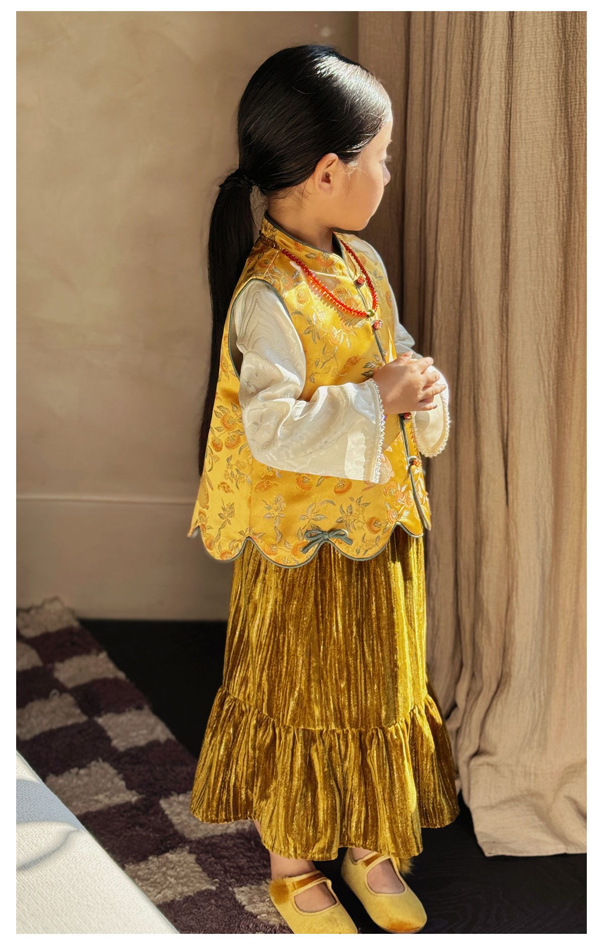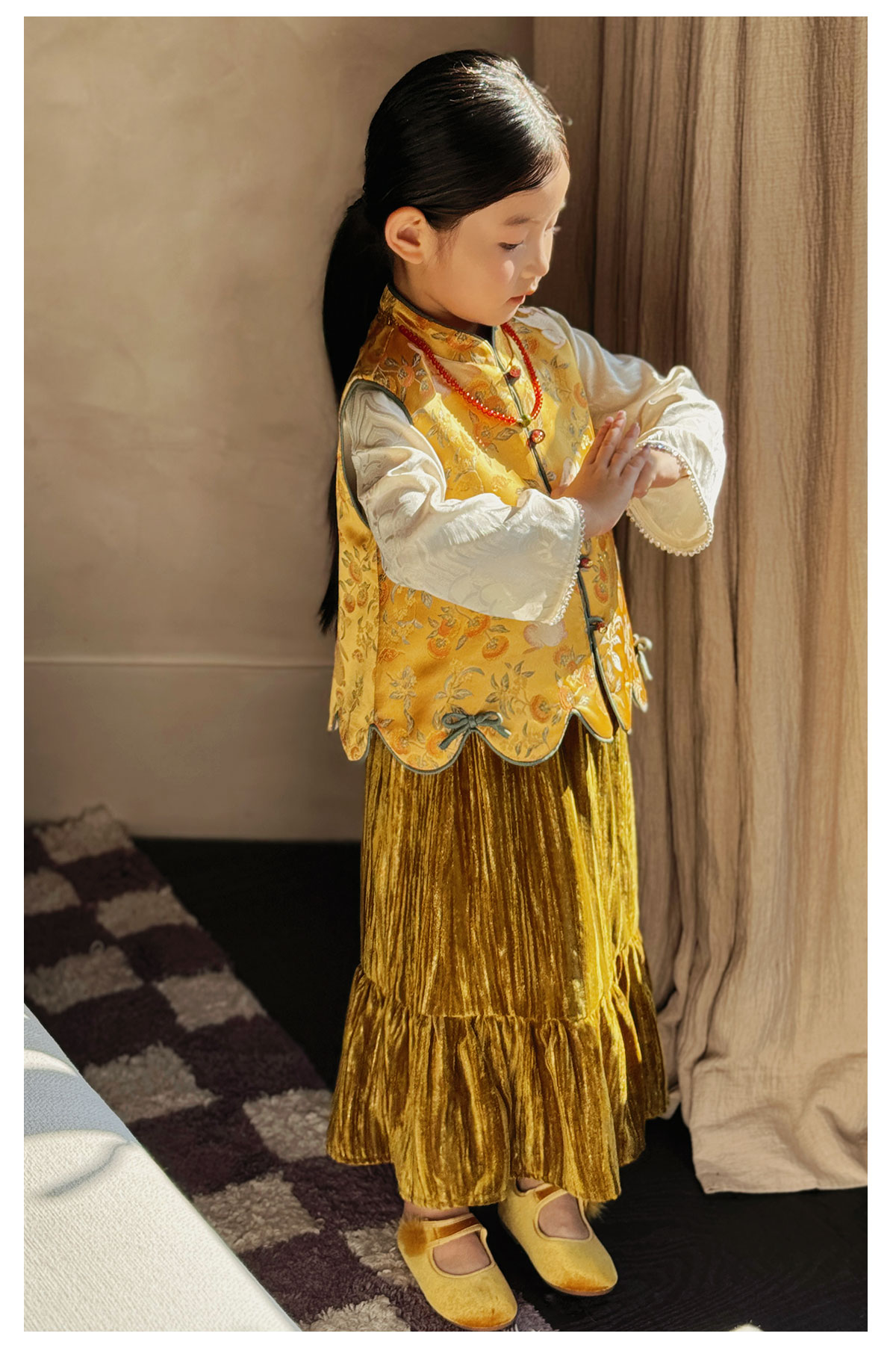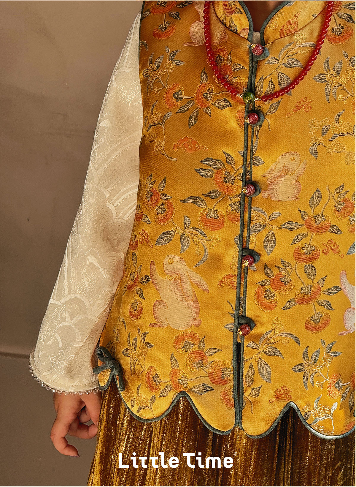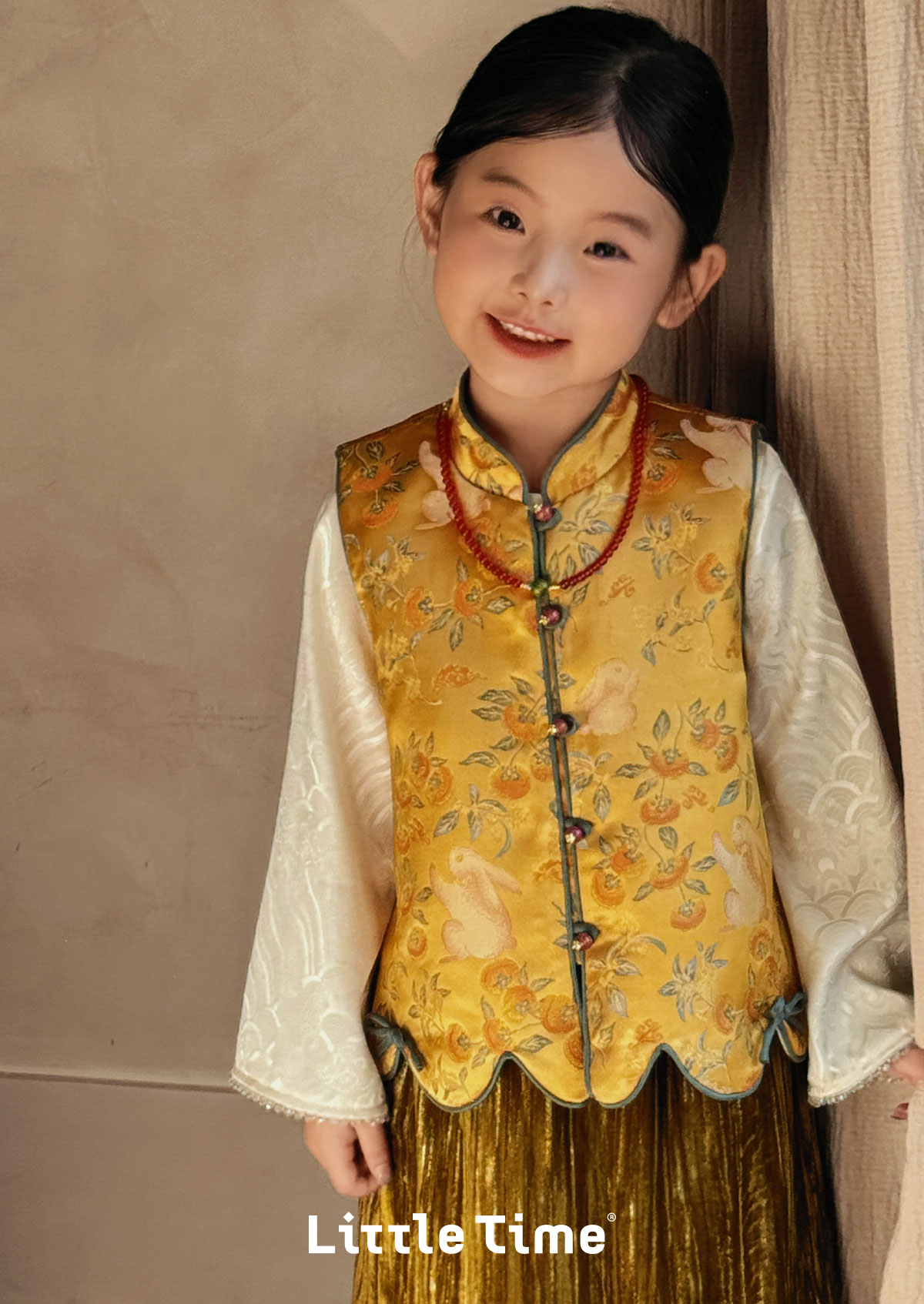 littletime女童套装2025秋冬新款儿童新中式国风马甲女宝宝三件套