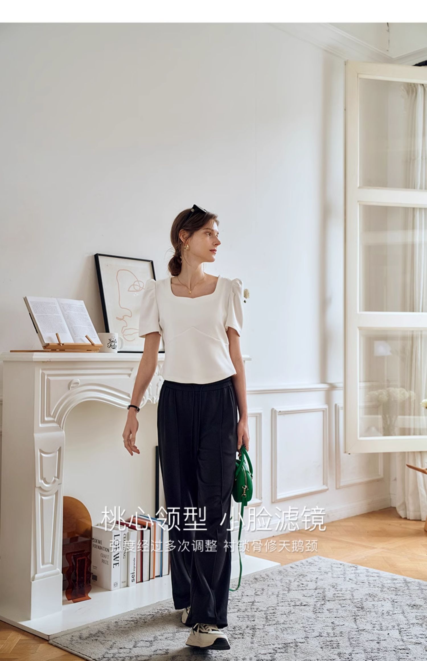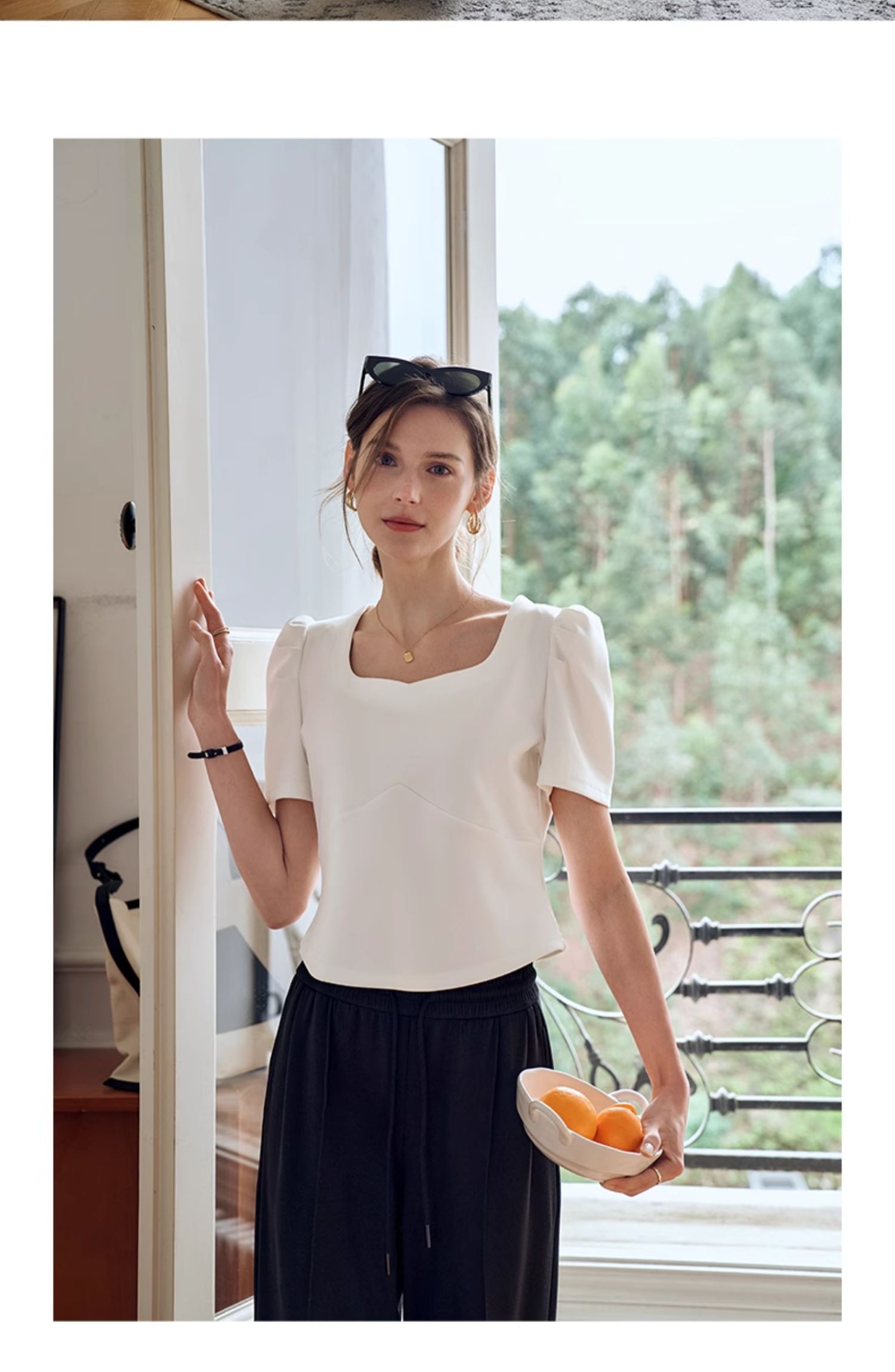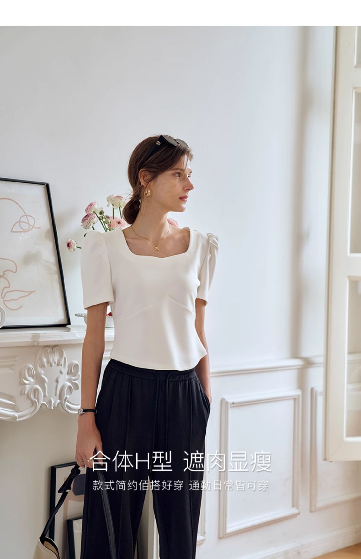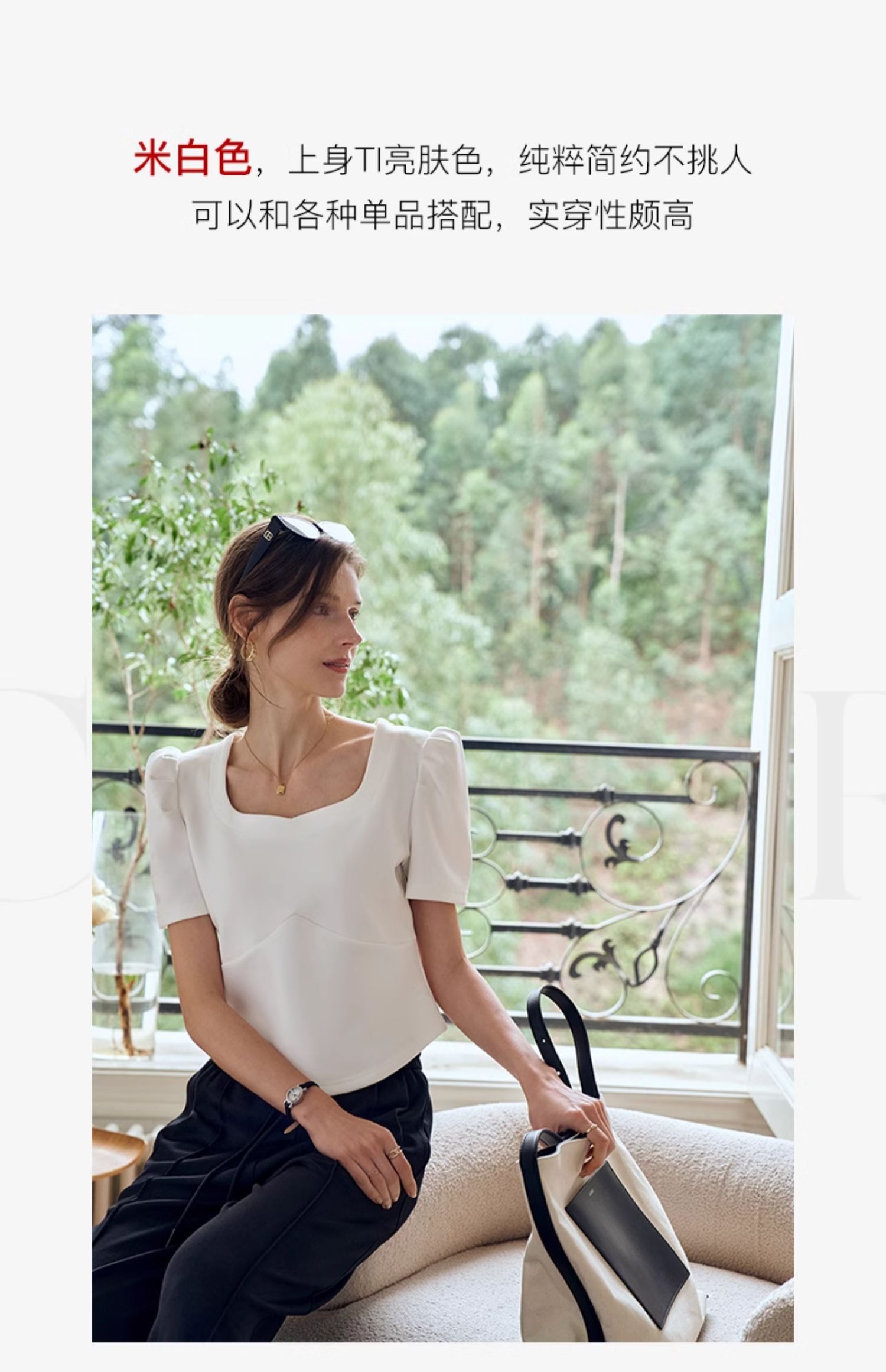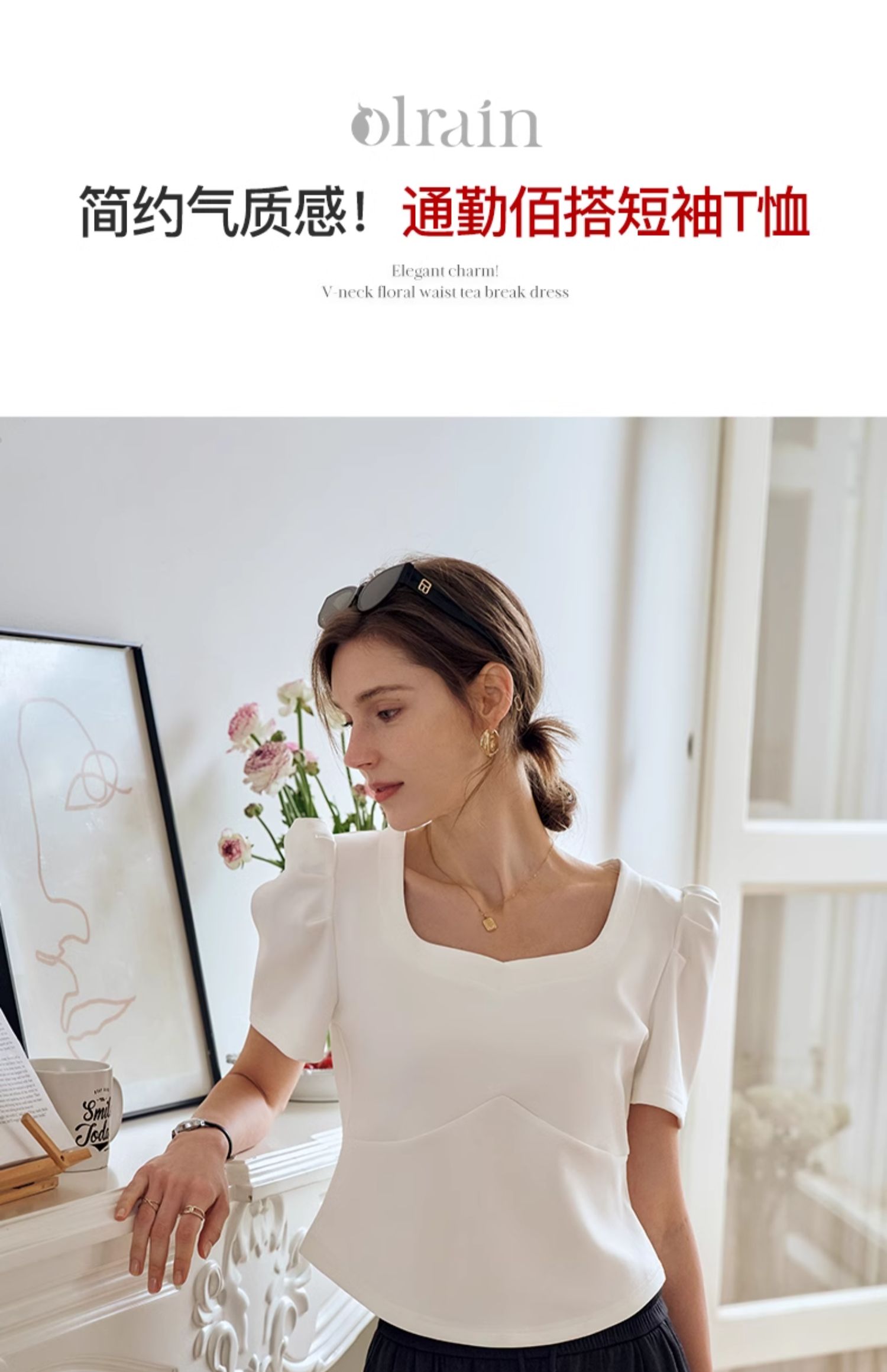 OLrain欧芮儿米白色正肩T恤女夏季2024年新款通勤百搭短袖上衣