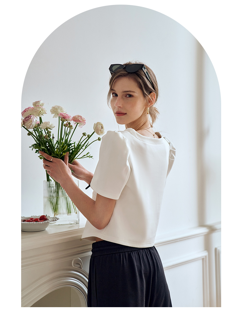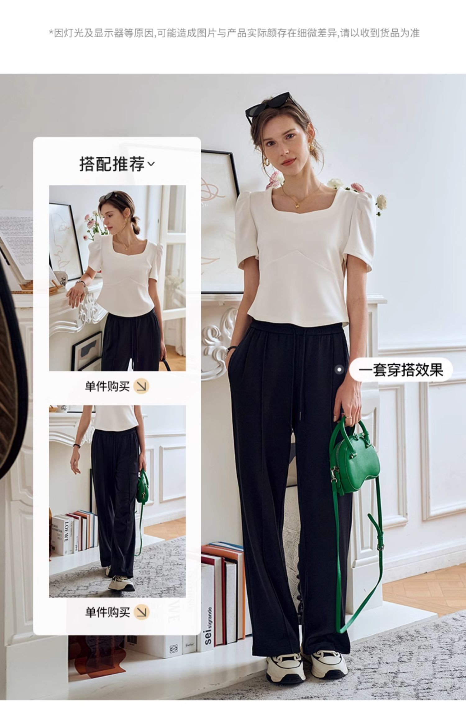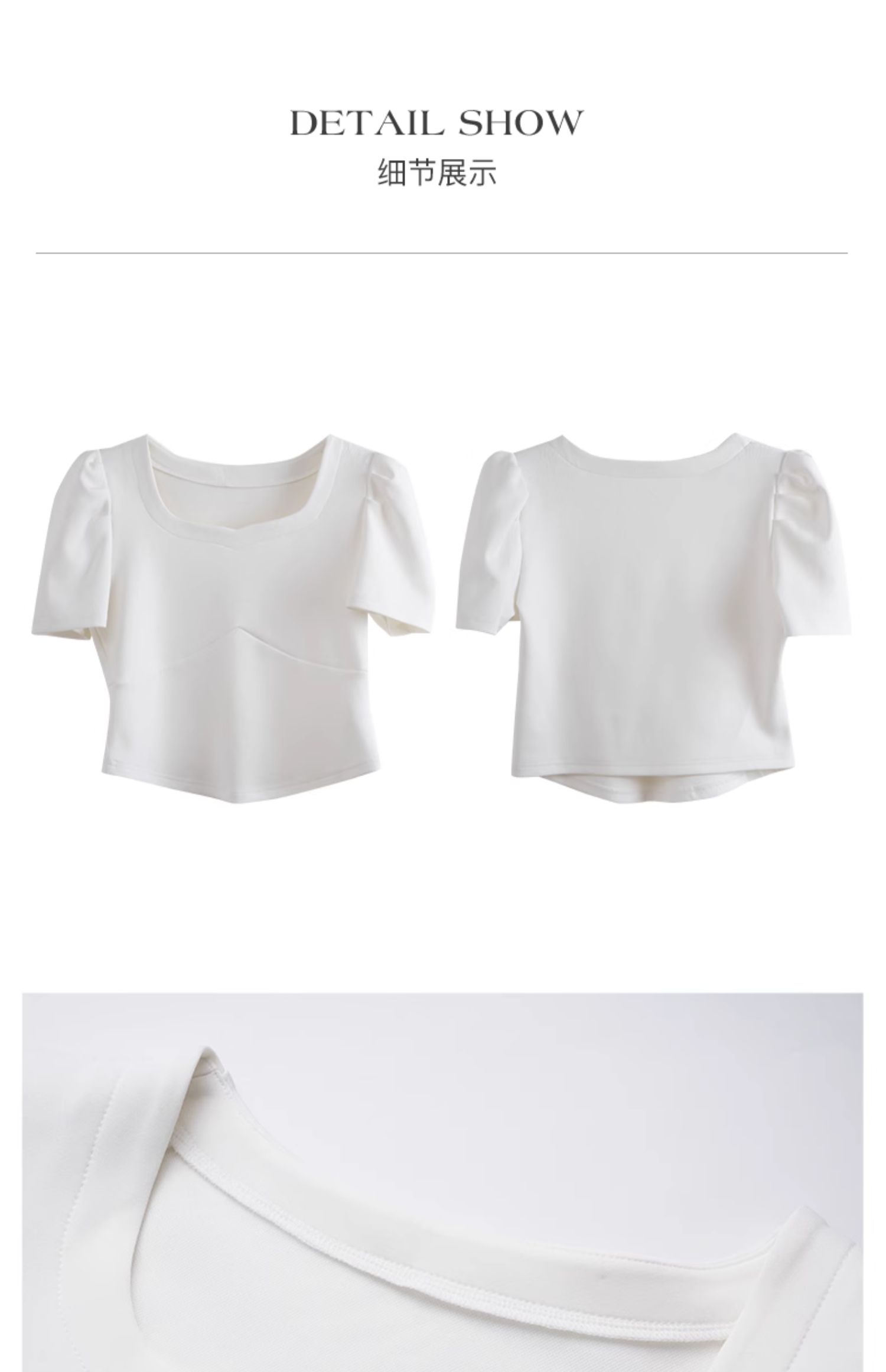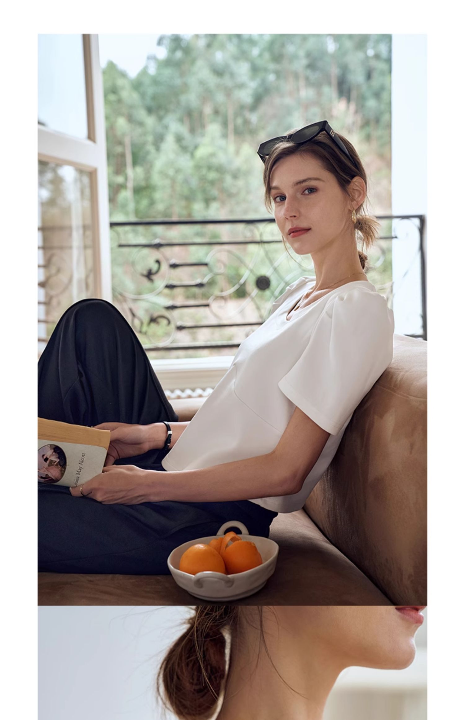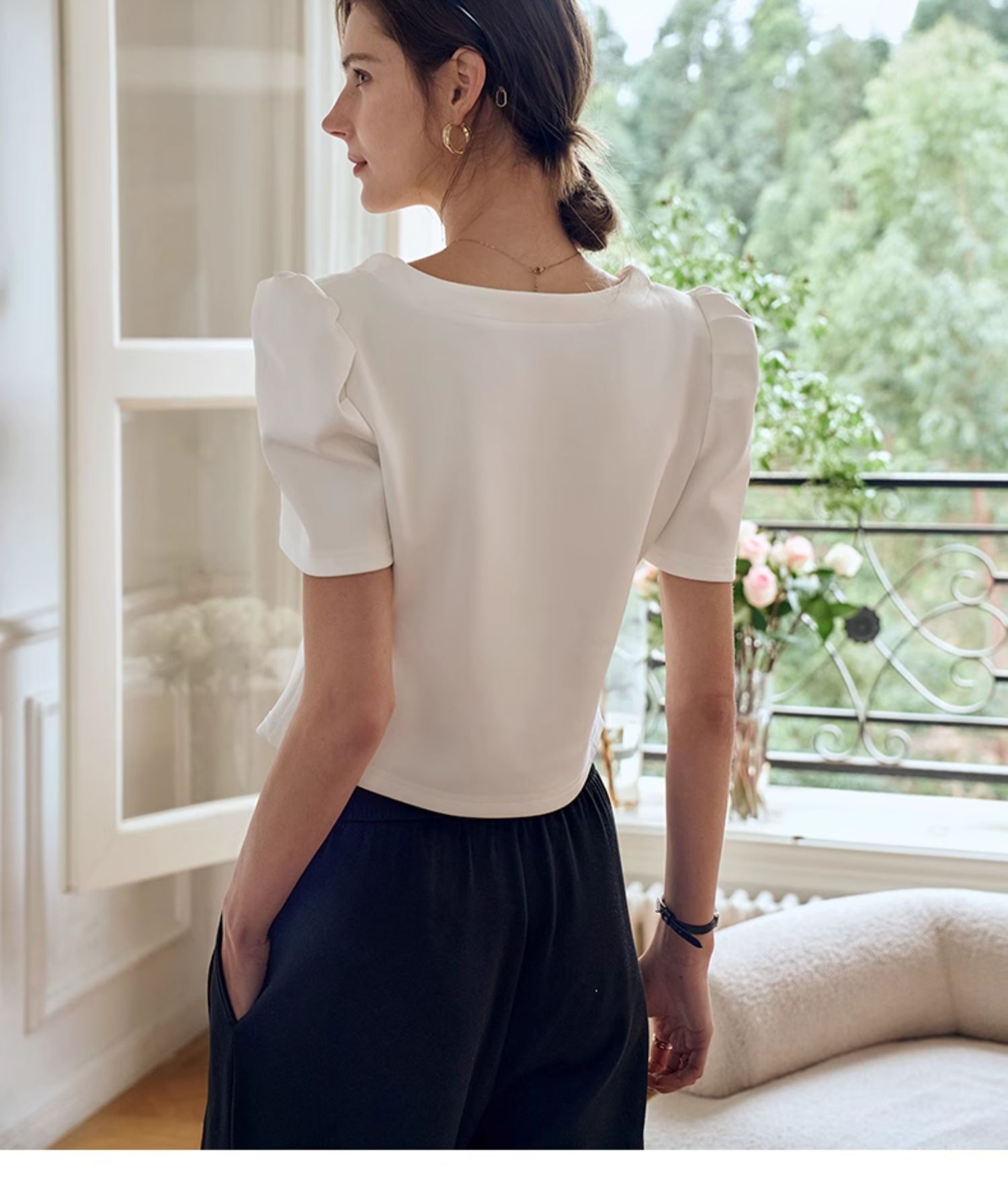 OLrain欧芮儿米白色正肩T恤女夏季2024年新款通勤百搭短袖上衣