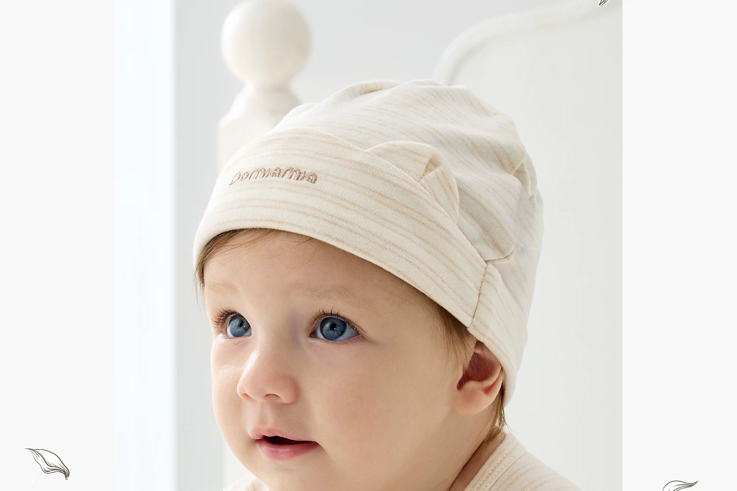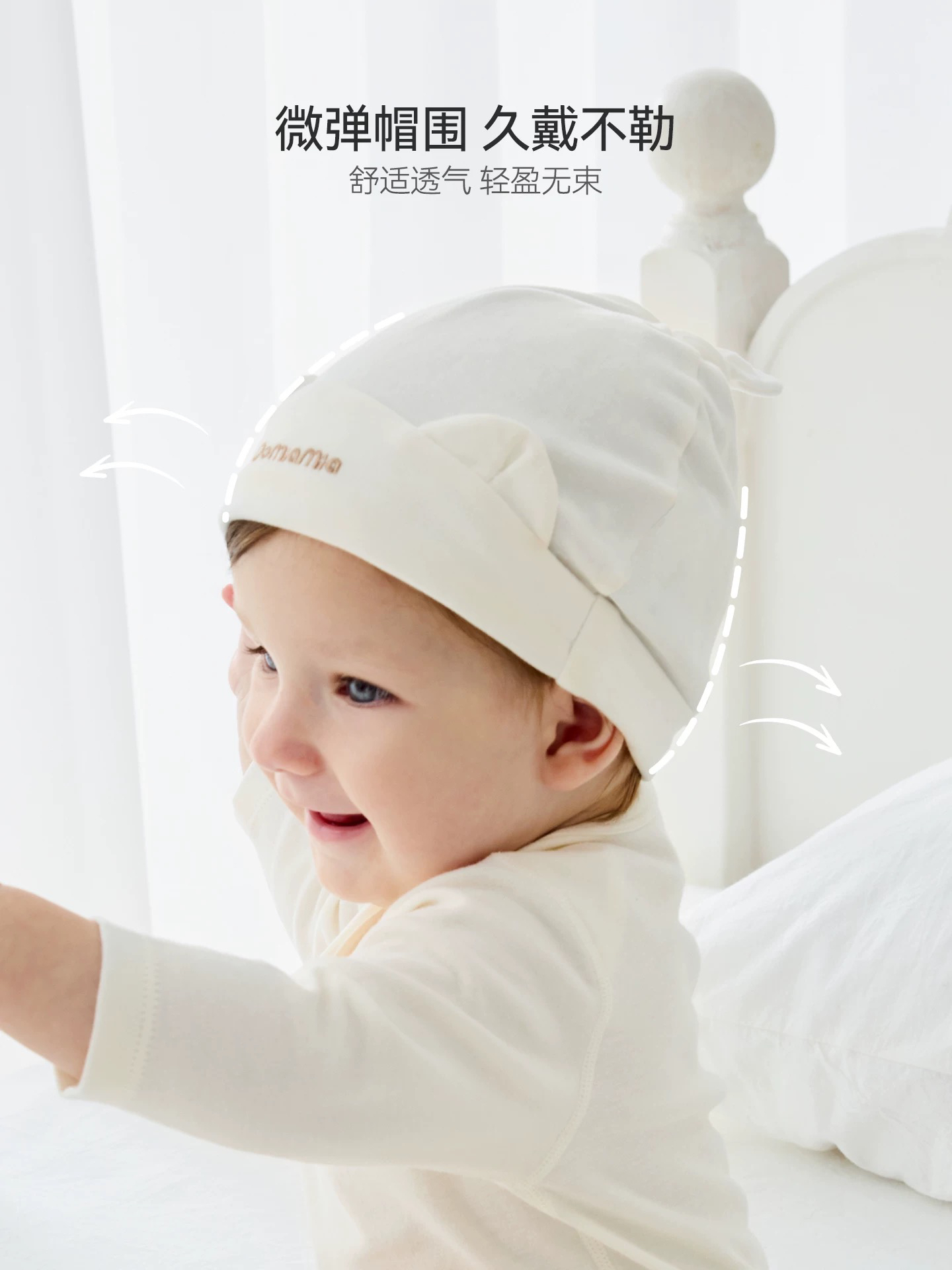 Domiamia 有机棉针织彩棉胎帽 0-6月初生宝宝护囟门新生儿帽子