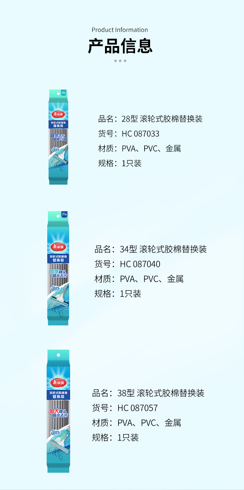 【巨吸龙滚轮式&天骄】美丽雅滚轮式胶棉拖备件1个装