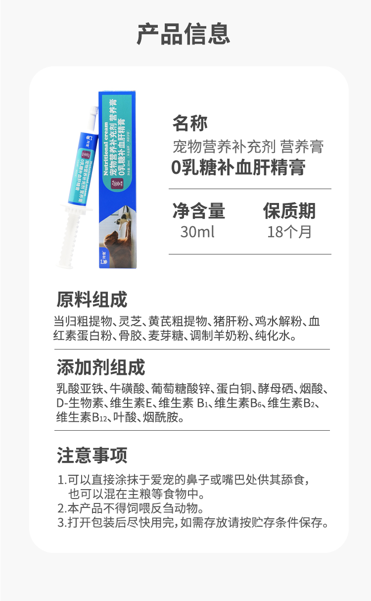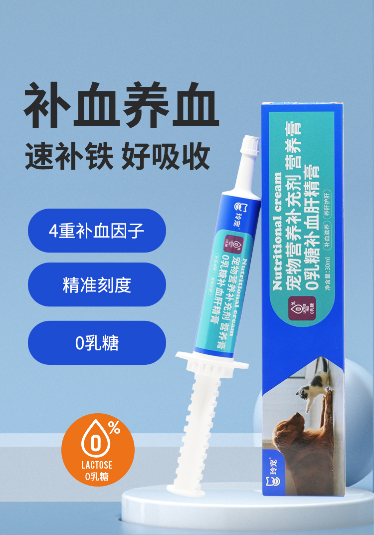 玲宠0乳糖补血肝精膏怀孕猫咪补气血狗宠物幼猫贫血补血补气30ml