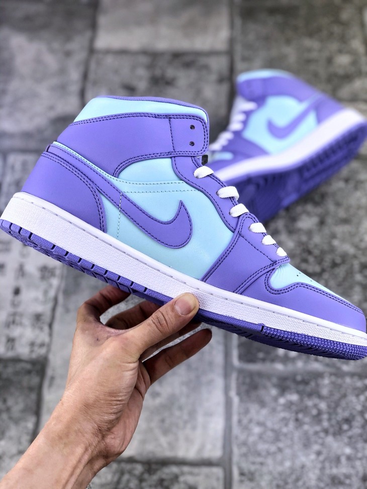 Air Jordan 1 Mid 中帮 蓝紫拼接 精雕细琢鞋型极致飞翼3D打印