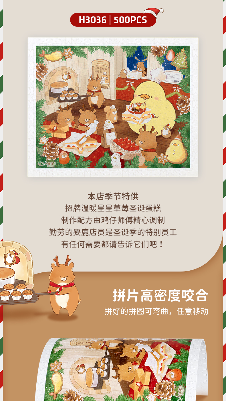 【折扣商品 不退不换】500片平面拼图塑料拼图 H3036 吃货鸡仔-圣诞烘焙屋