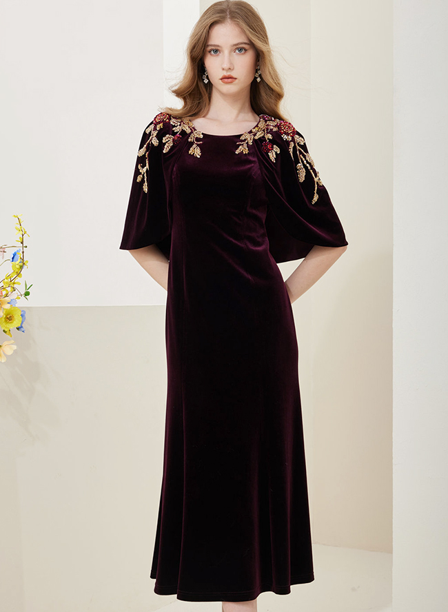 NA833斯尔丽优雅斗篷式奢华钉珠礼服裙