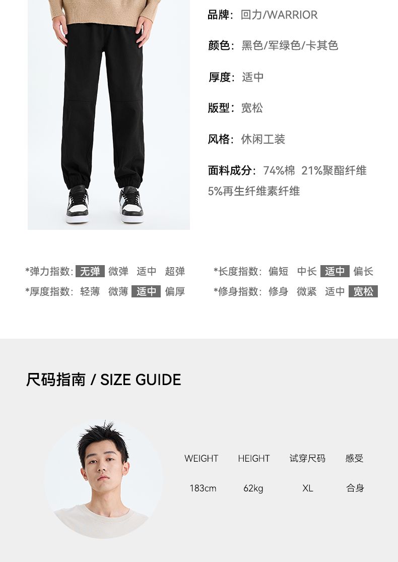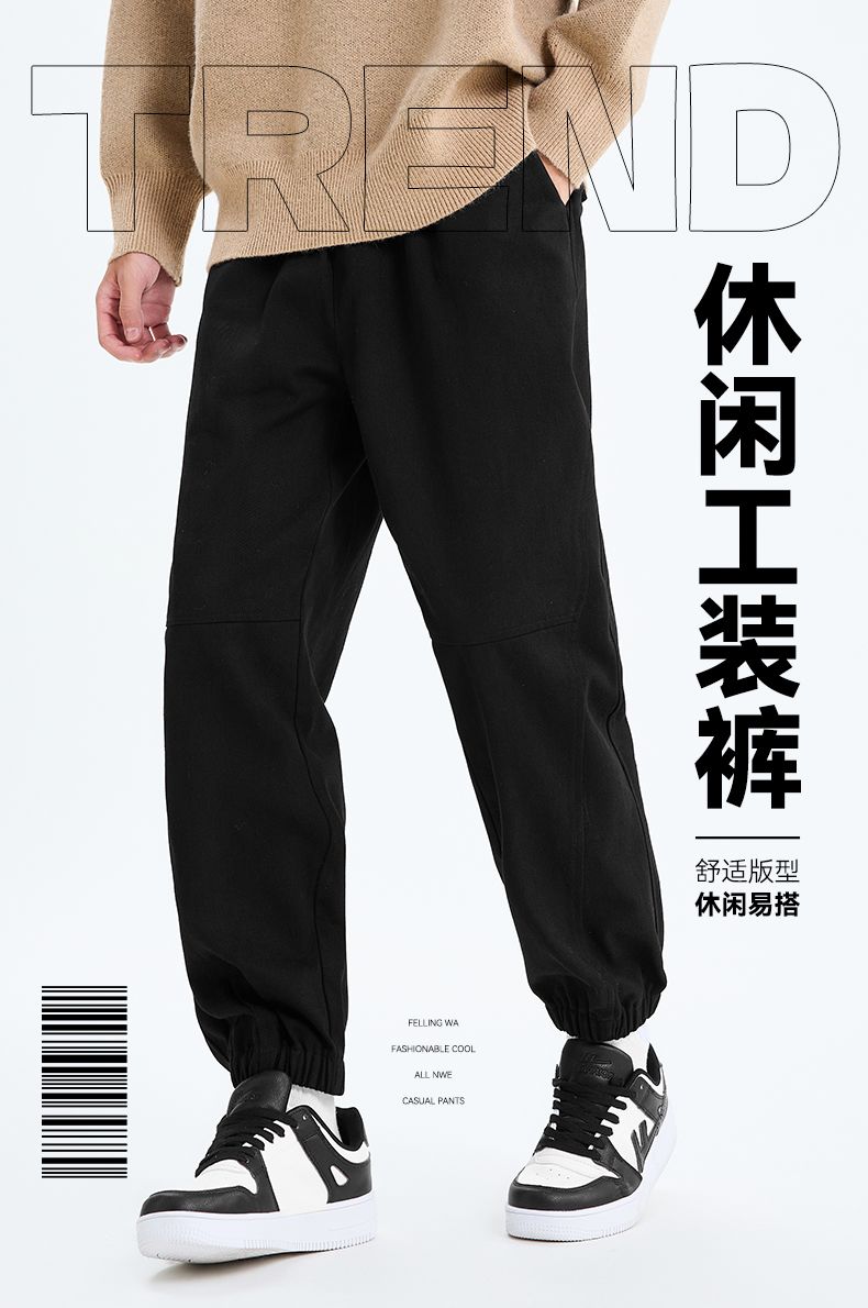 回力工装裤男士2025春秋新款美式机能裤潮流黑色运动束脚休闲裤子