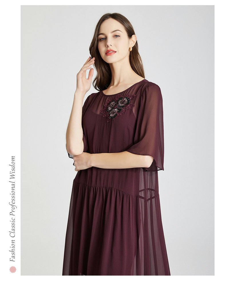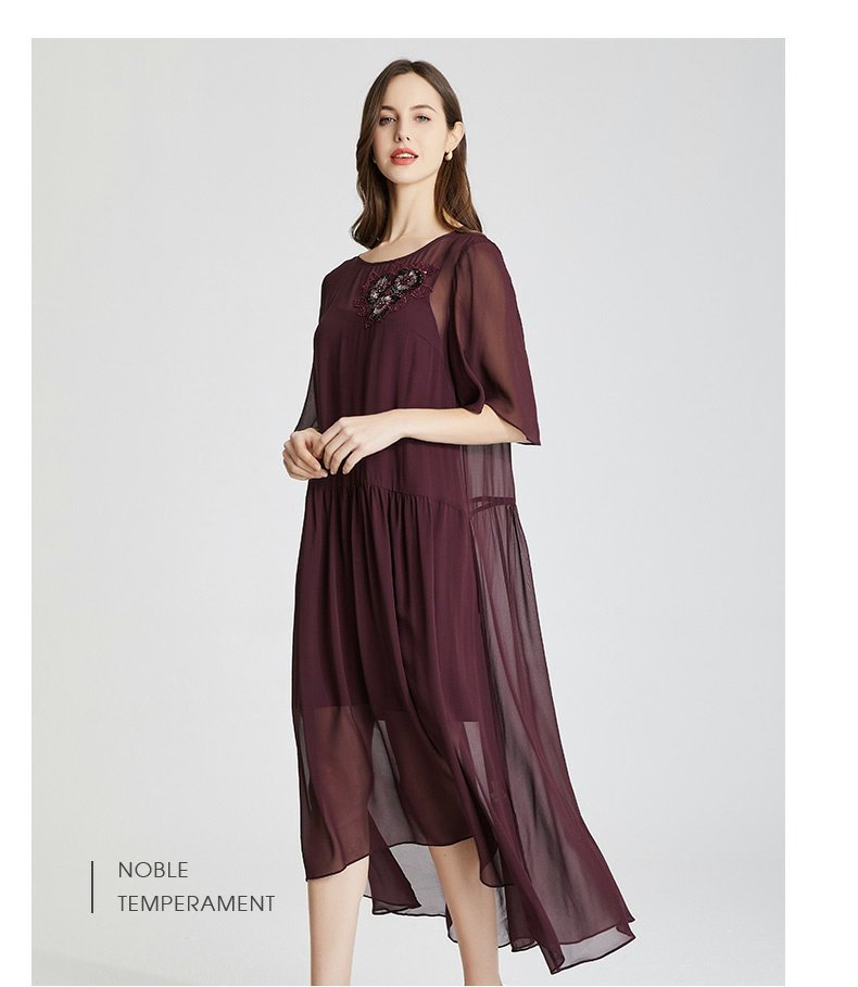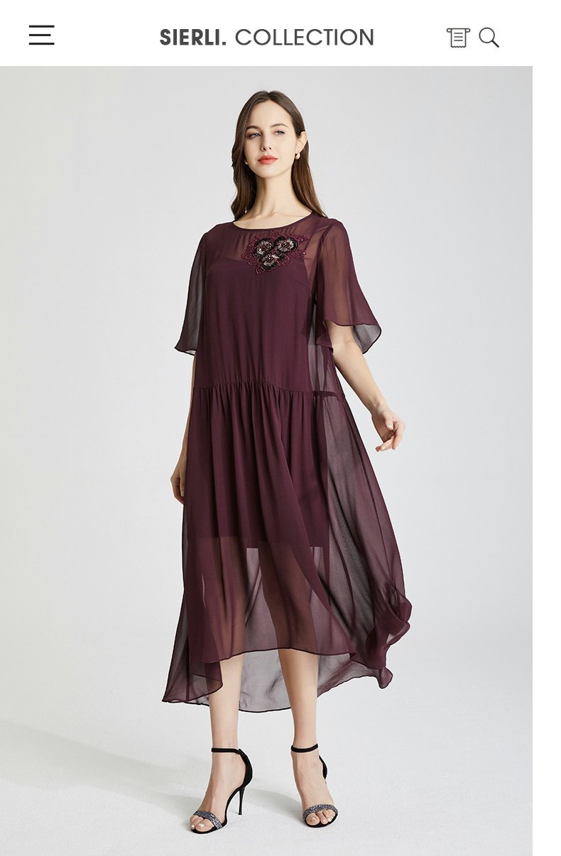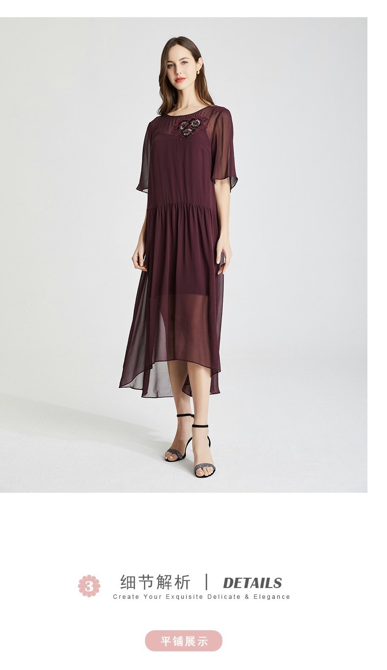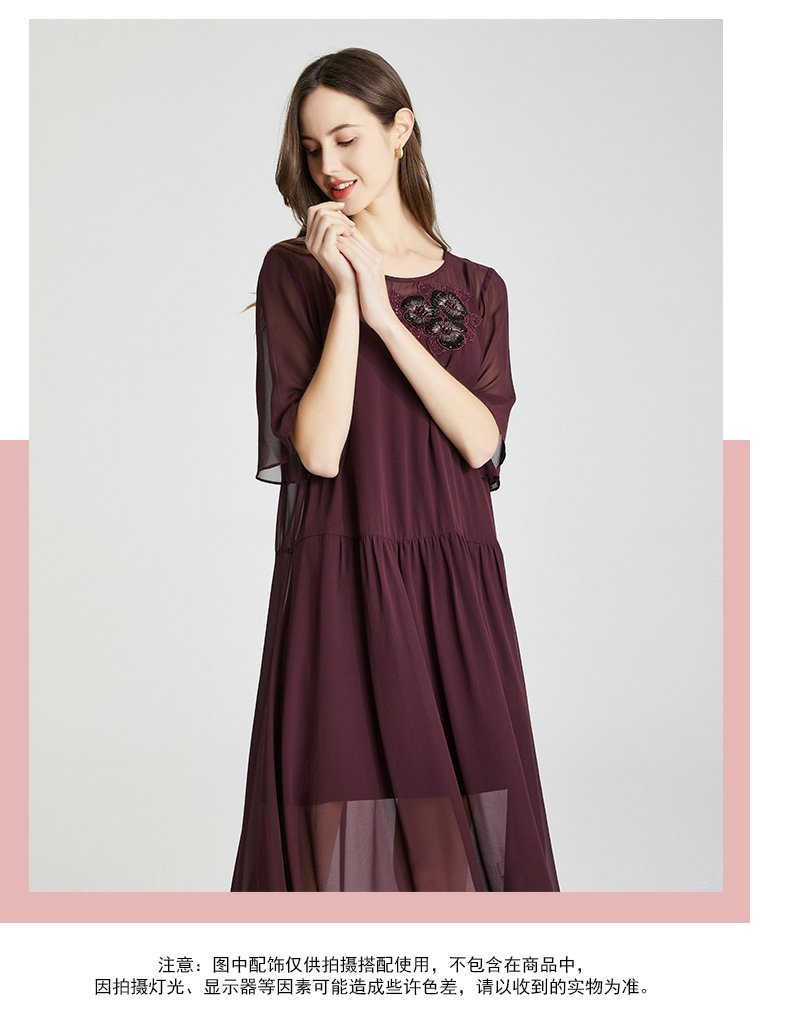 RF8B9斯尔丽2021年春季上新气质淑女珠片花连衣裙